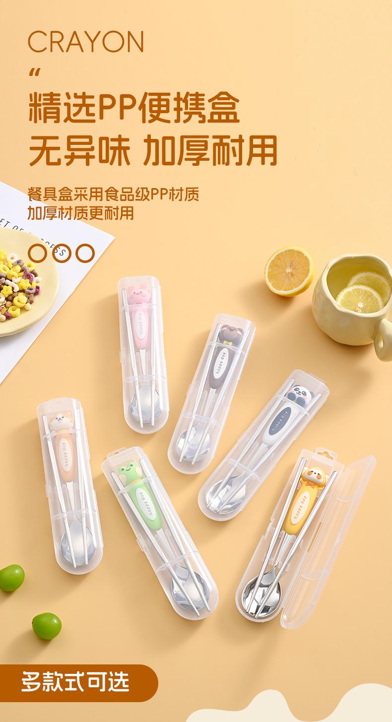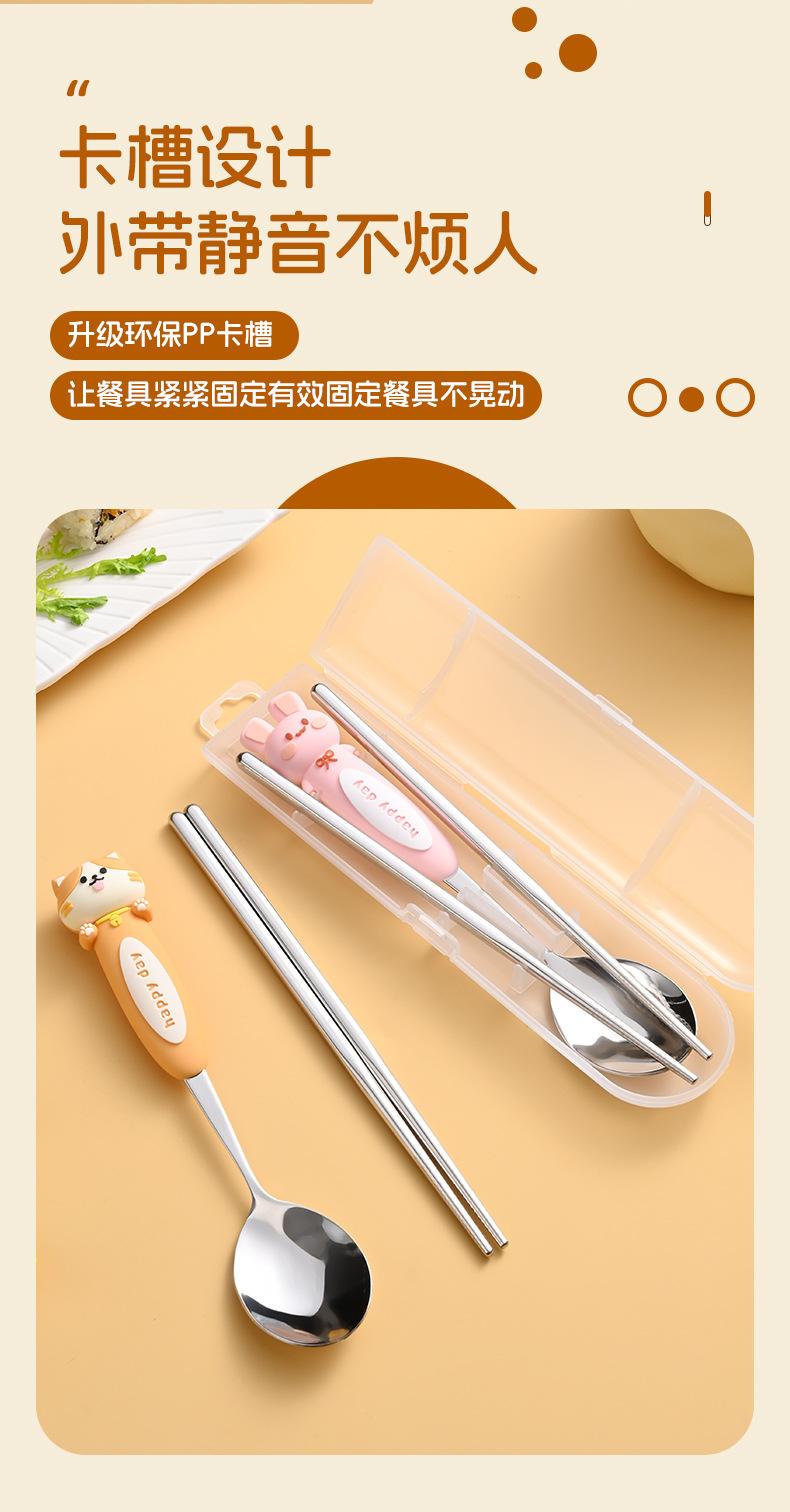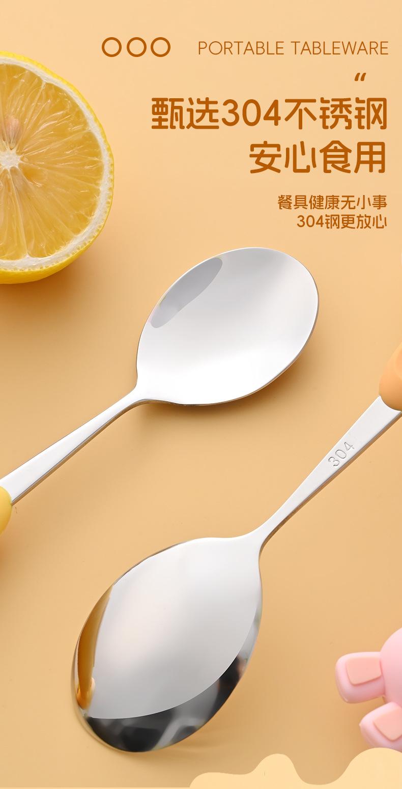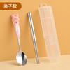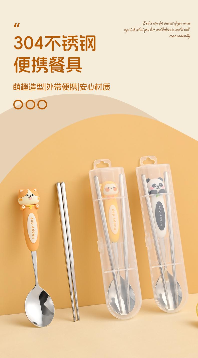 Juego de cubiertos portátiles de acero inoxidable 304 de dibujos animados, grado alimenticio, animal lindo, estudiante, niños, cuchara, palillos, juego