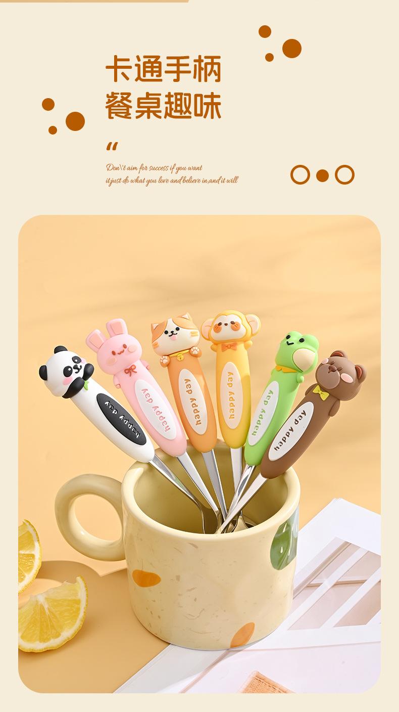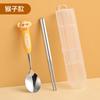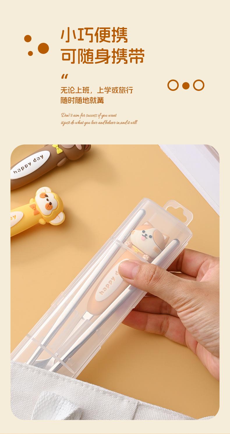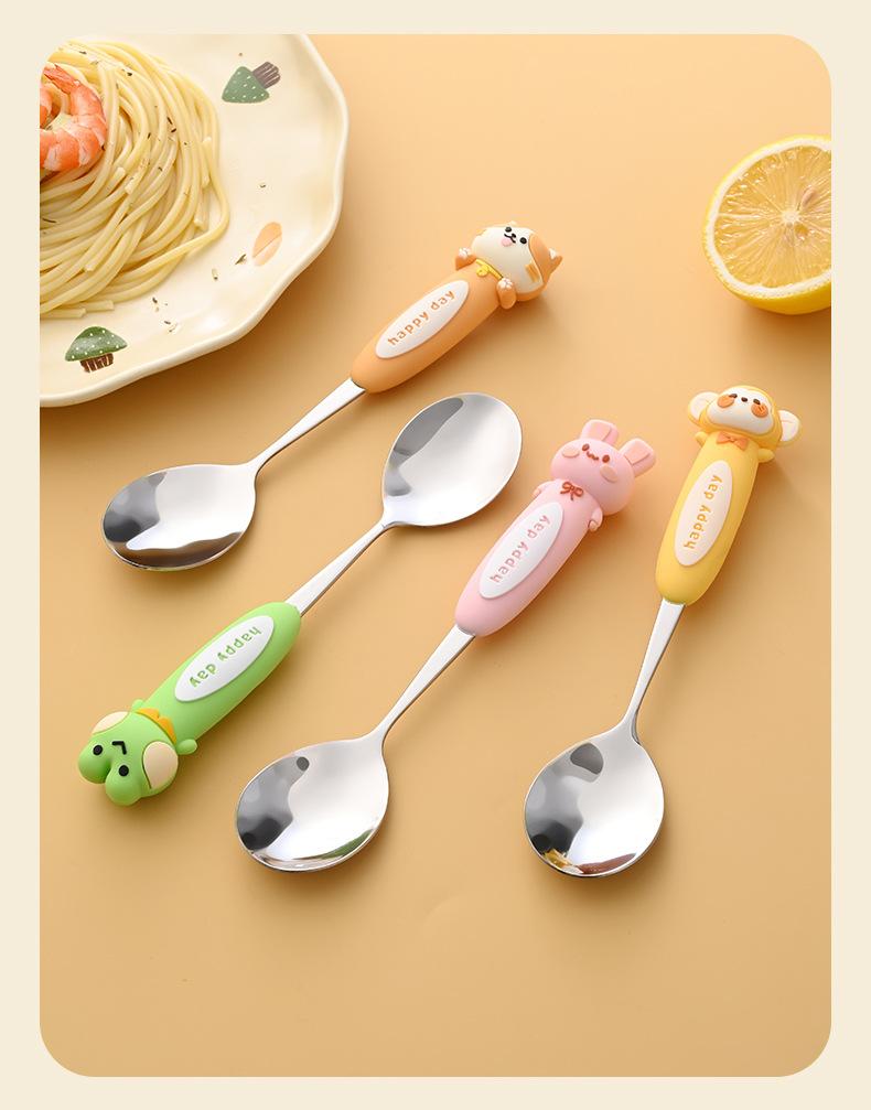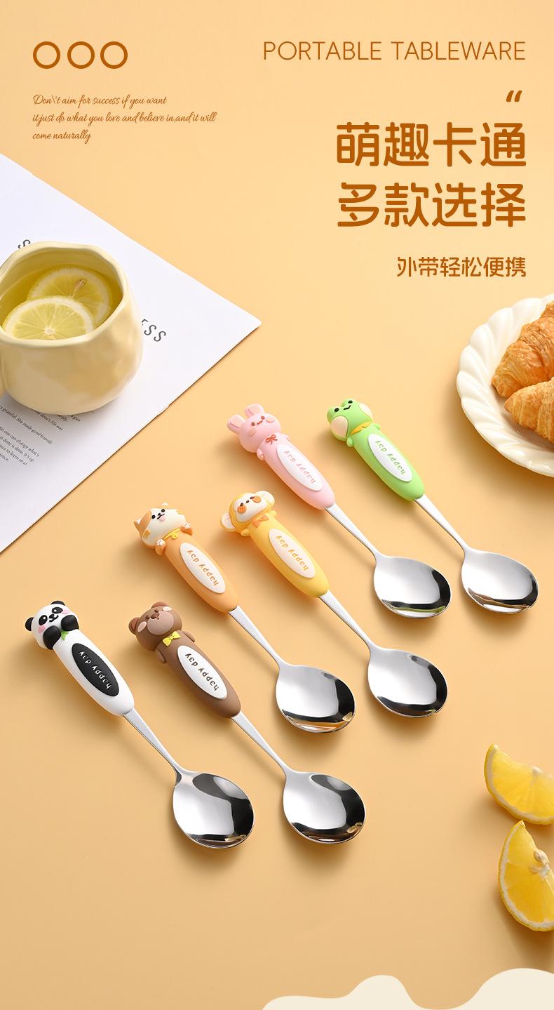 Juego de cubiertos portátiles de acero inoxidable 304 de dibujos animados, grado alimenticio, animal lindo, estudiante, niños, cuchara, palillos, juego