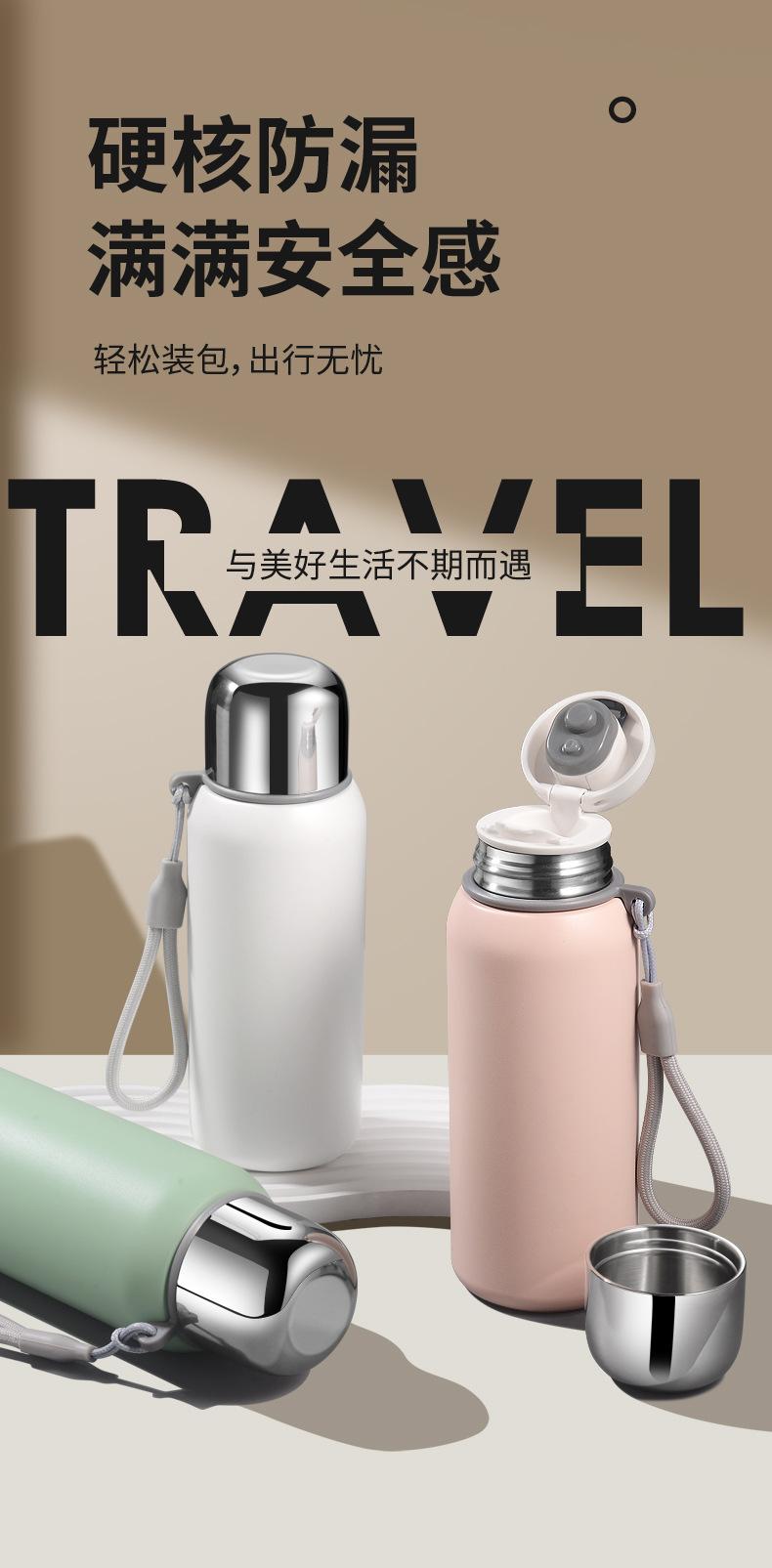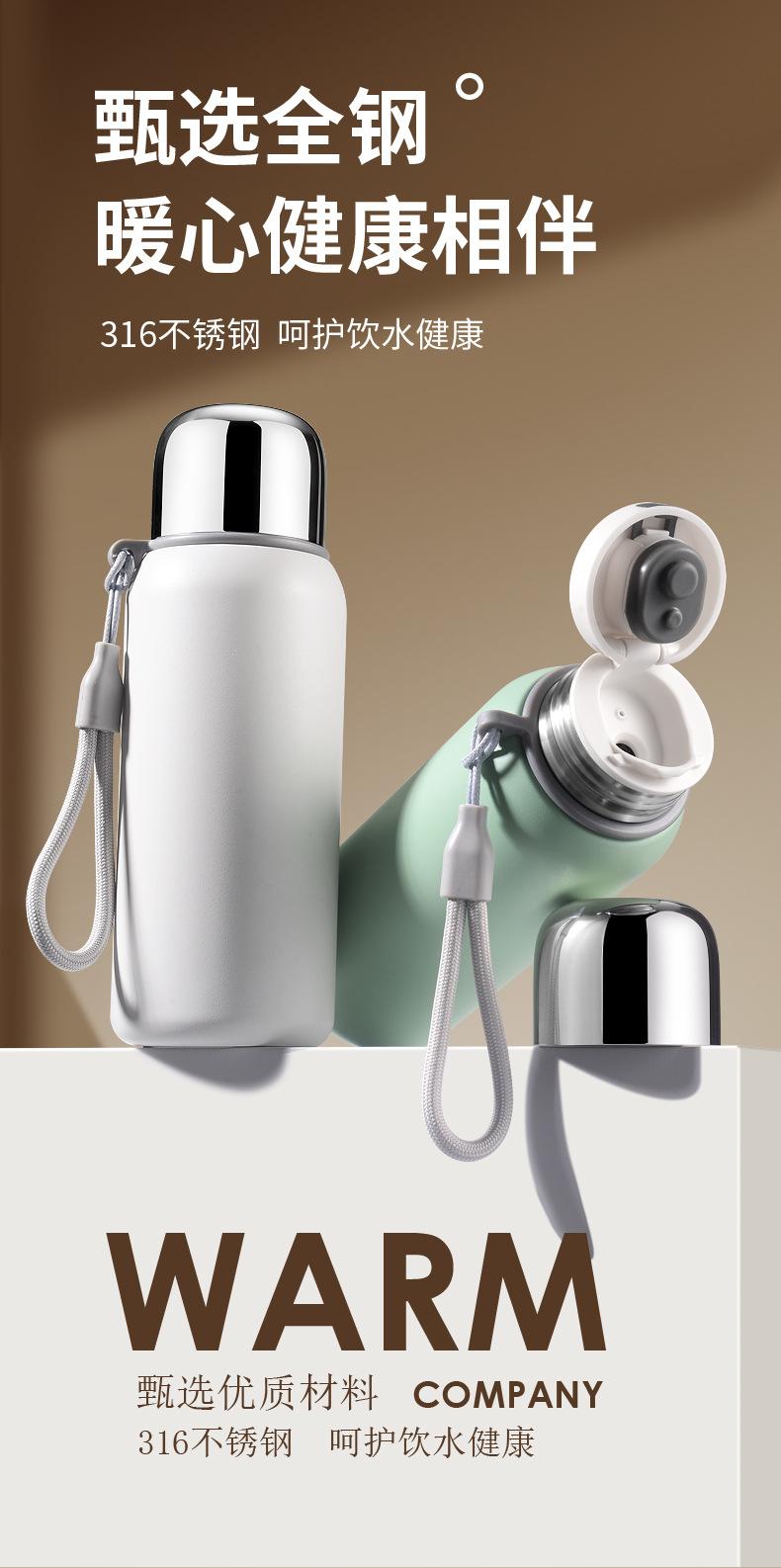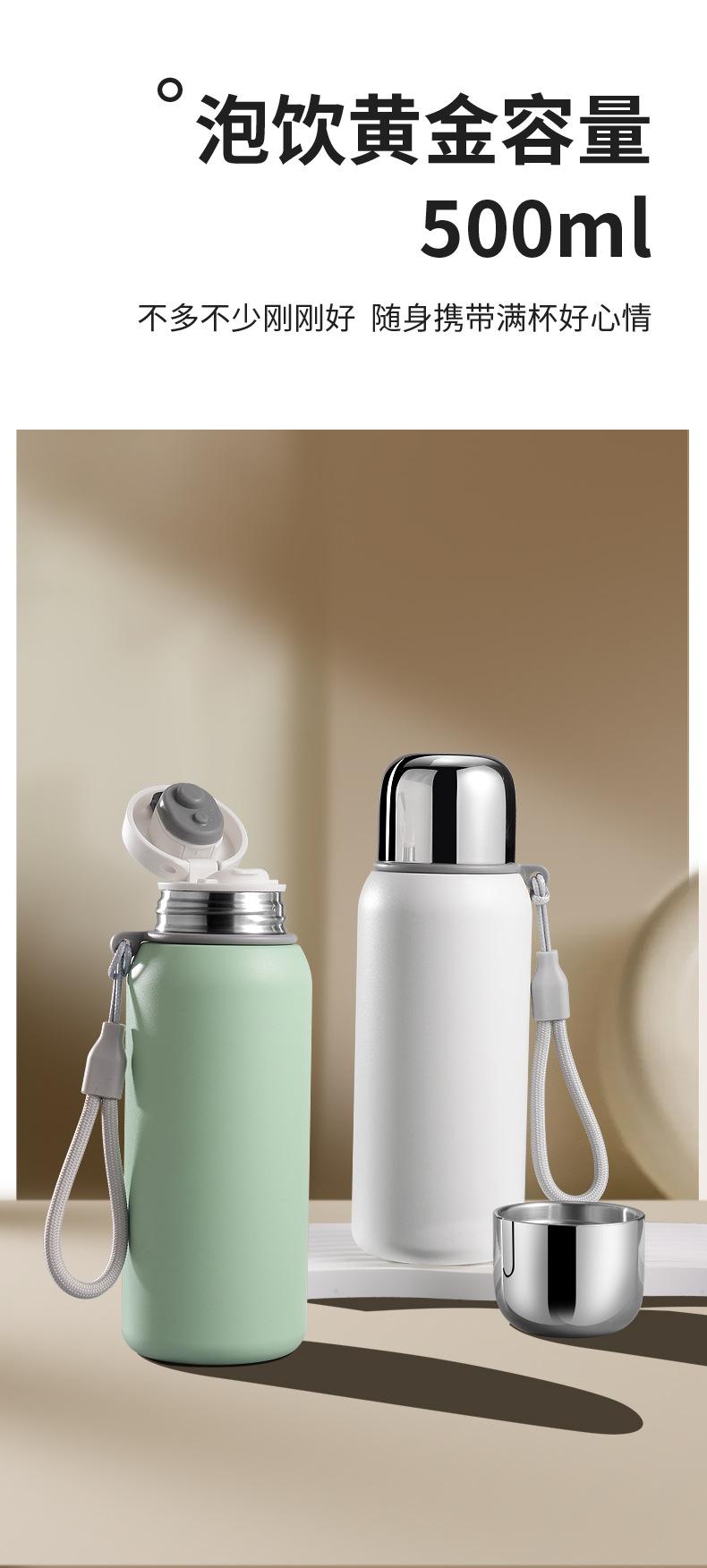 Taza Termo de Aspecto Elevado con una Tapa y Doble Bebida Acero Inoxidable 316 Vaso de Agua para Mujer con Cuerda para Transportar Vaso al Vacío de Gran Capacidad para Estudiante