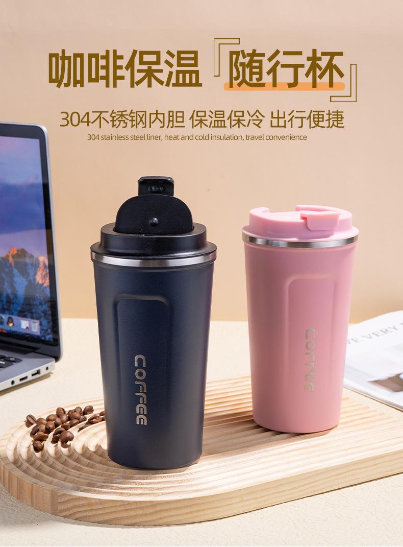 Taza de café de acero inoxidable 304, taza con aislamiento al vacío transfronterizo, regalo, taza de agua creativa de doble capa con boca grande para coche, venta al por mayor