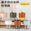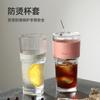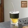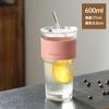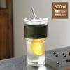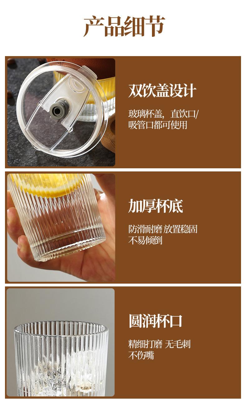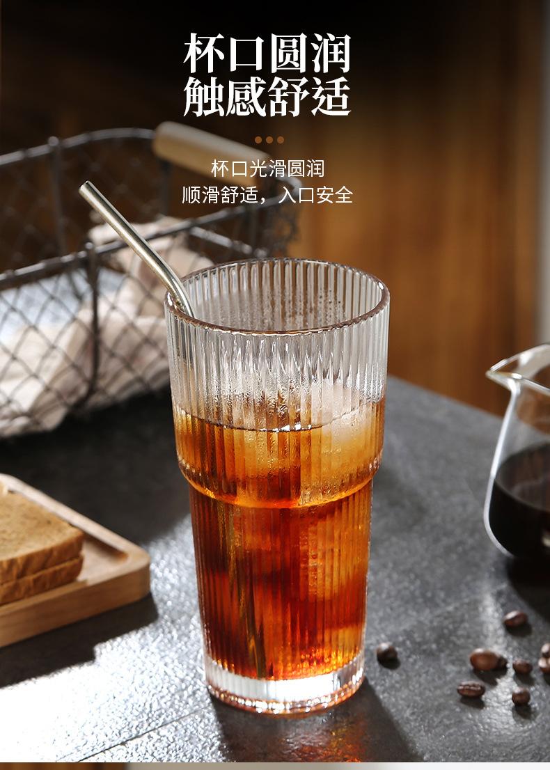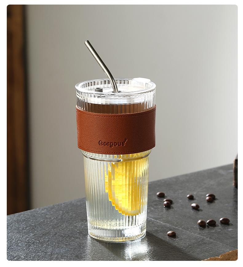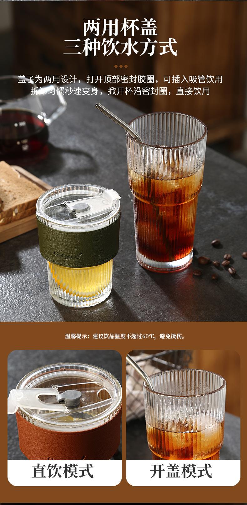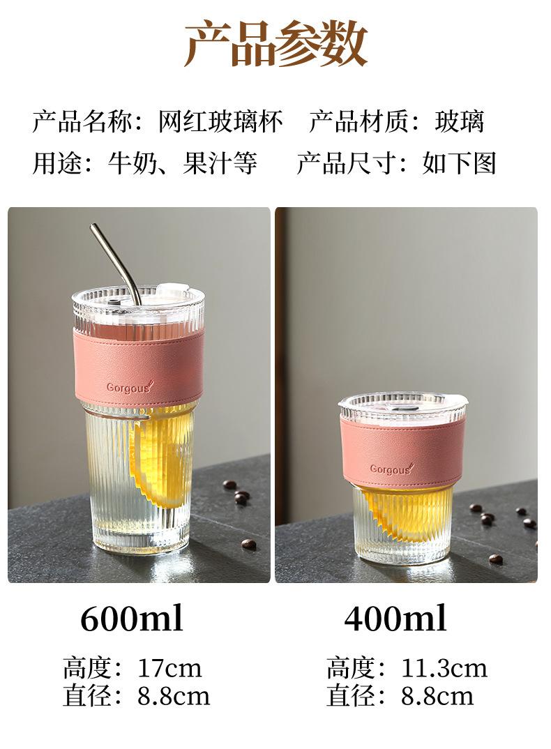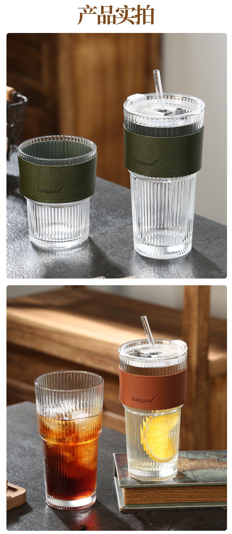 Taza con tubo de succión estilo celebridad de Internet, de rayas verticales, de vidrio, de alto valor de color, con tapa, para café americano con leche y hielo.