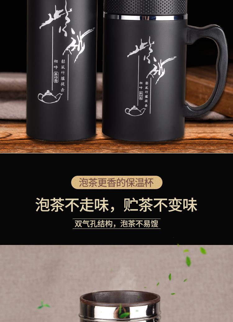 Taza térmica con revestimiento de arena morada y filtro para preparar té, taza conmemorativa de negocios para hombres y mujeres, con logotipo personalizado grabado.