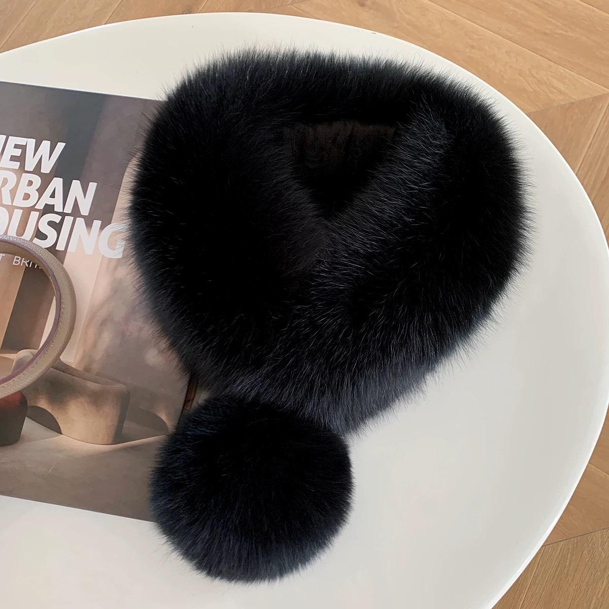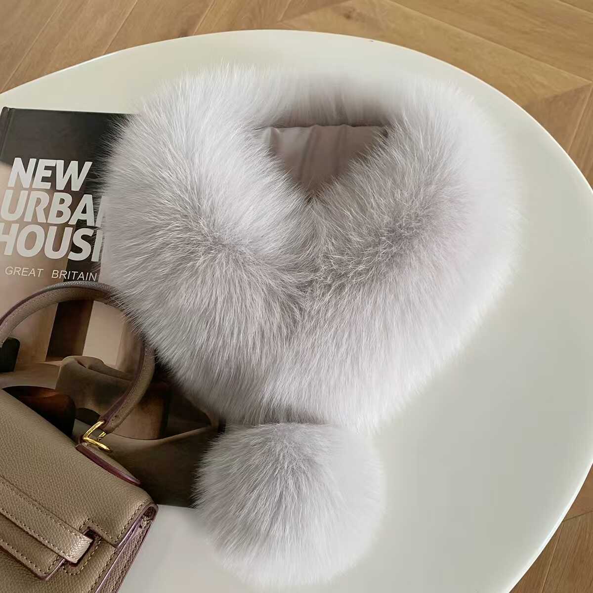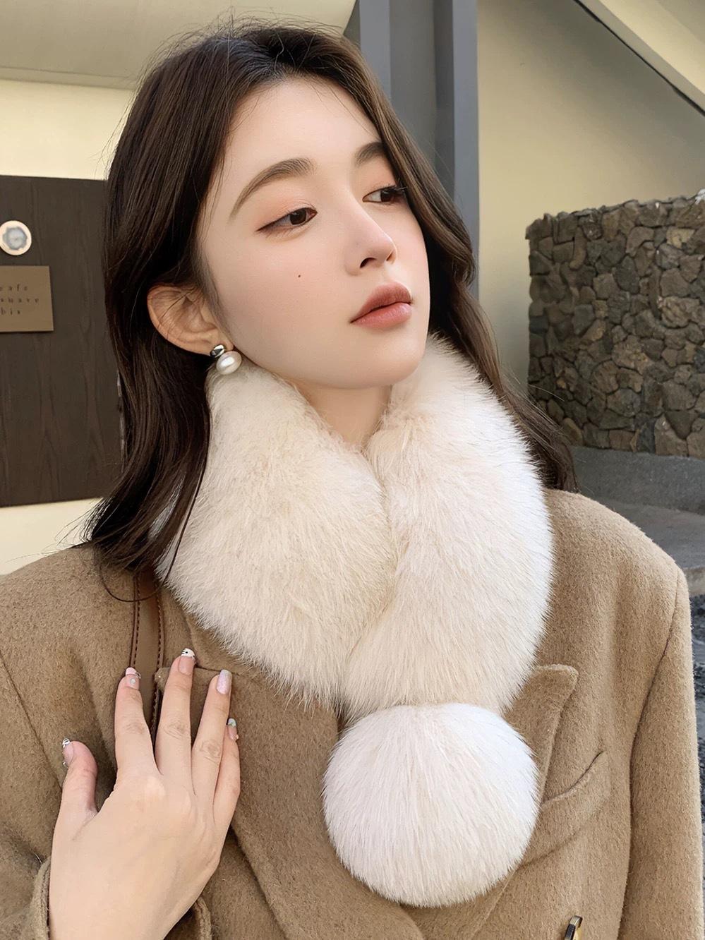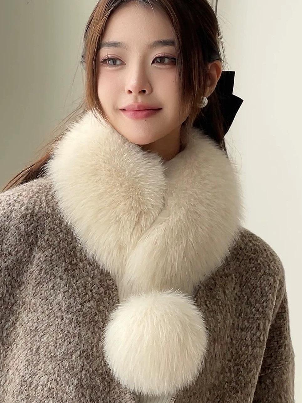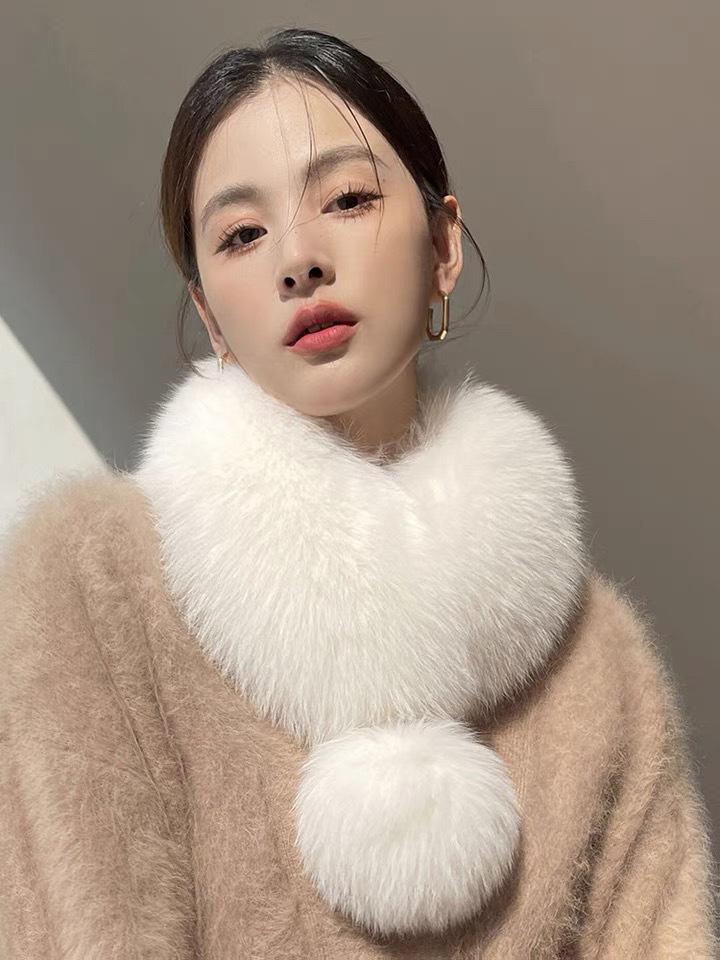 Bufanda de piel sintética de zorro estilo coreano para mujer, de invierno, corta, combinable, con bola de pelo grande, con hebilla magnética de piel artificial.