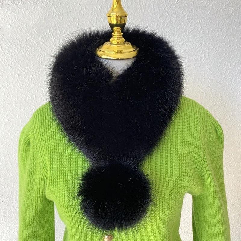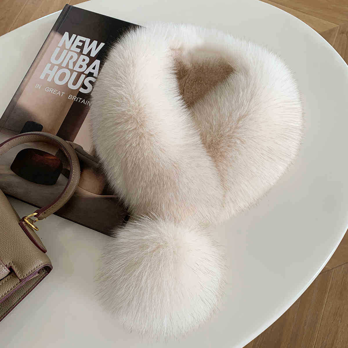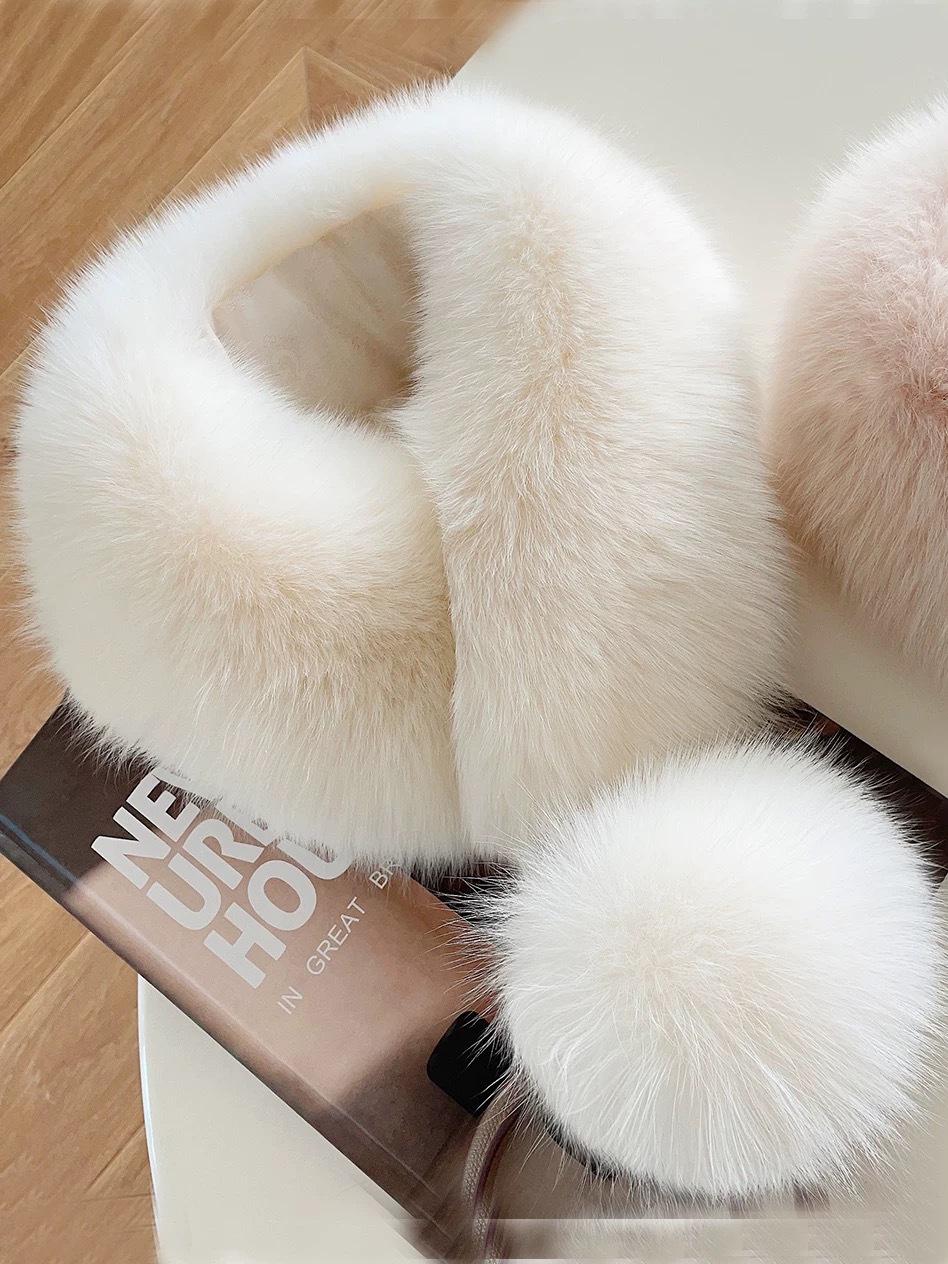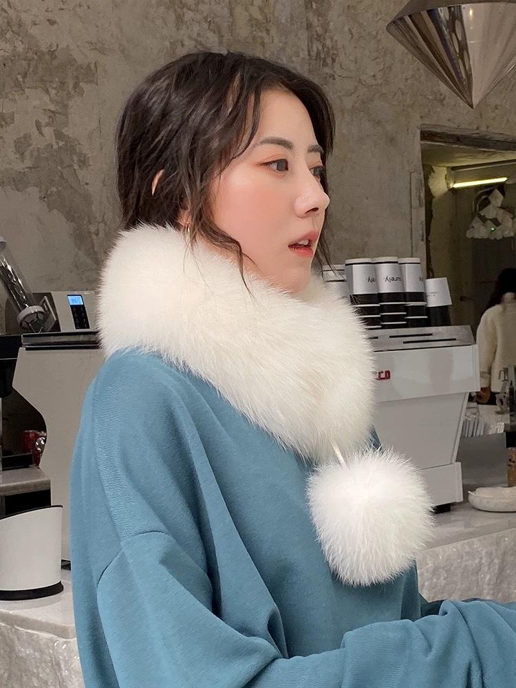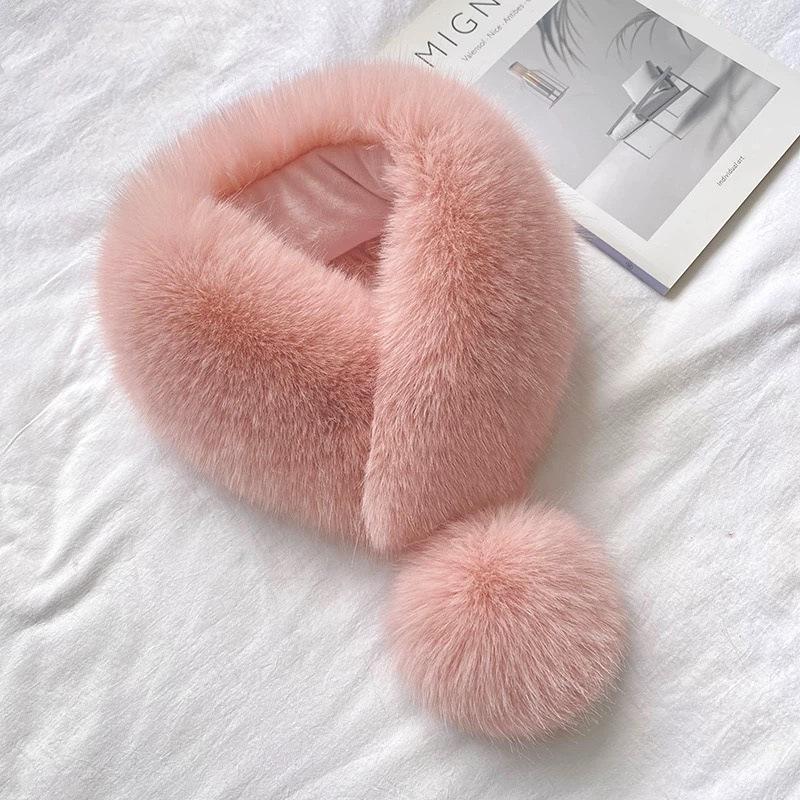 Bufanda de piel sintética de zorro estilo coreano para mujer, de invierno, corta, combinable, con bola de pelo grande, con hebilla magnética de piel artificial.