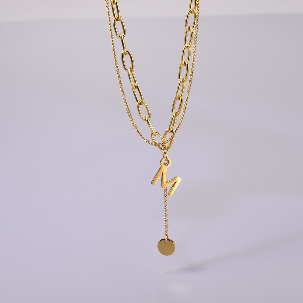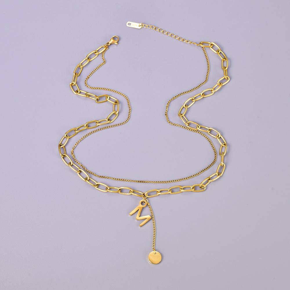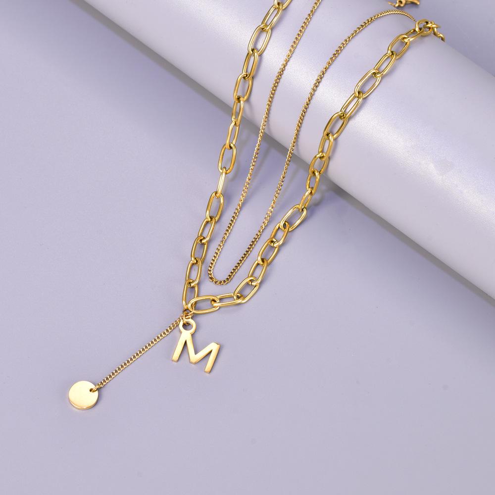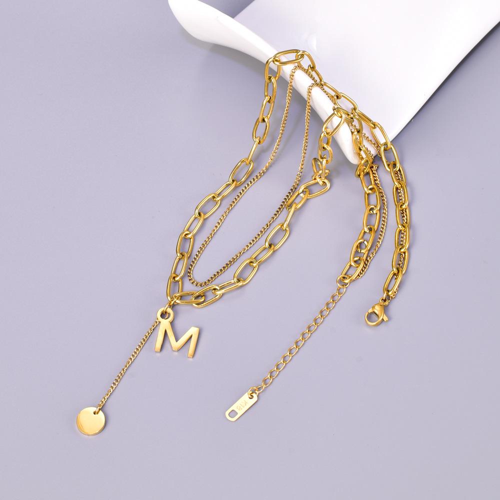 L193 Cadena colgante con borlas inglesas y letras de moda europea y americana, collar de marca redonda, cadena de clavícula, joyería de acero de titanio