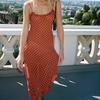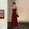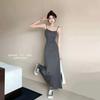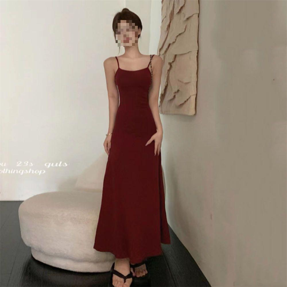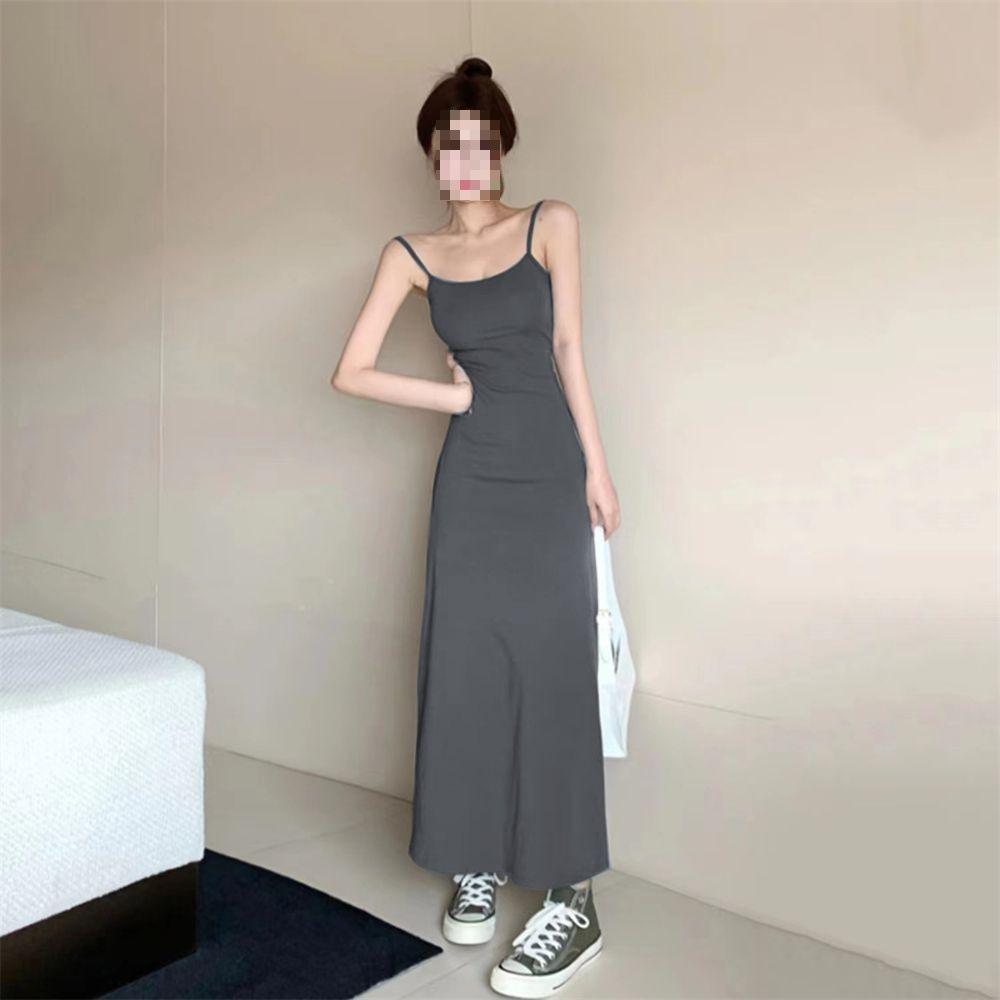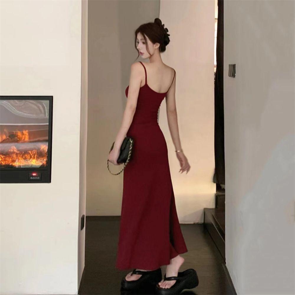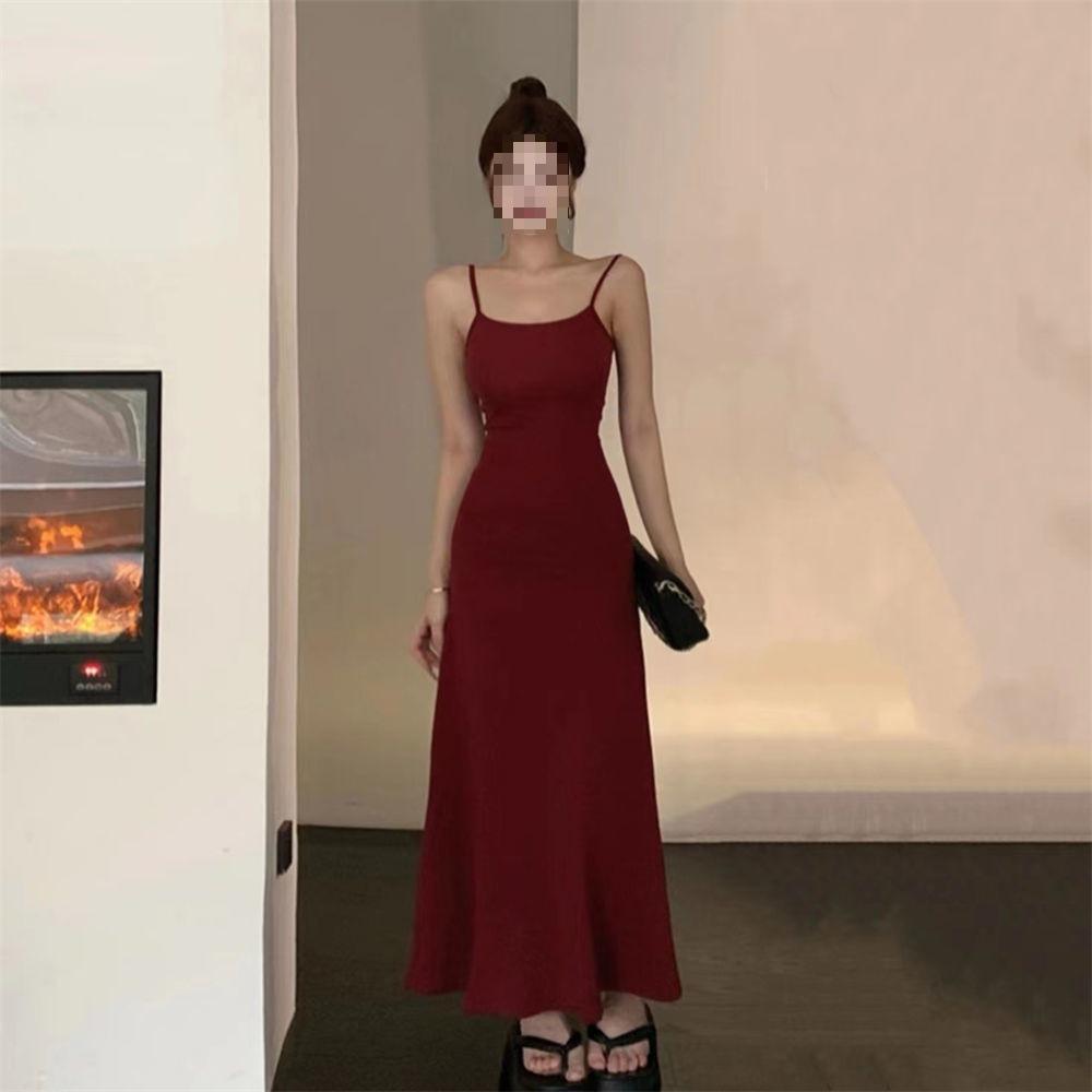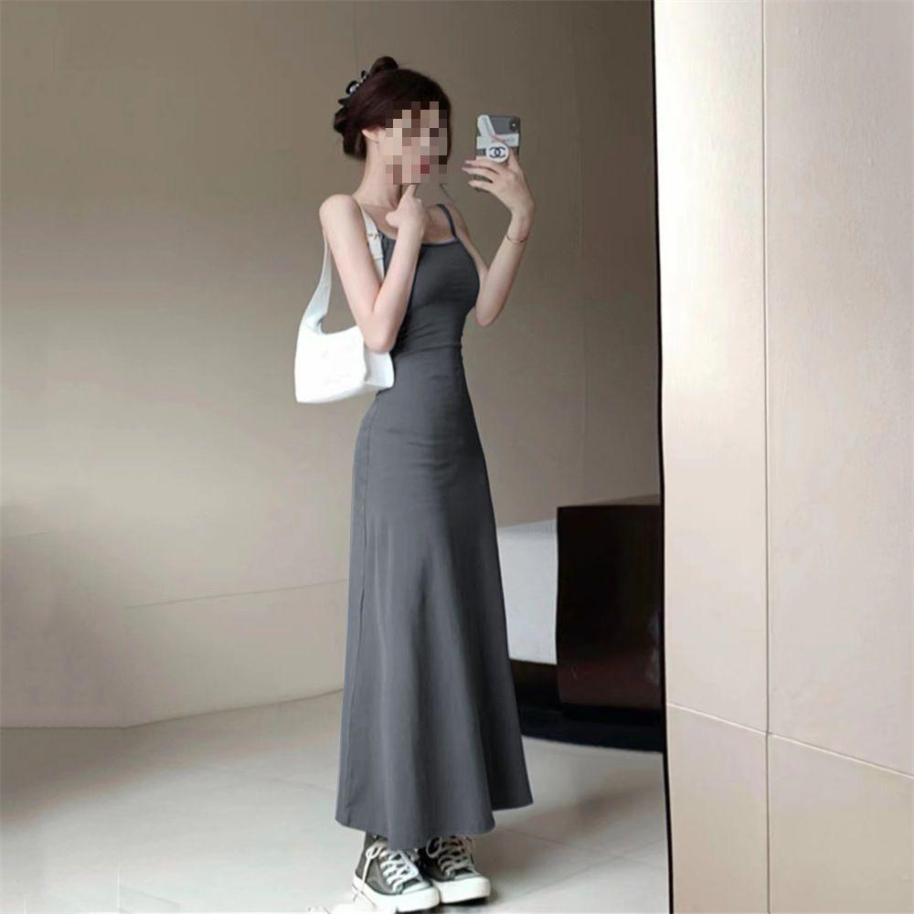 Vestido de Tirantes de Cintura Alta para Chica Sexy para Mujer Verano 2025 Nuevo Estilo Adelgazante de Cintura Hombro Descubierto Fondo Interior Falda Larga Sobre la Rodilla