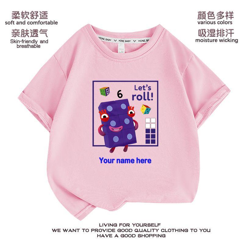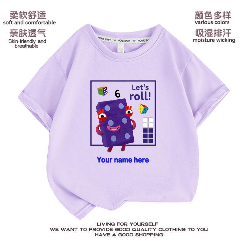 Bloques de Construcción Digitales Camiseta de Verano para Niños Manga Corta 2024 Nueva Camiseta de Verano para Niños de Algodón Manga Media Top Cuello Redondo 6