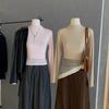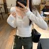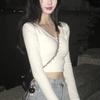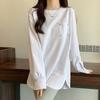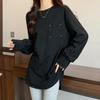Camiseta de Largo Medio Nueva de Manga Larga para Mujer Trendy 2025 Diseño de Otoño Mangas de Camisa Holgada Look Adelgazante Abertura Top