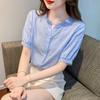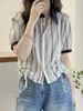 2018 Nueva Camisa Blanca Profesional de Manga Larga Ajustada Coreana de Rayas Verticales Camisa Herramienta de Encaje Ropa de Mujer con Cuello Vertical