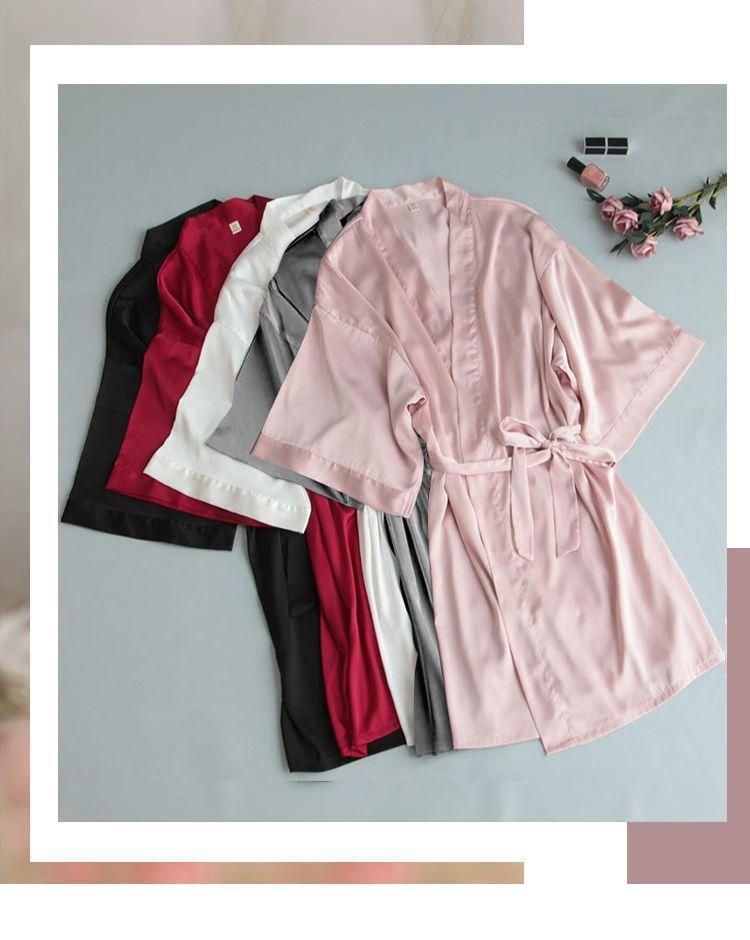 Camisón de seda de hielo transpirable para primavera y verano, pijama para mujer, vestido de boda, cárdigan, bata de salón de belleza, bata de baño holgada de hotel japonés.