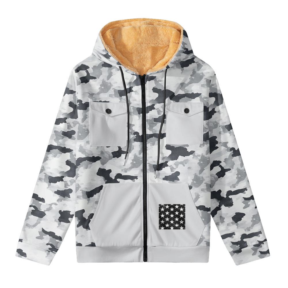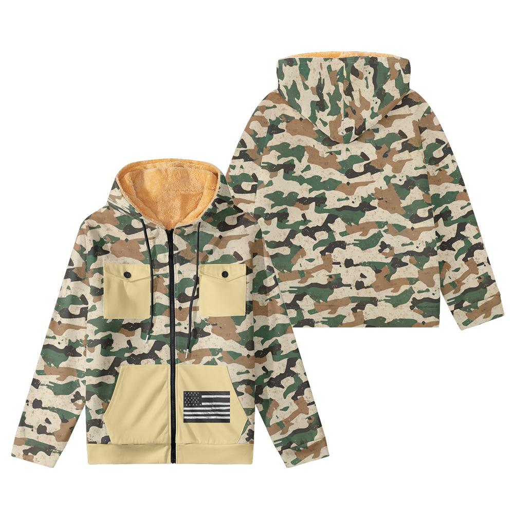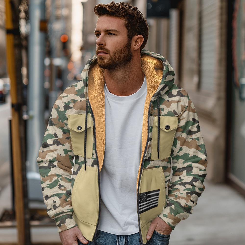 Europa y Estados Unidos transfronterizo 11 patrones multibolsillo cremallera con capucha forro polar suéter forro amarillo algodón acolchado chaqueta suéter