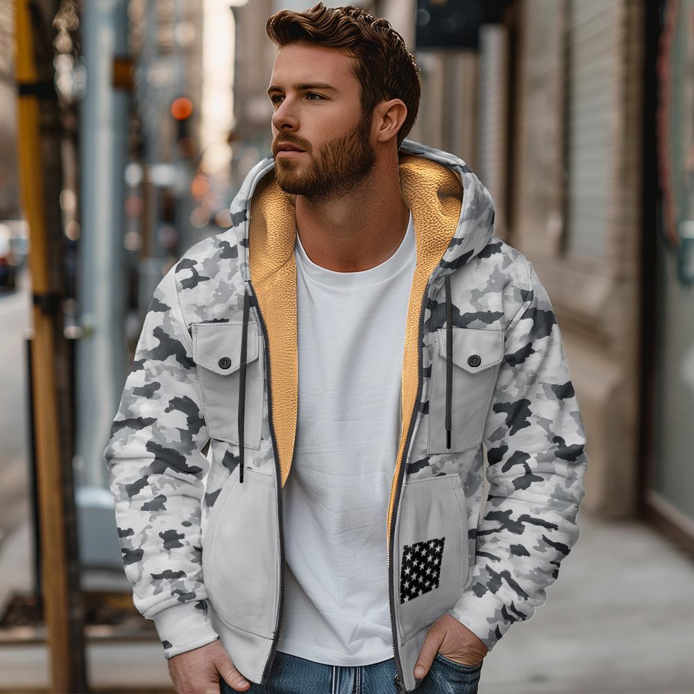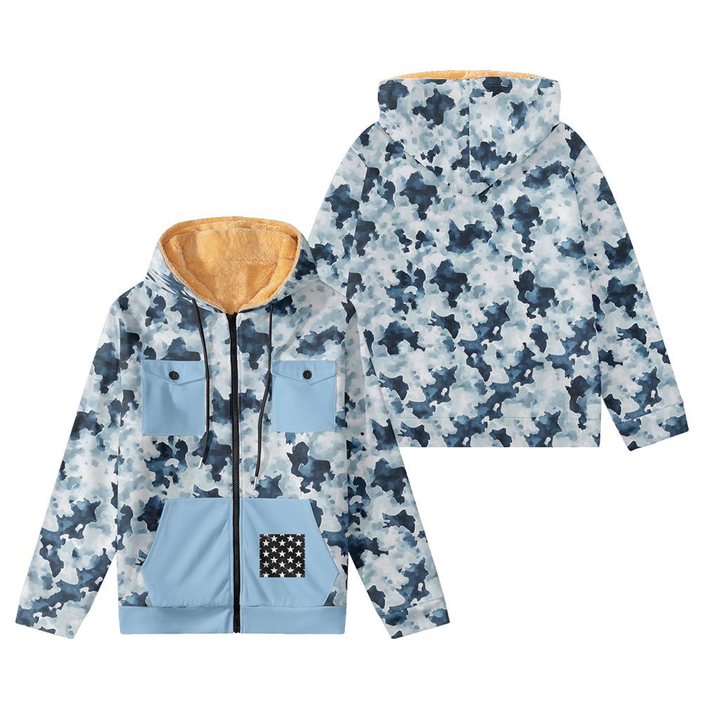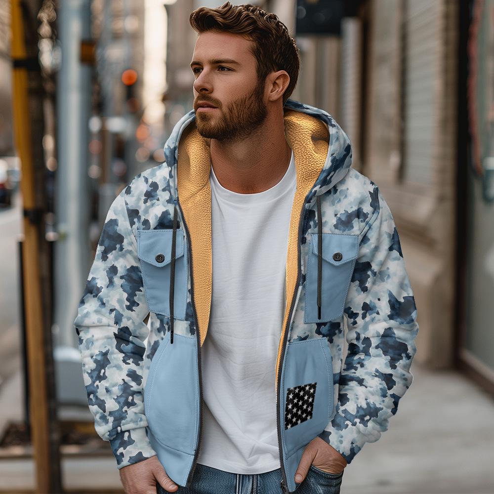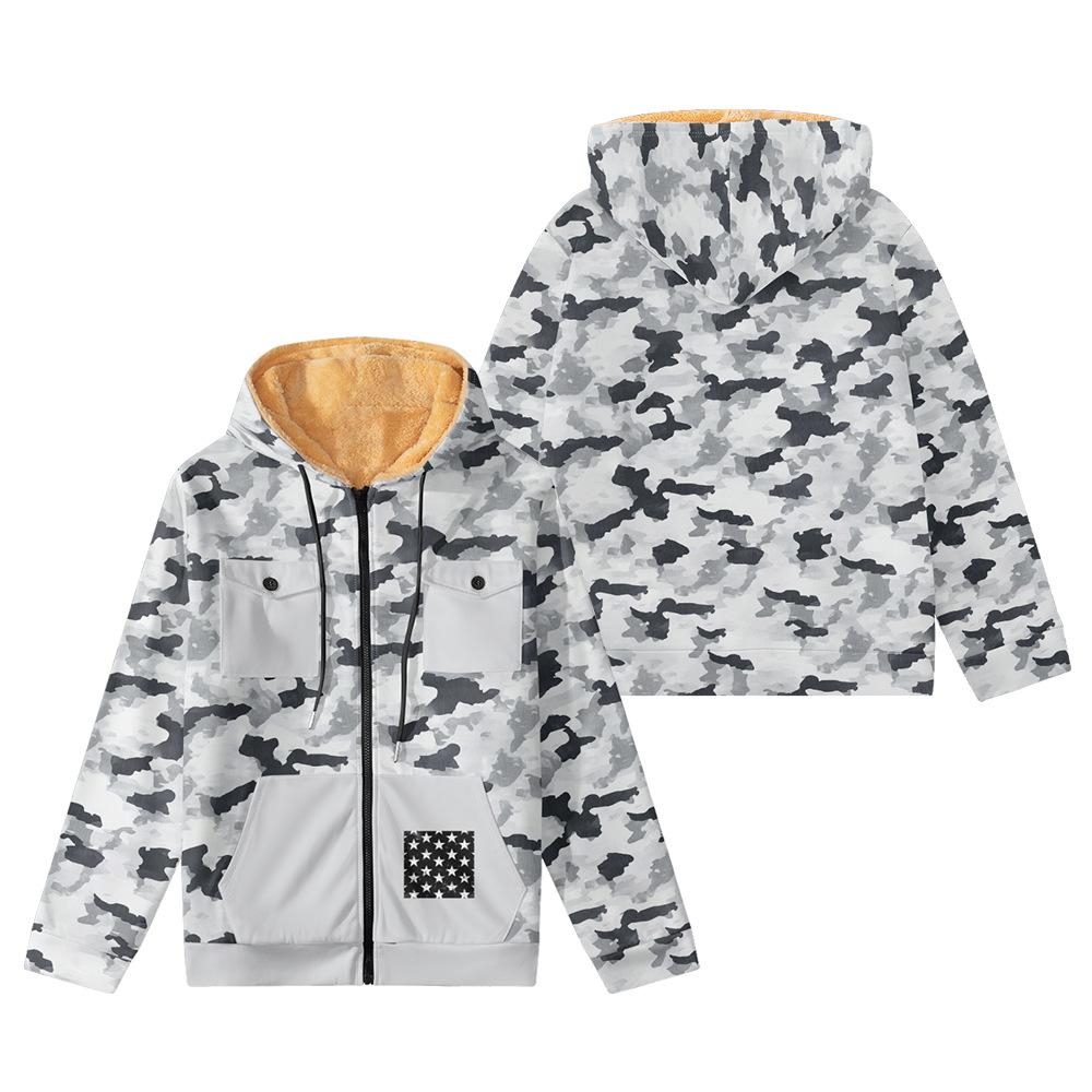 Europa y Estados Unidos transfronterizo 11 patrones multibolsillo cremallera con capucha forro polar suéter forro amarillo algodón acolchado chaqueta suéter