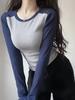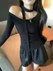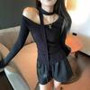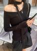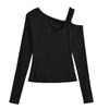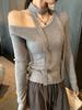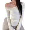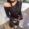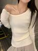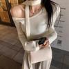 Camisa de punto con hombros descubiertos y cuello colgante para chicas calientes, blusa de otoño para mujer con nuevo diseño, top ajustado y adelgazante con hombros descubiertos.