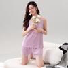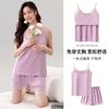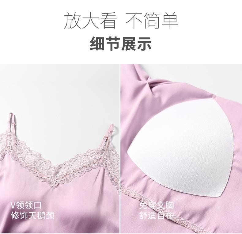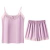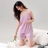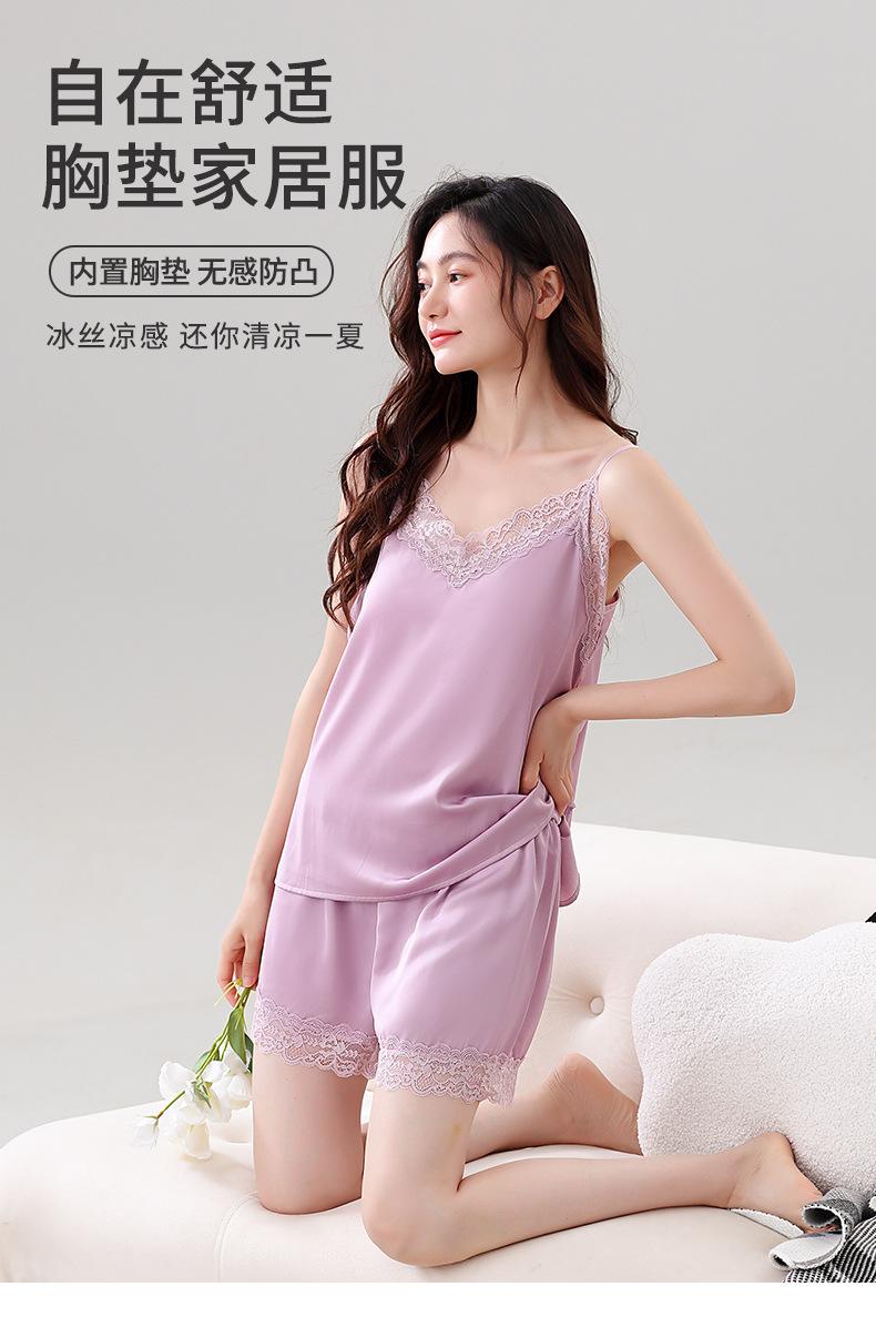 Pijama de seda de hielo para mujer, pantalones cortos de verano con almohadilla para el pecho, chaleco sin mangas, pantalones cortos, ropa holgada de verano para el hogar, conjunto de dos piezas