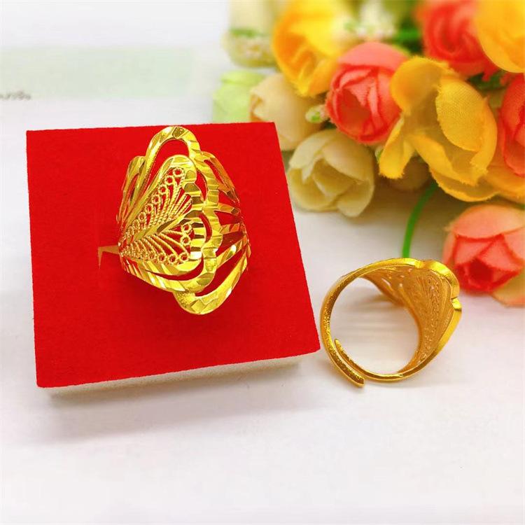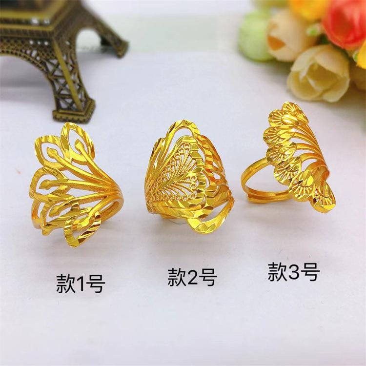 Anillo vietnamita de oro arena para mujer, anillo de hoja abierta, anillo estilo europeo, joyería de moda estilo coreano