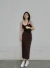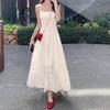 2025 Primavera y Verano Nuevo Estilo Francés Retro Cintura Adelgazante Look Diseño de Estilo Dulce y Suave Vestido Largo con Tirantes para Mujer