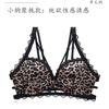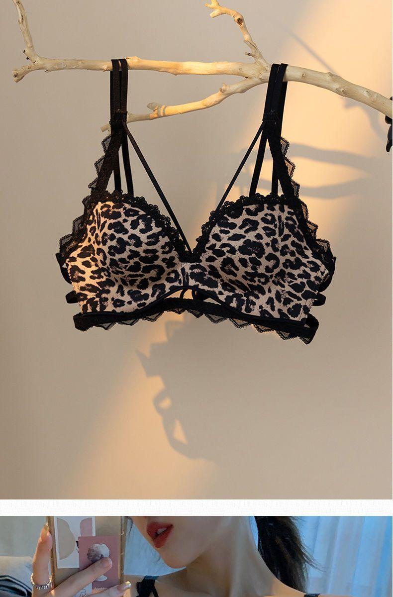 Preciosos Íntimos de Espalda, Estampado de Leopardo Femenino, Brasier Push-Up Engrosado para Pecho Pequeño, Sin Aros, Corte para Pecho Plano, Conjunto de Brasier Grande