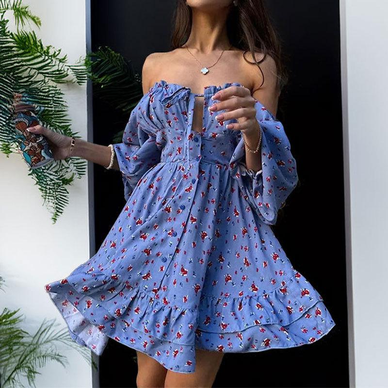 Vestido de verano 2024 con estampado floral francés, espalda descubierta, corte entallado y abertura para mujer europea y americana de Amazon