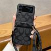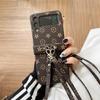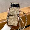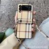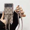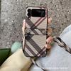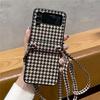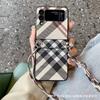 Funda plegable para Samsung ZFlip5, con diseño de cuerda cruzada a cuadros, de cuero, todo en uno, para ZFlip6