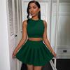 Vestido de otoño 2024, nuevo vestido largo plisado sin mangas con cuello redondo y elegante para mujer europea y americana transfronteriza