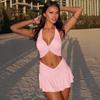 Vestido plisado elegante y sexy de color puro con escote en V para mujer, estilo europeo y americano, temporada 2024