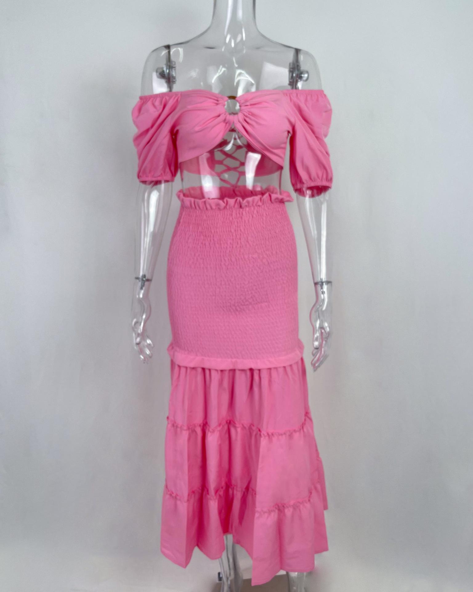 Ropa de mujer europea y americana 2024 comercio exterior otoño nuevo color sólido sexy cuello en U cintura plisada cabestrillo gran vestido femenino