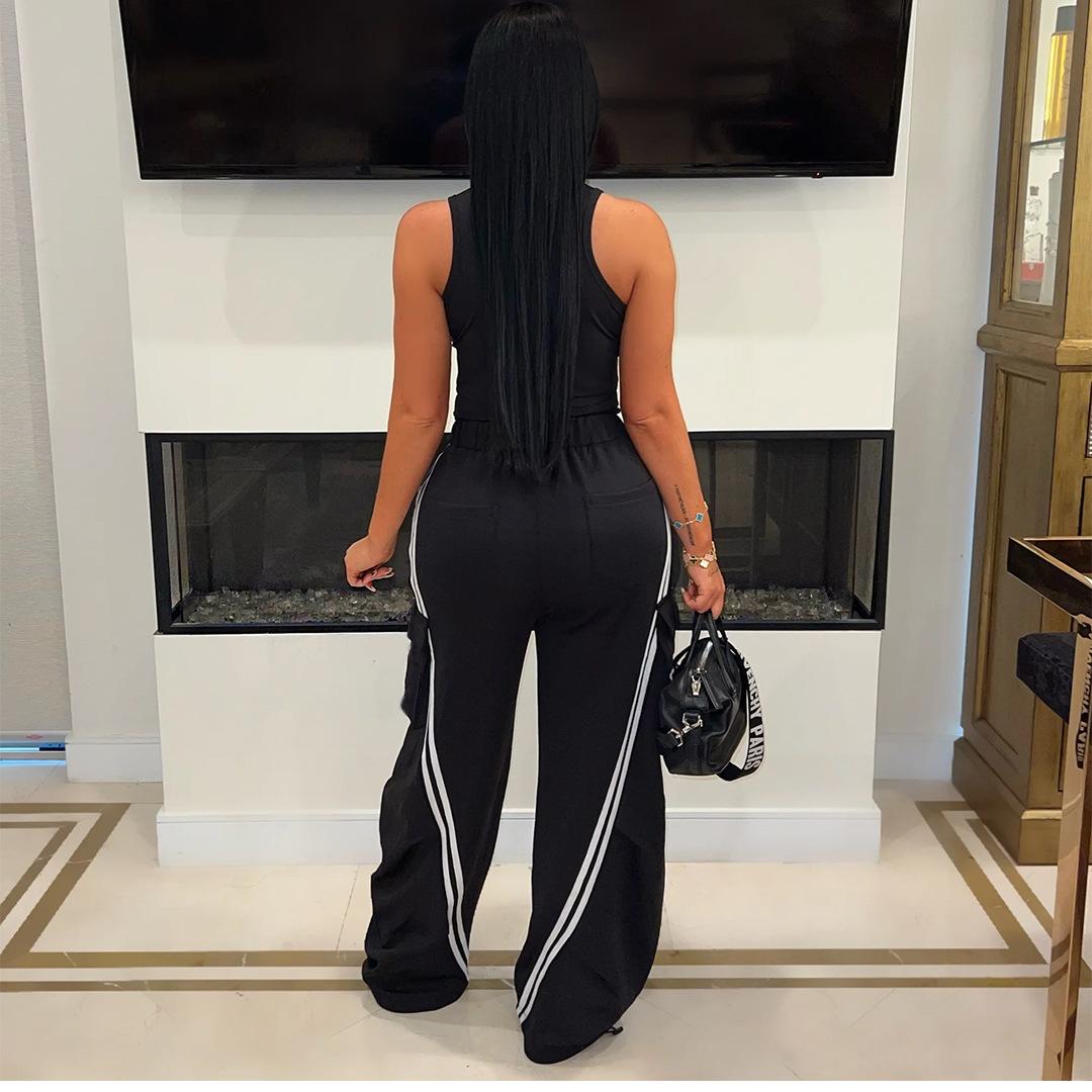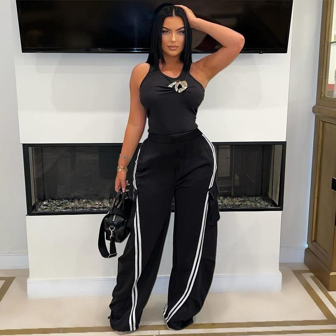 Moda casual de calle para mujer europea y americana, pantalones rectos sueltos con cintura elástica de goma, pantalones de otoño e invierno para chicas hot, venta al por mayor