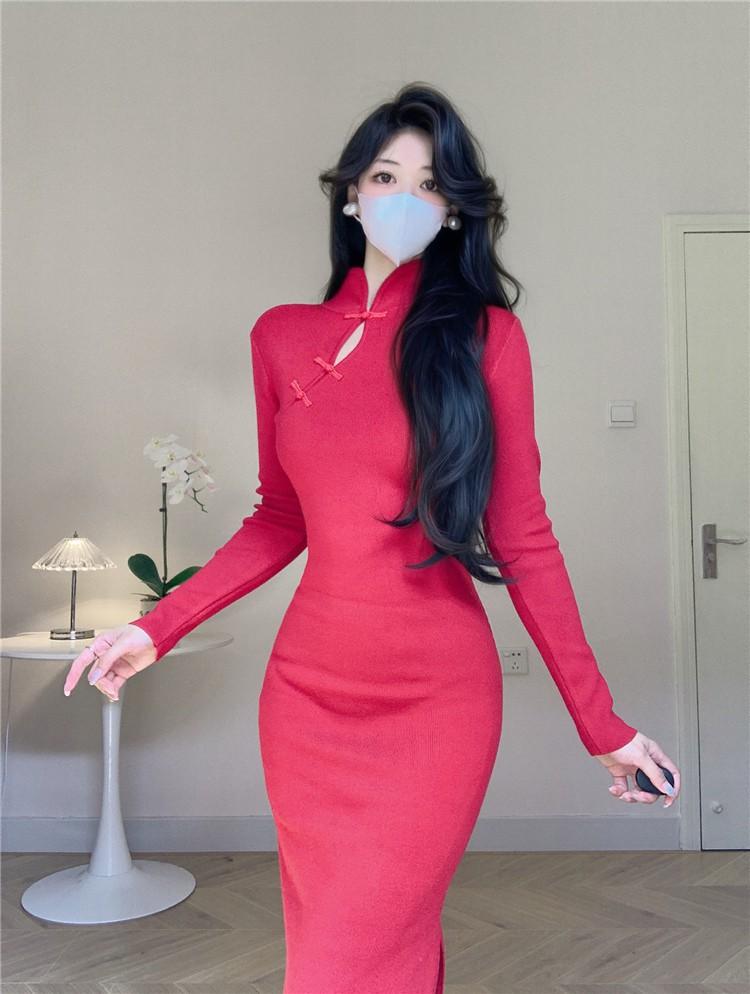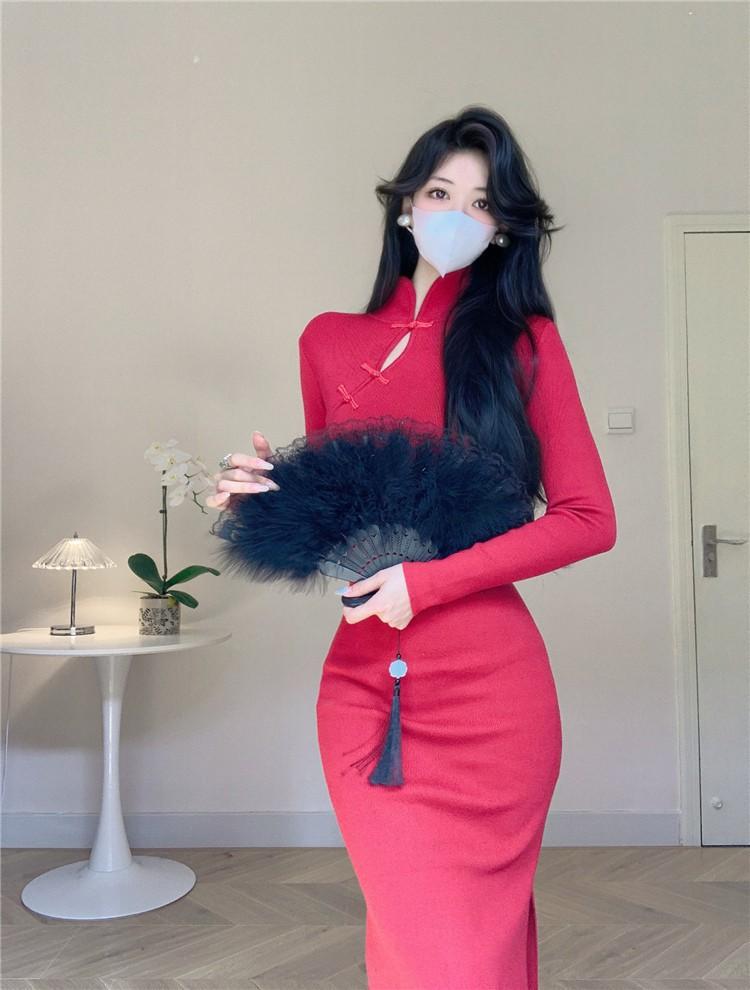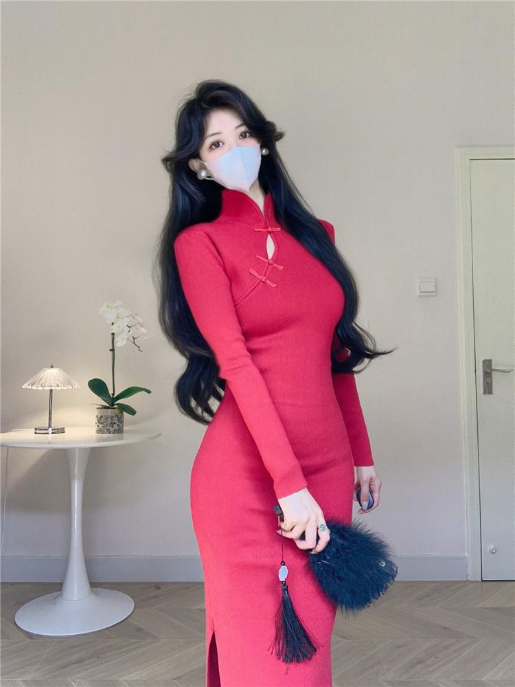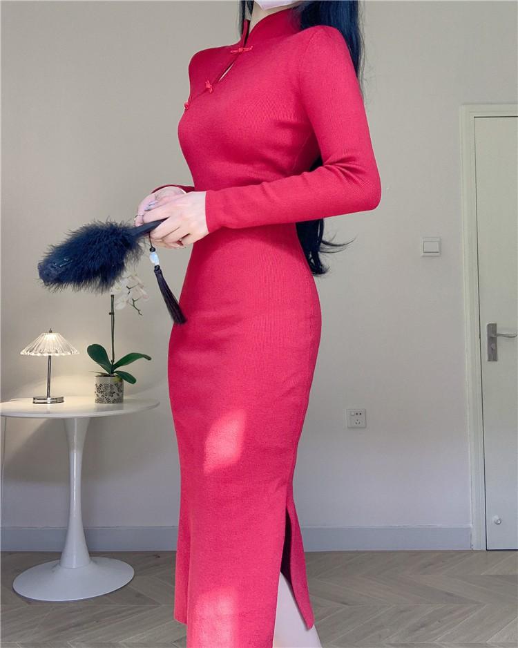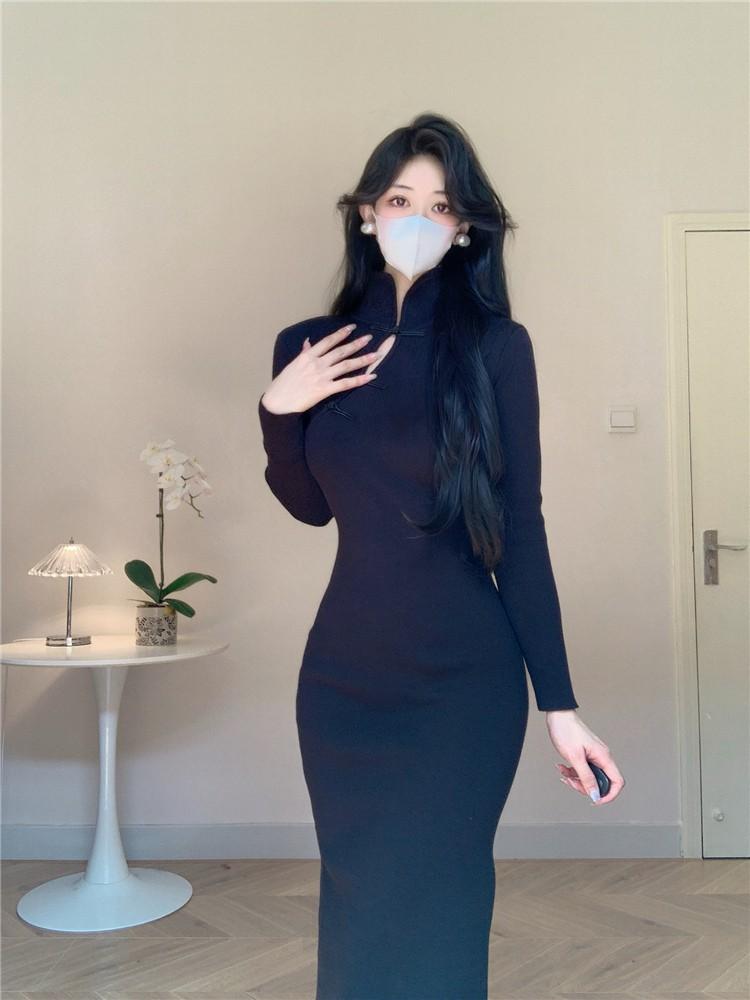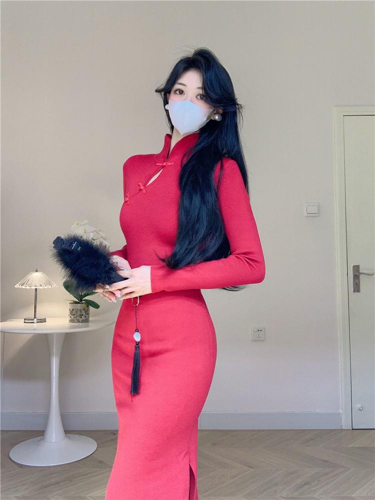 Nuevo estilo chino retro mejorado estilo nacional elegante vestido cheongsam de punto para mujer transfronterizo otoño nuevo vestido de suéter para mujer