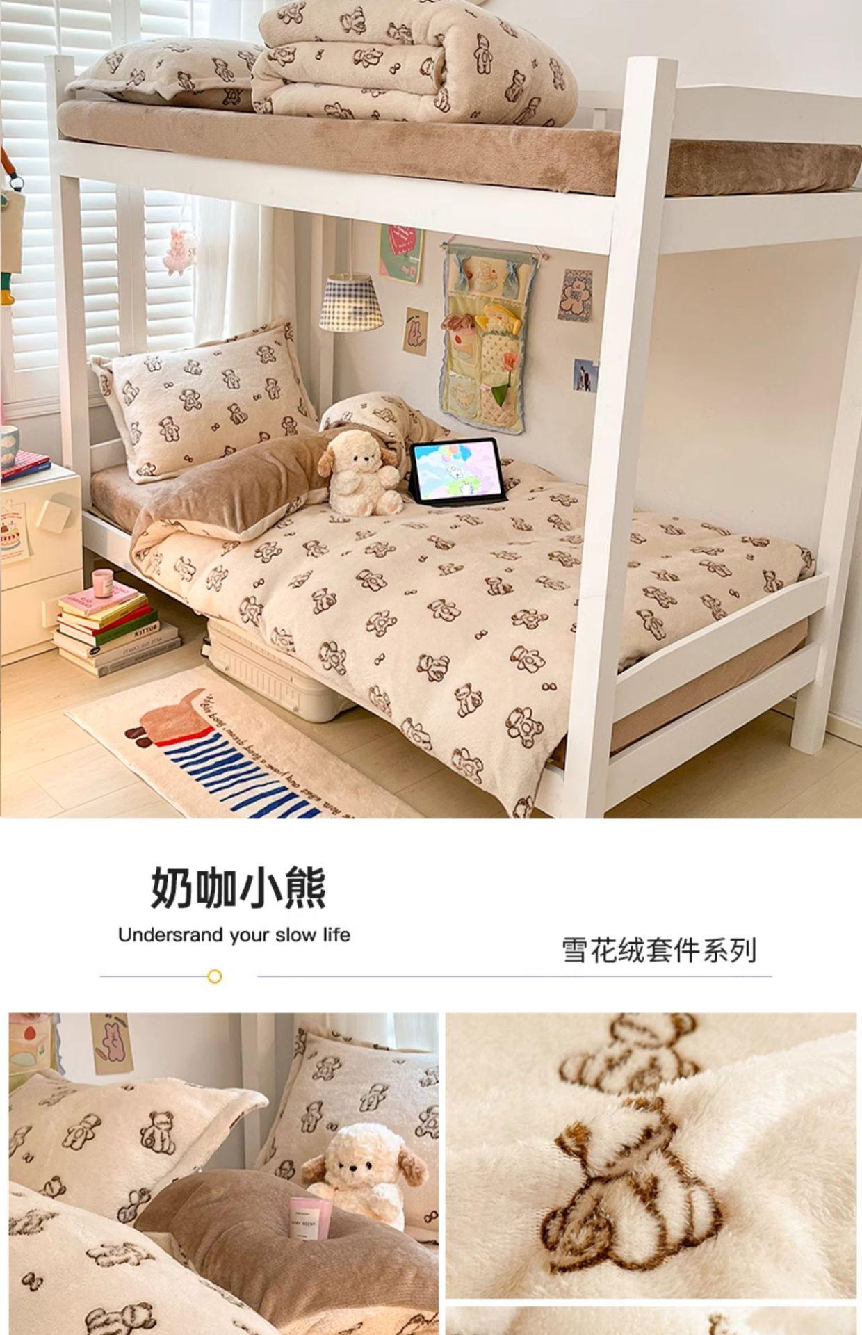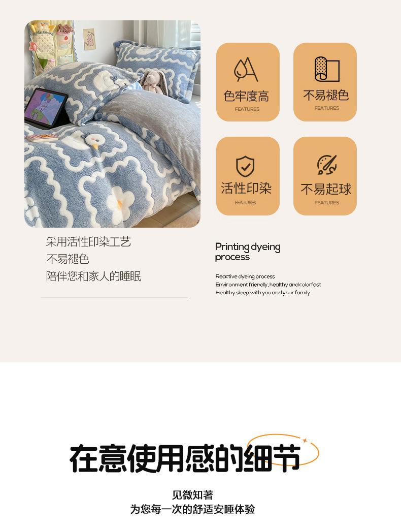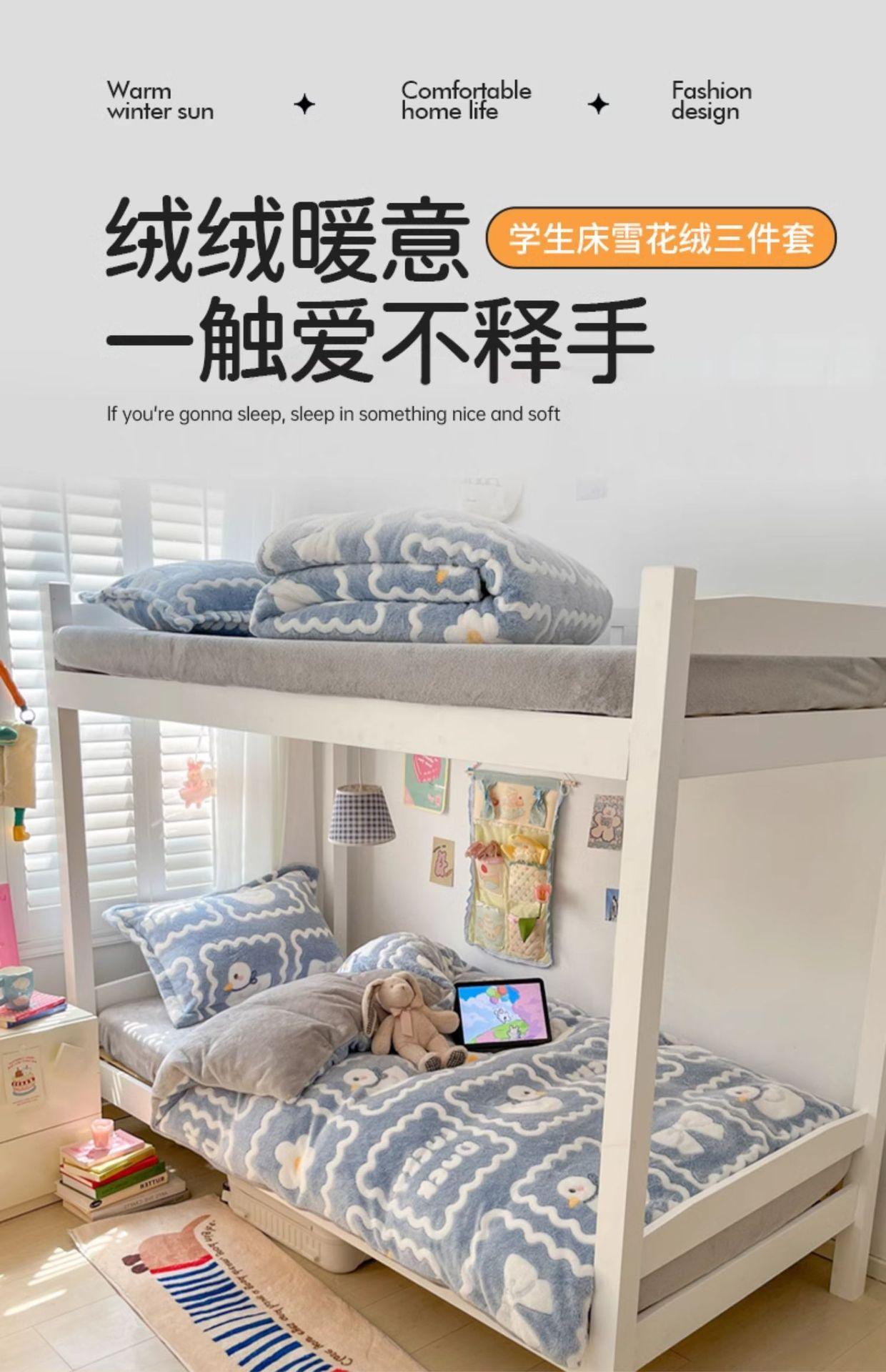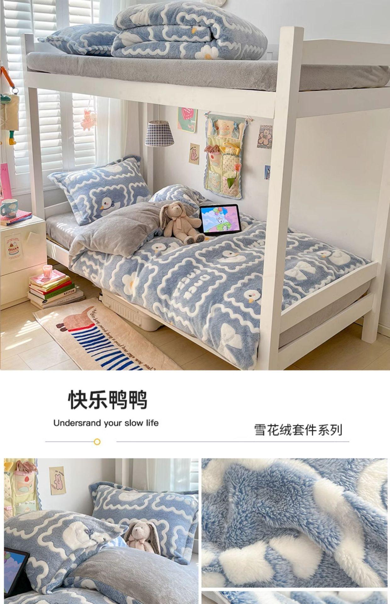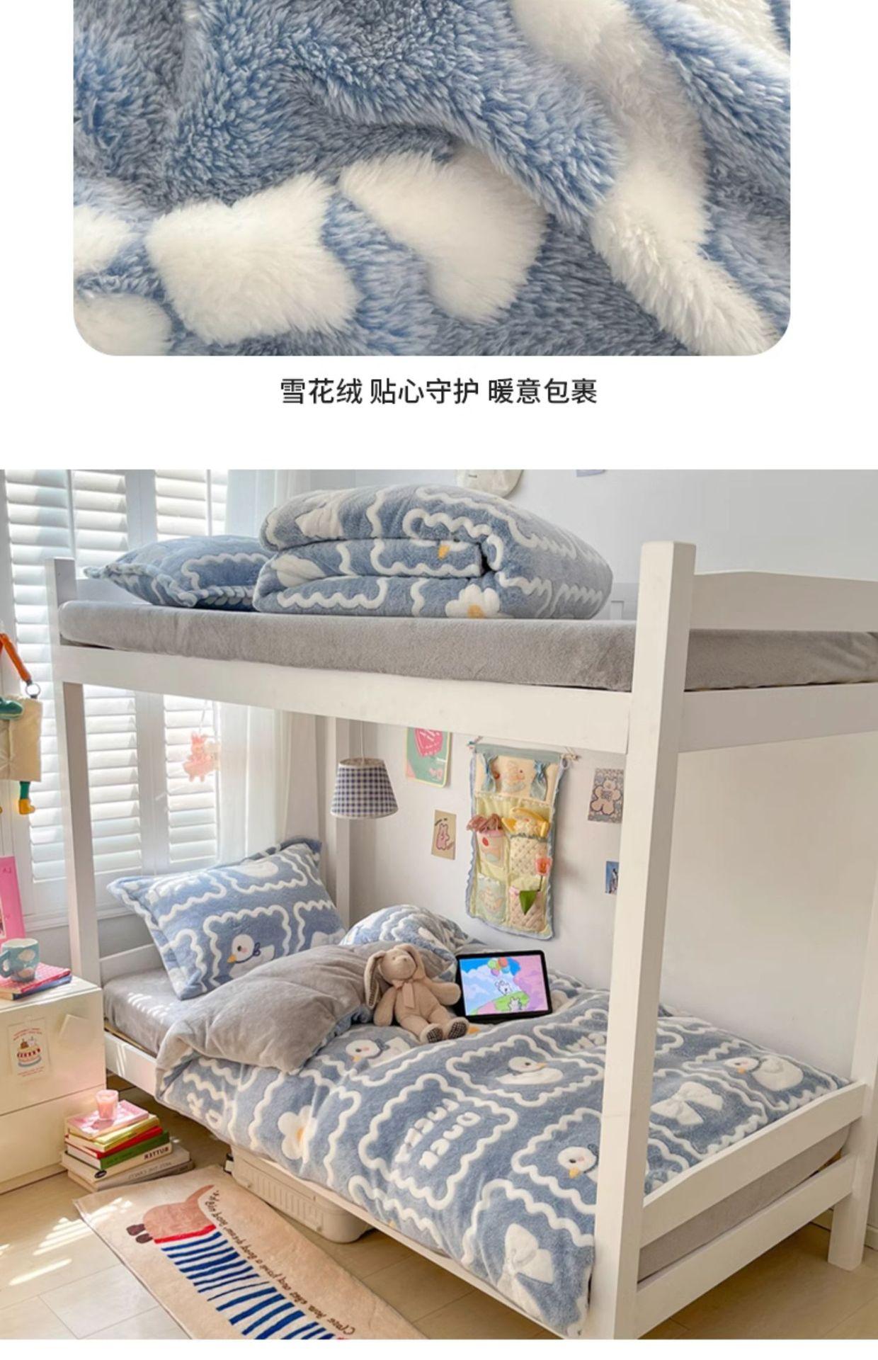Juego de tres piezas de terciopelo de leche para dormitorio de estudiantes de invierno, funda de edredón de franela de coral de doble cara más juego de cuatro piezas de sábana de terciopelo