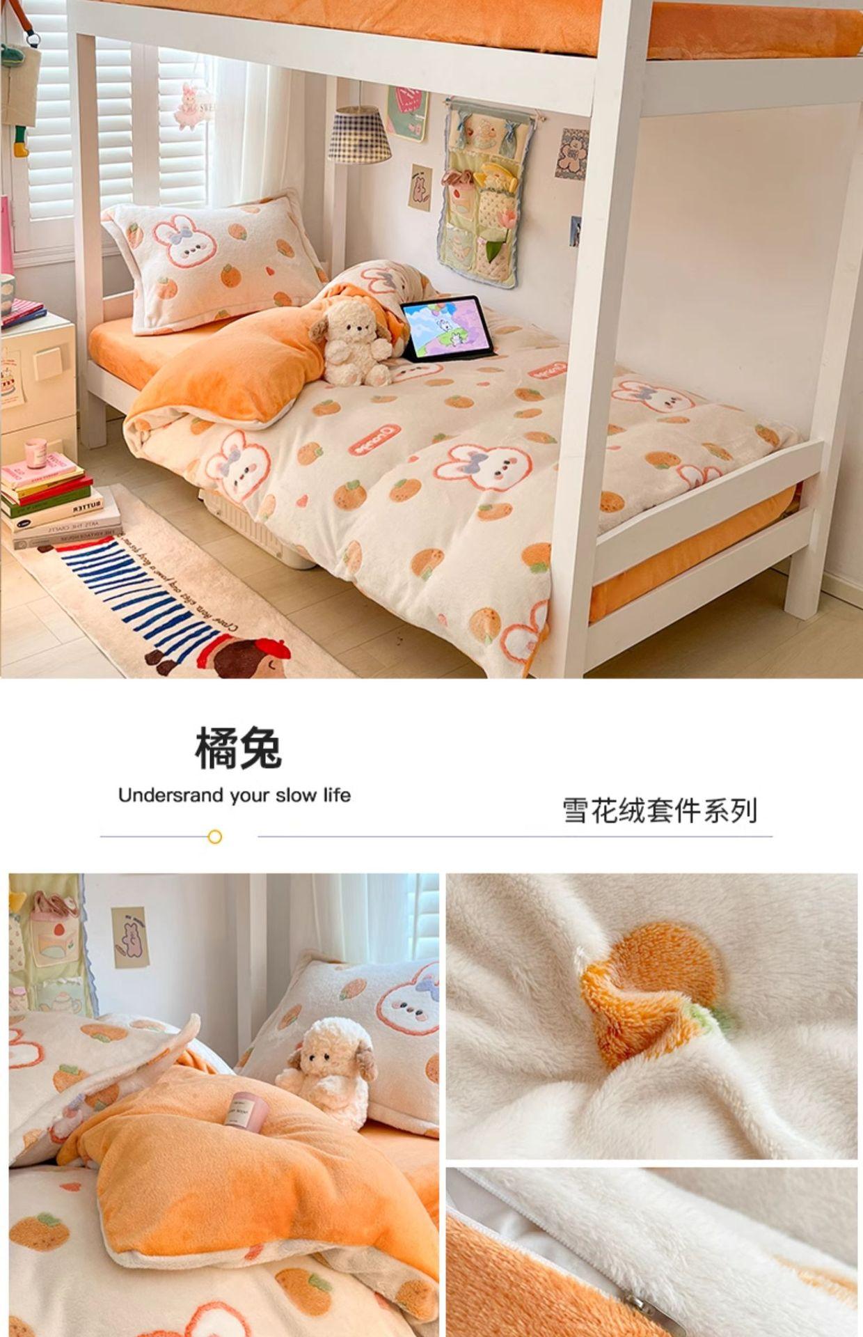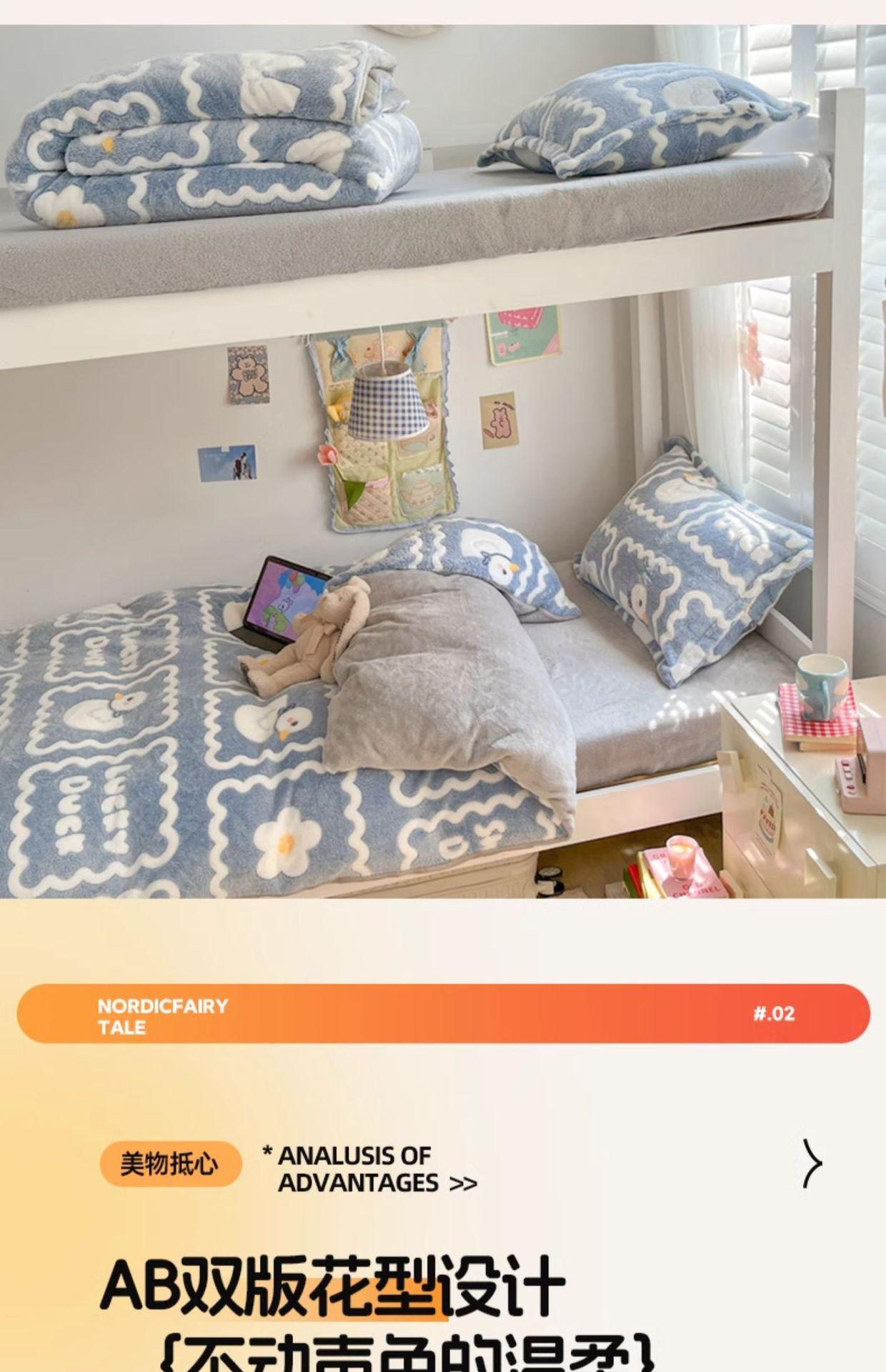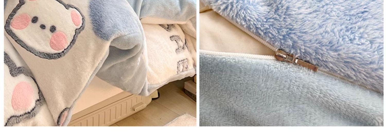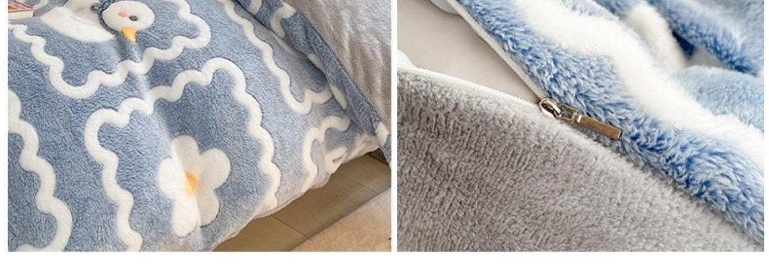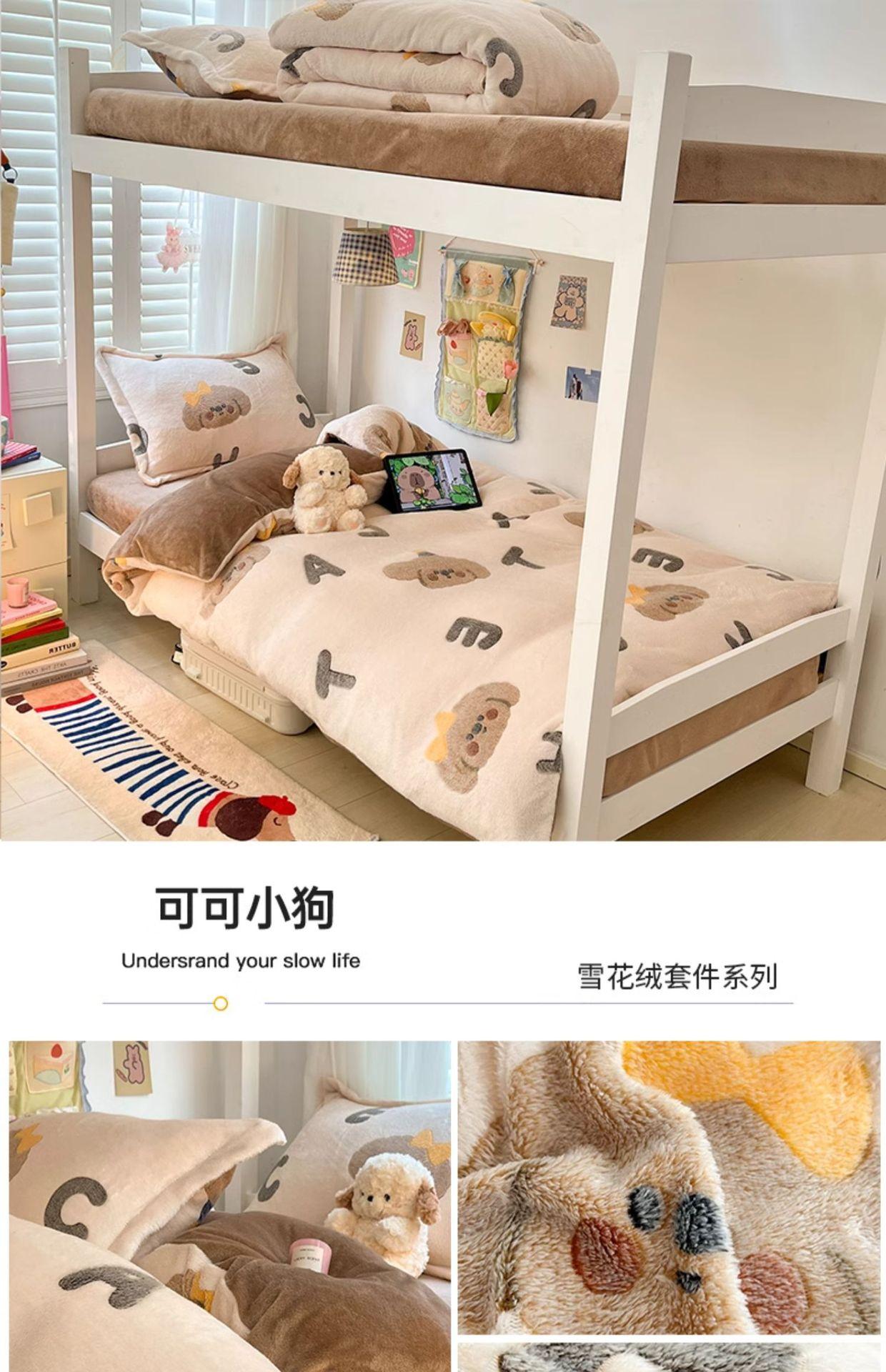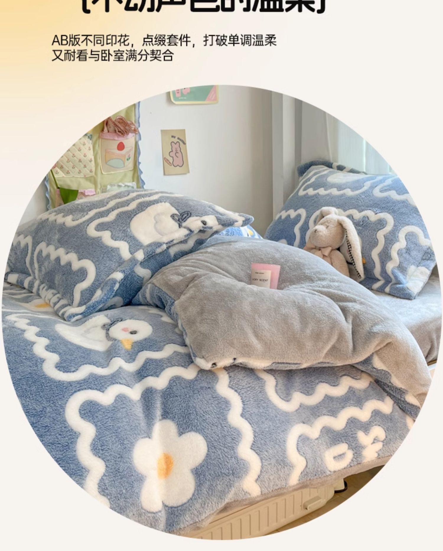 Juego de tres piezas de terciopelo de leche para dormitorio de estudiantes de invierno, funda de edredón de franela de coral de doble cara más juego de cuatro piezas de sábana de terciopelo