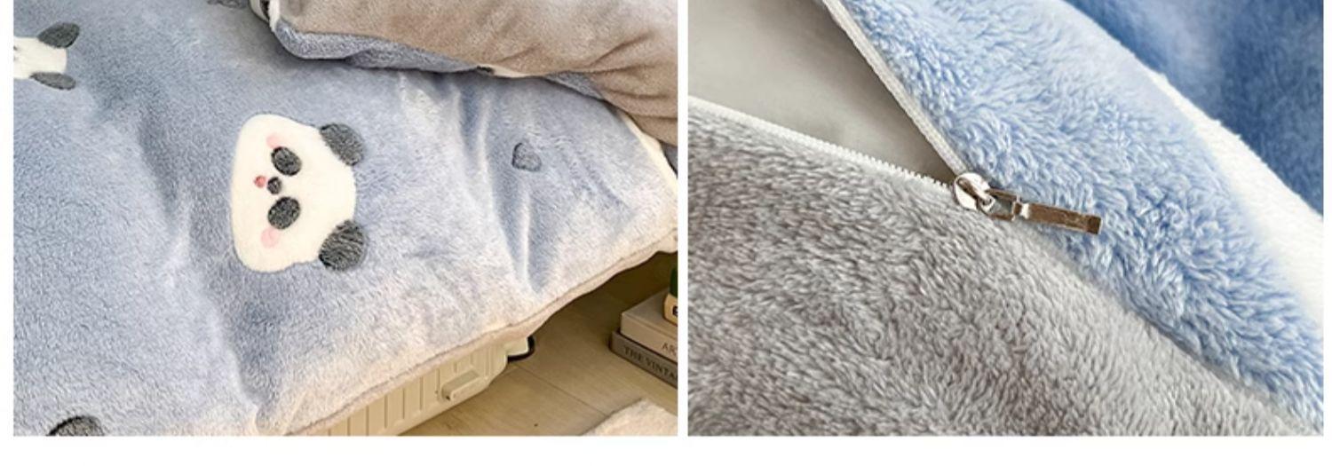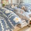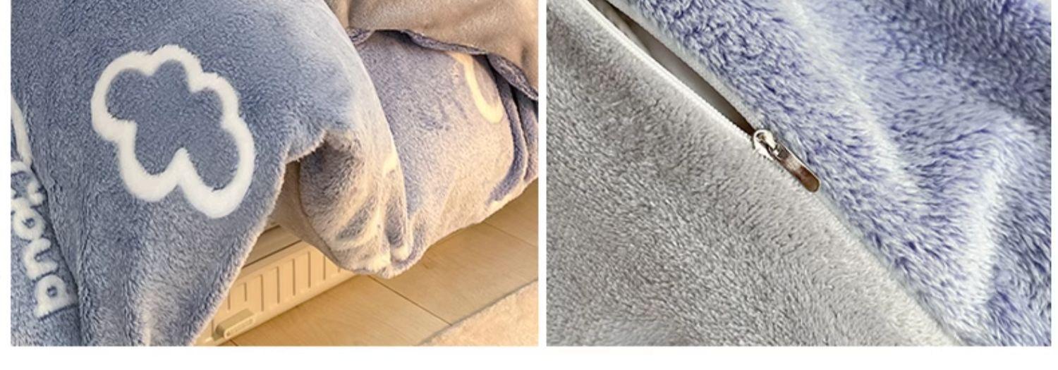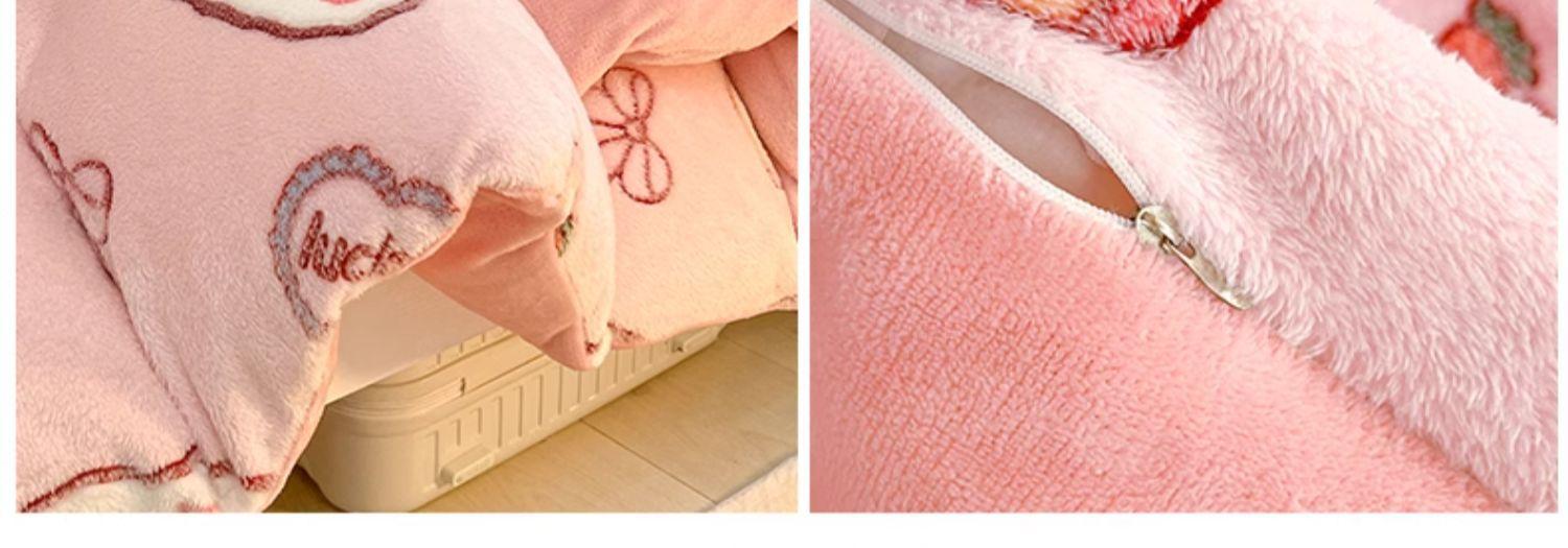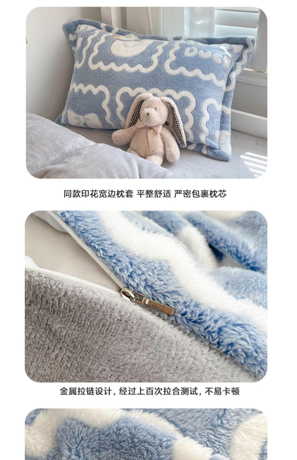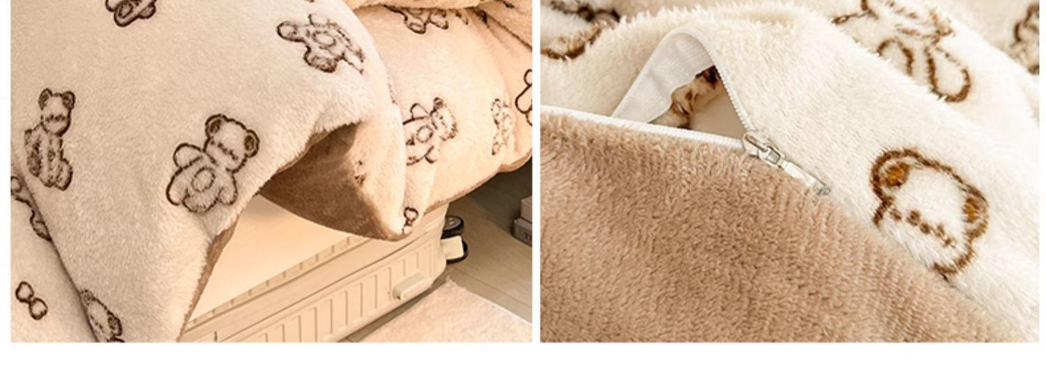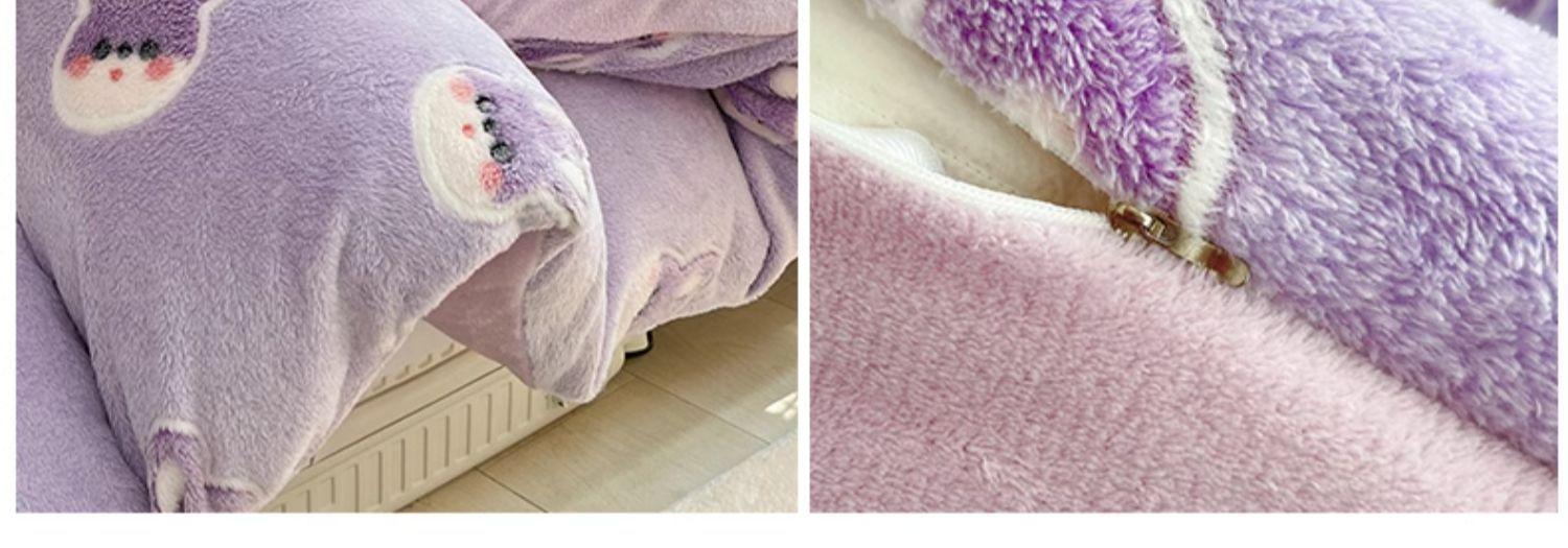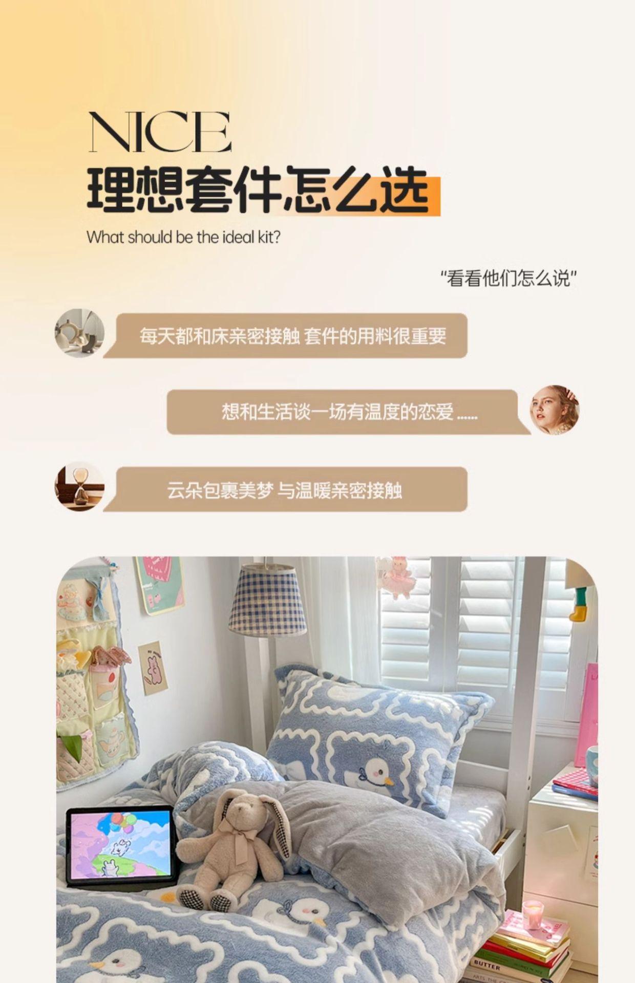 Juego de tres piezas de terciopelo de leche para dormitorio de estudiantes de invierno, funda de edredón de franela de coral de doble cara más juego de cuatro piezas de sábana de terciopelo