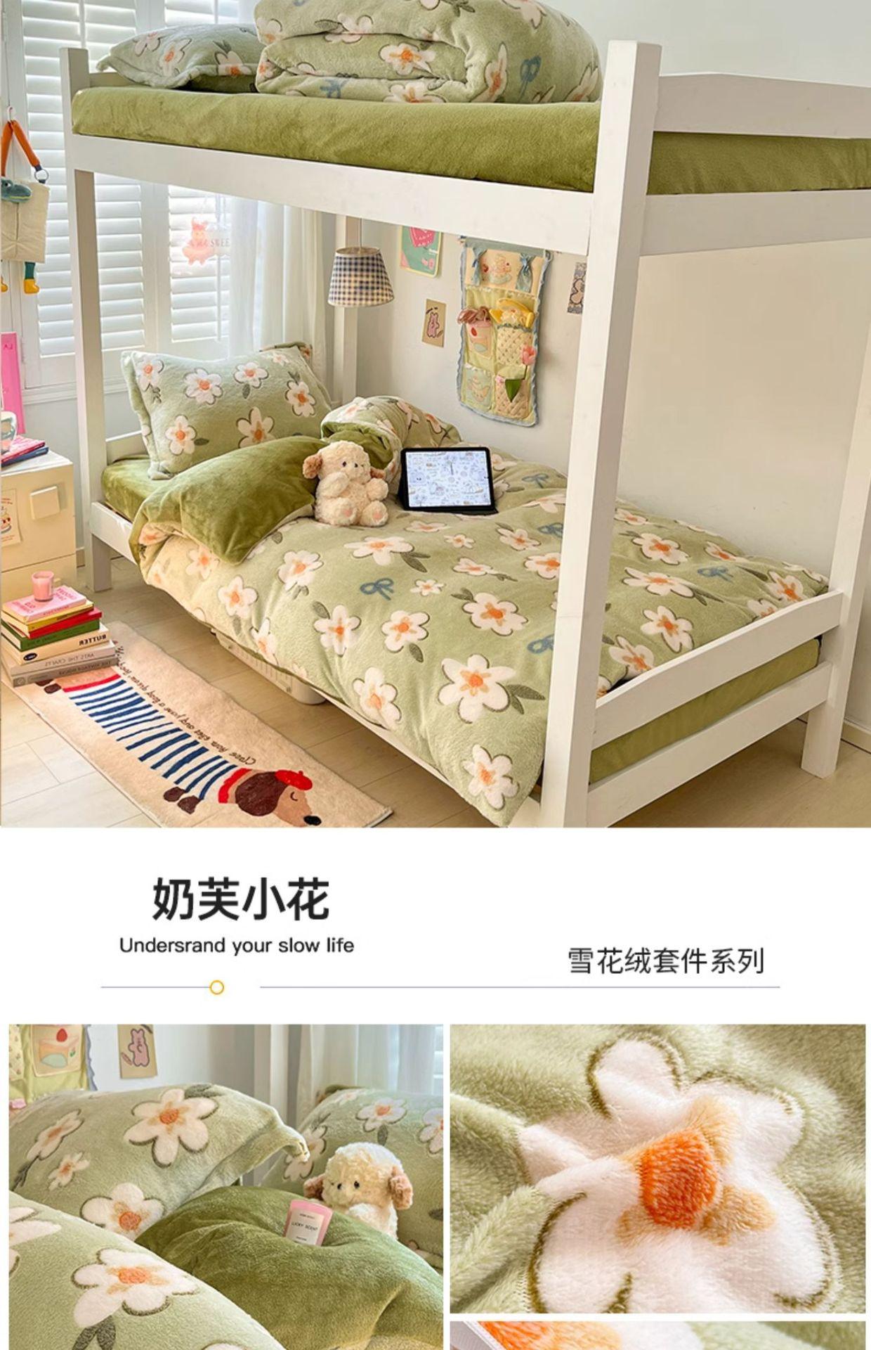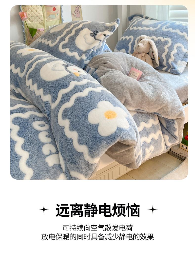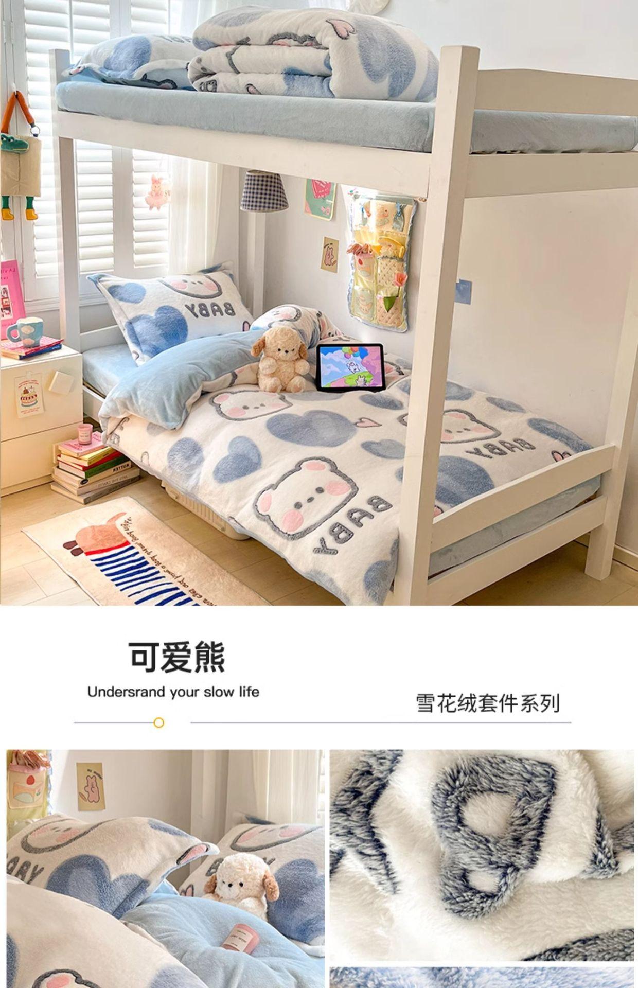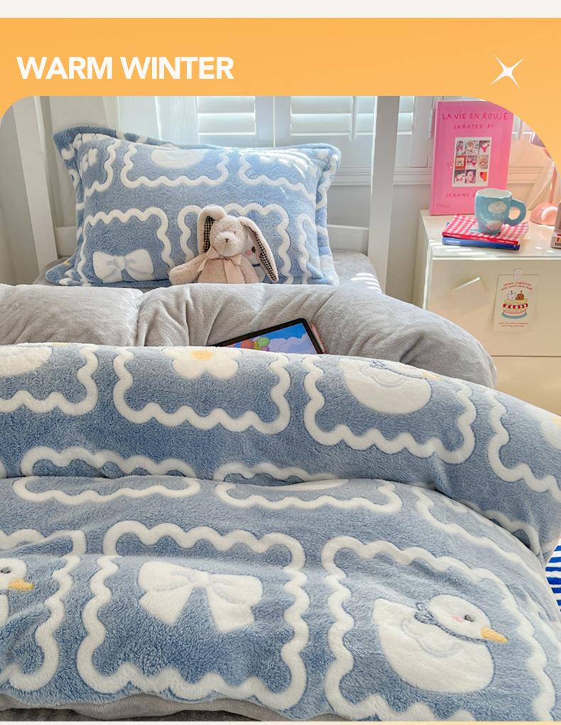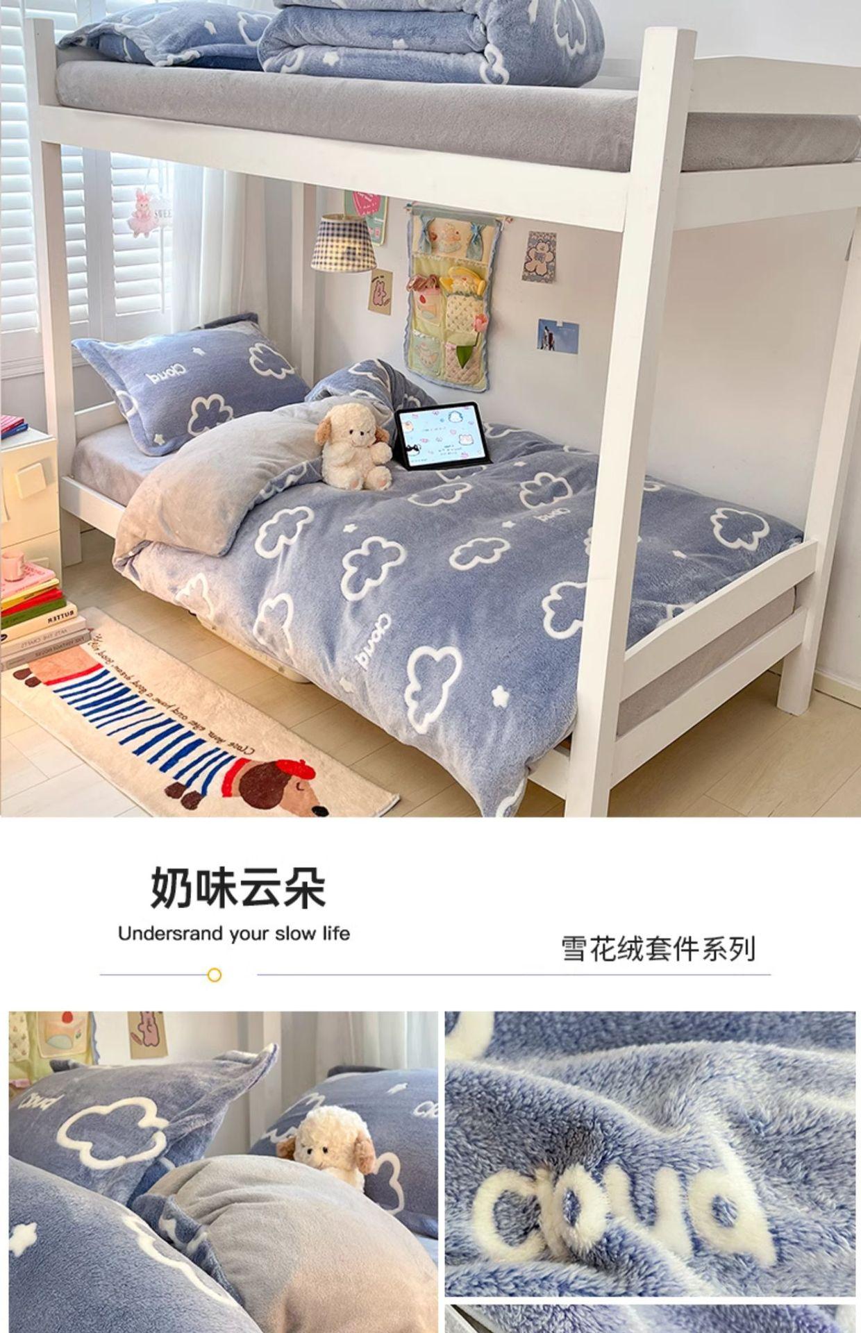 Juego de cama de tres piezas de terciopelo de leche para dormitorio de estudiantes de invierno, funda de edredón de franela coral de doble cara, sábana con forro polar, juego de cuatro piezas
