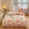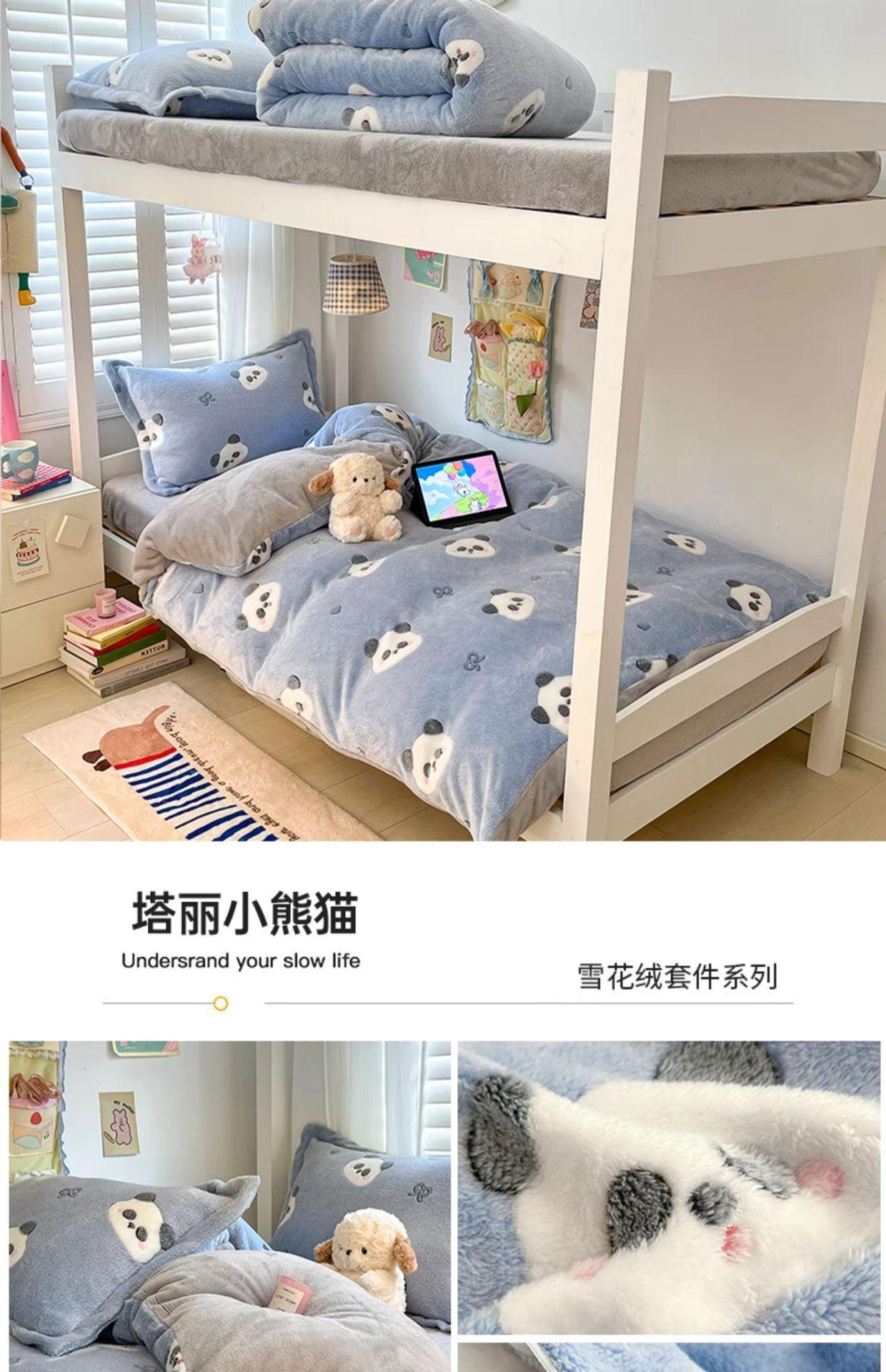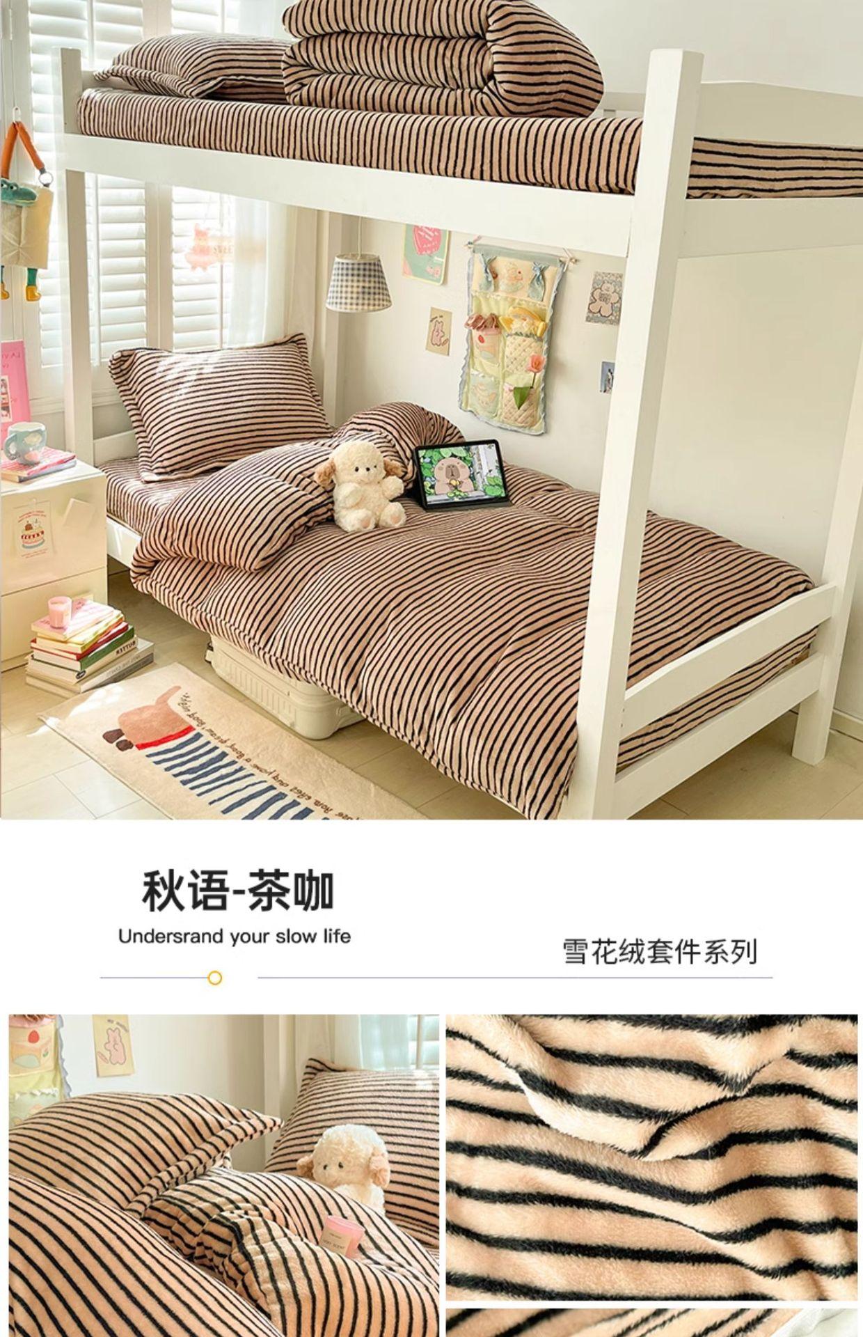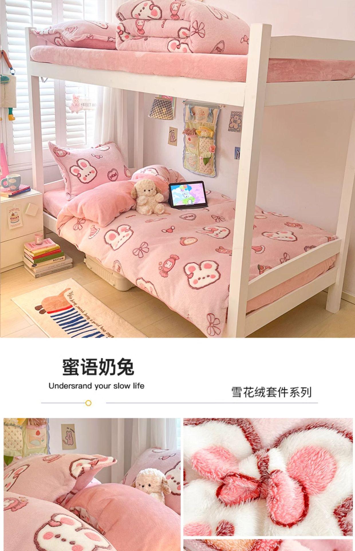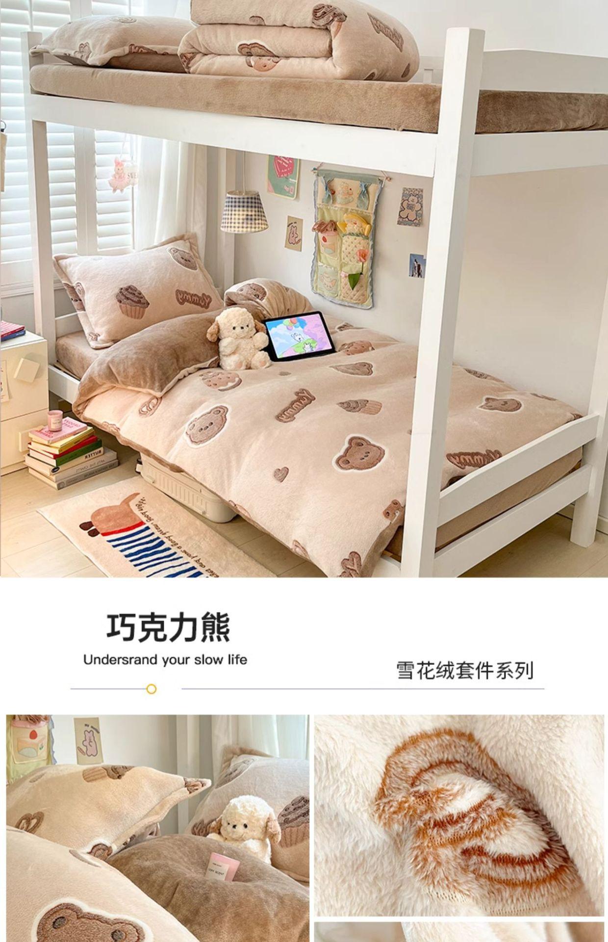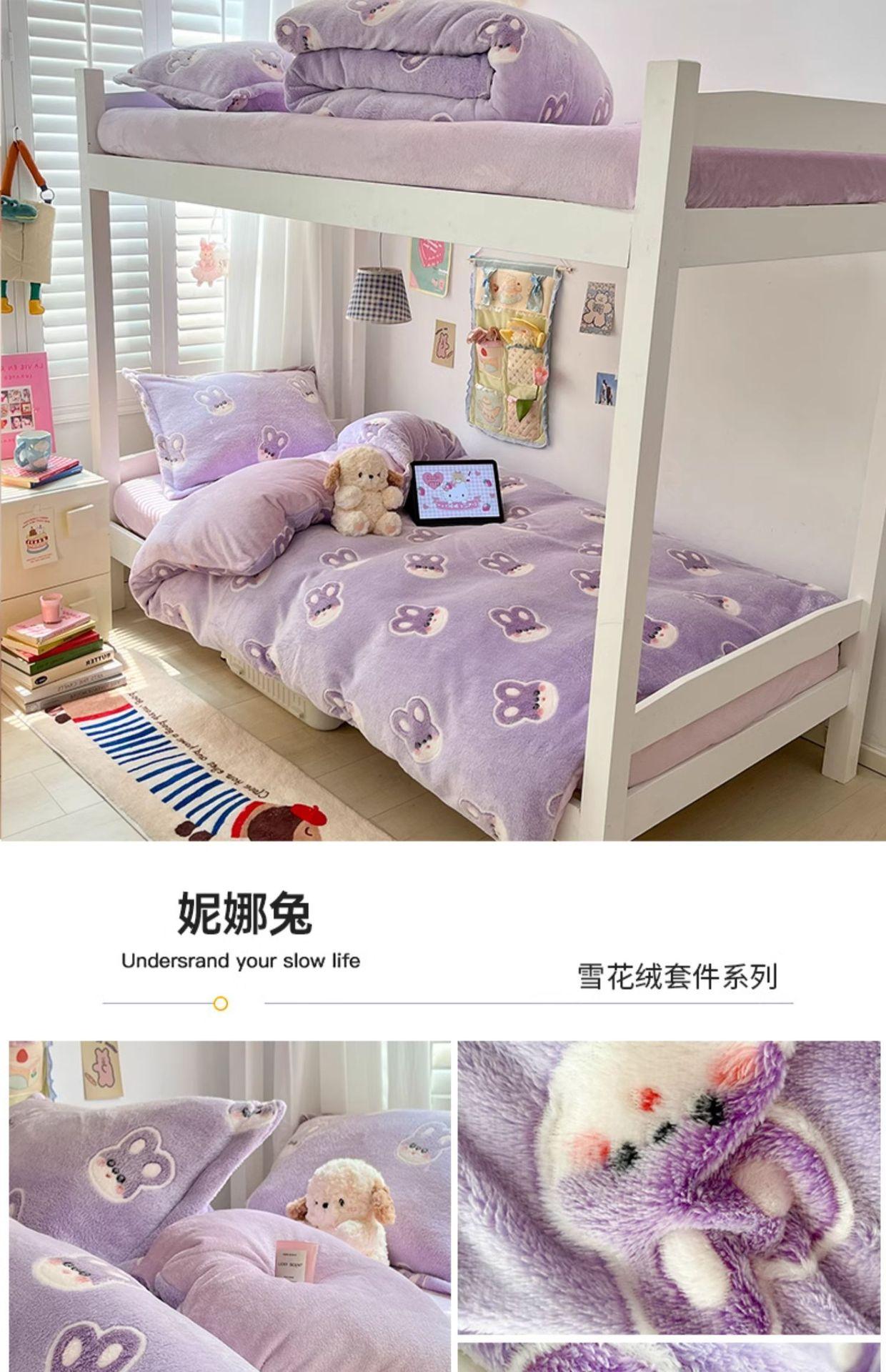 Juego de cama de tres piezas de terciopelo de leche para dormitorio de estudiantes de invierno, funda de edredón de franela coral de doble cara, sábana con forro polar, juego de cuatro piezas
