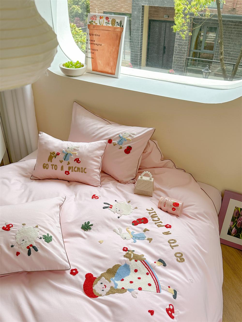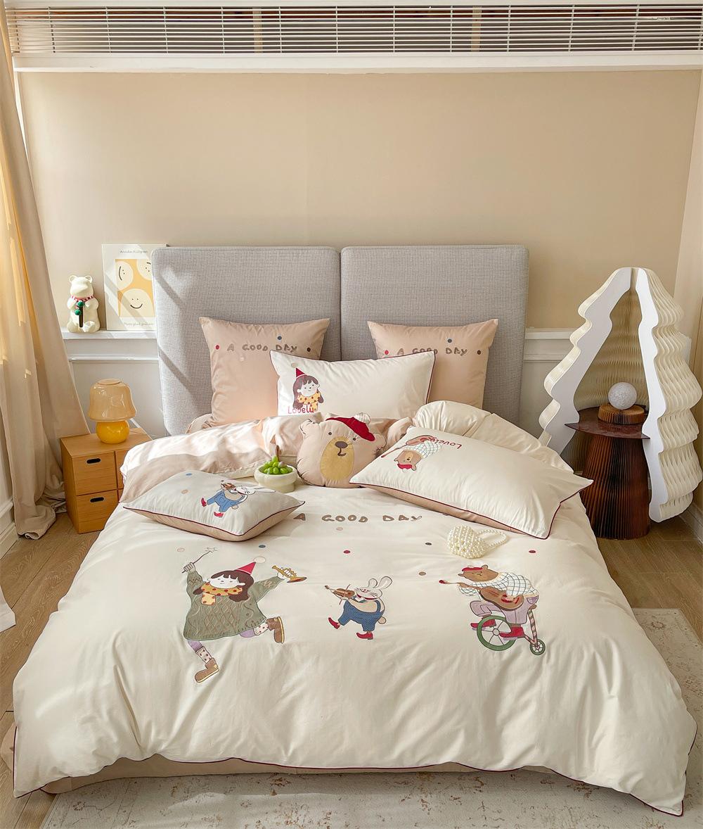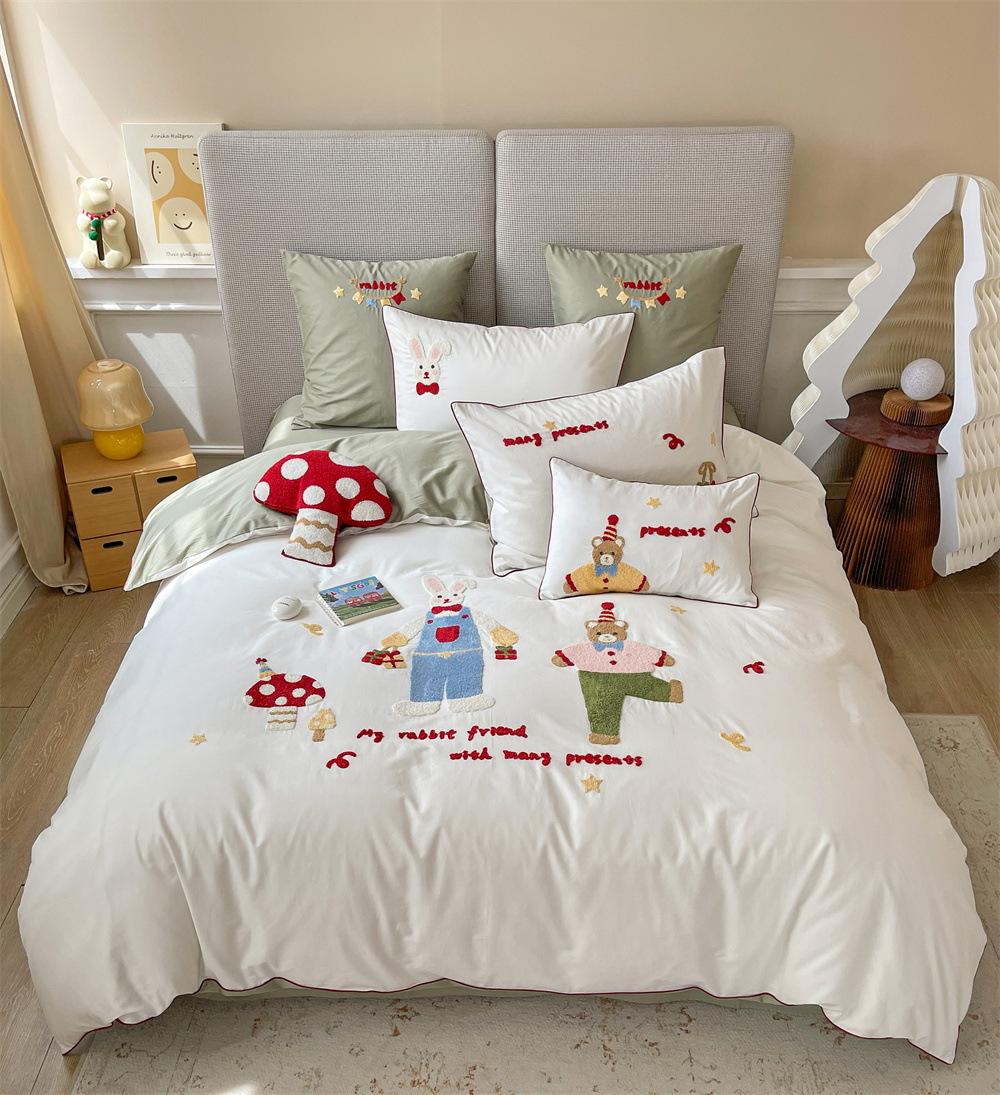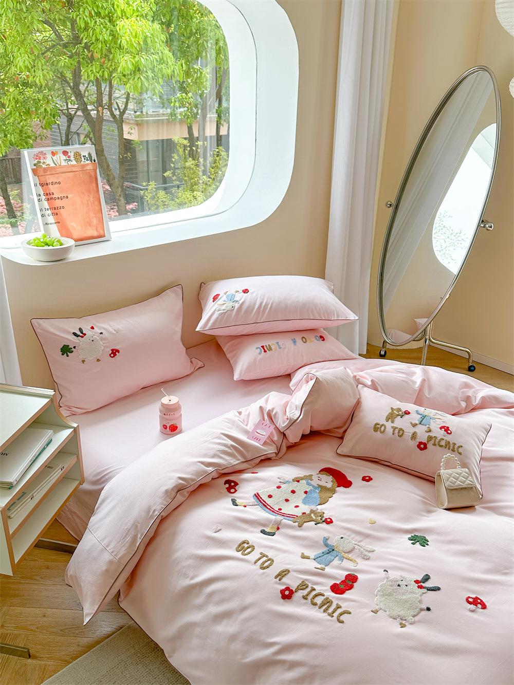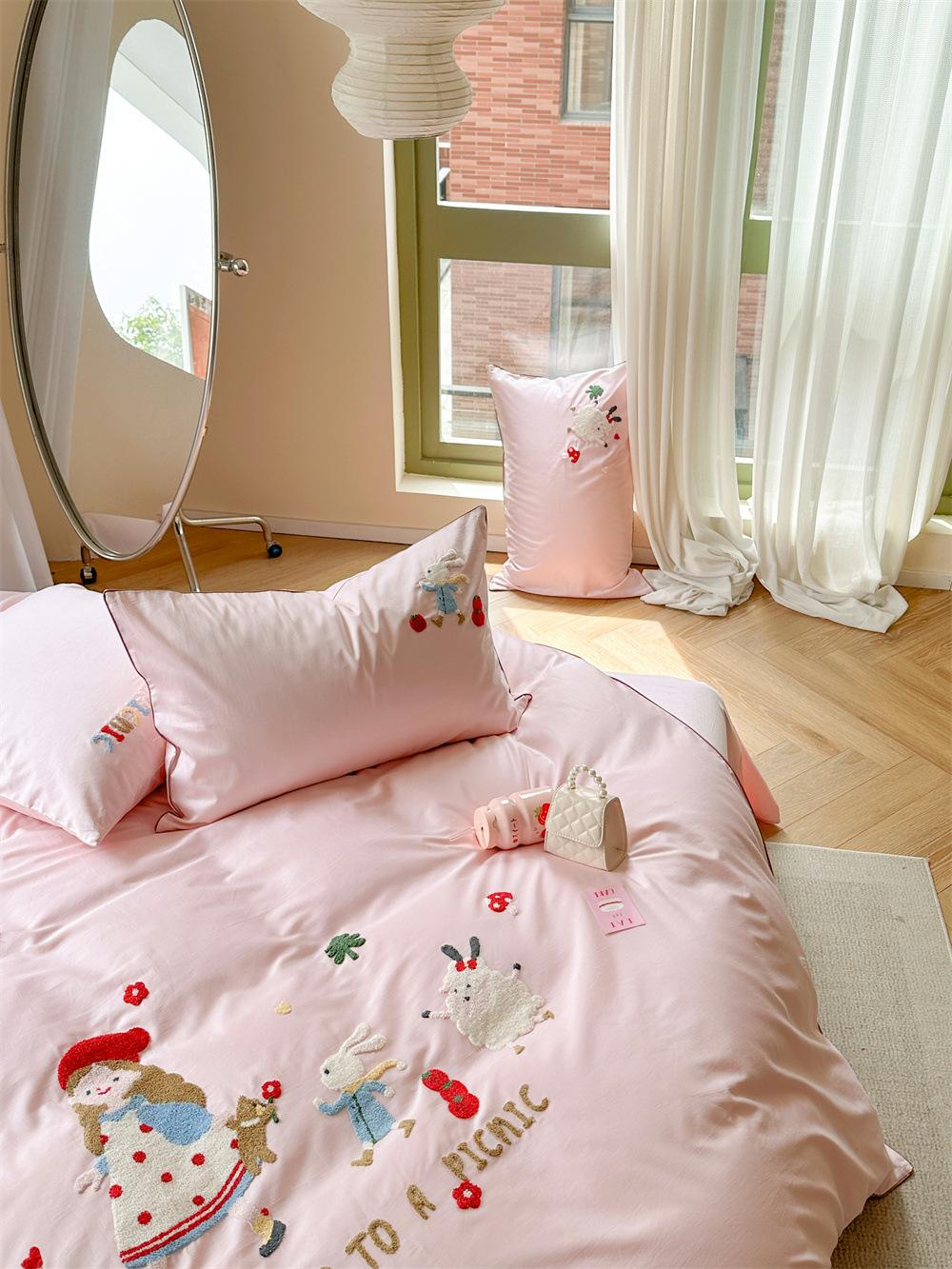 El algodón de fibra larga se utiliza a menudo para tejer hilo de alta densidad. El producto final es transpirable, suave, delicado, liso y con cierto brillo. Por lo tanto, la tela es más suave, delicada y lisa. Por lo tanto, no será demasiado gruesa y puede ser transmisora de luz. Se recomienda usar un núcleo de edredón blanco o liso del mismo color.
