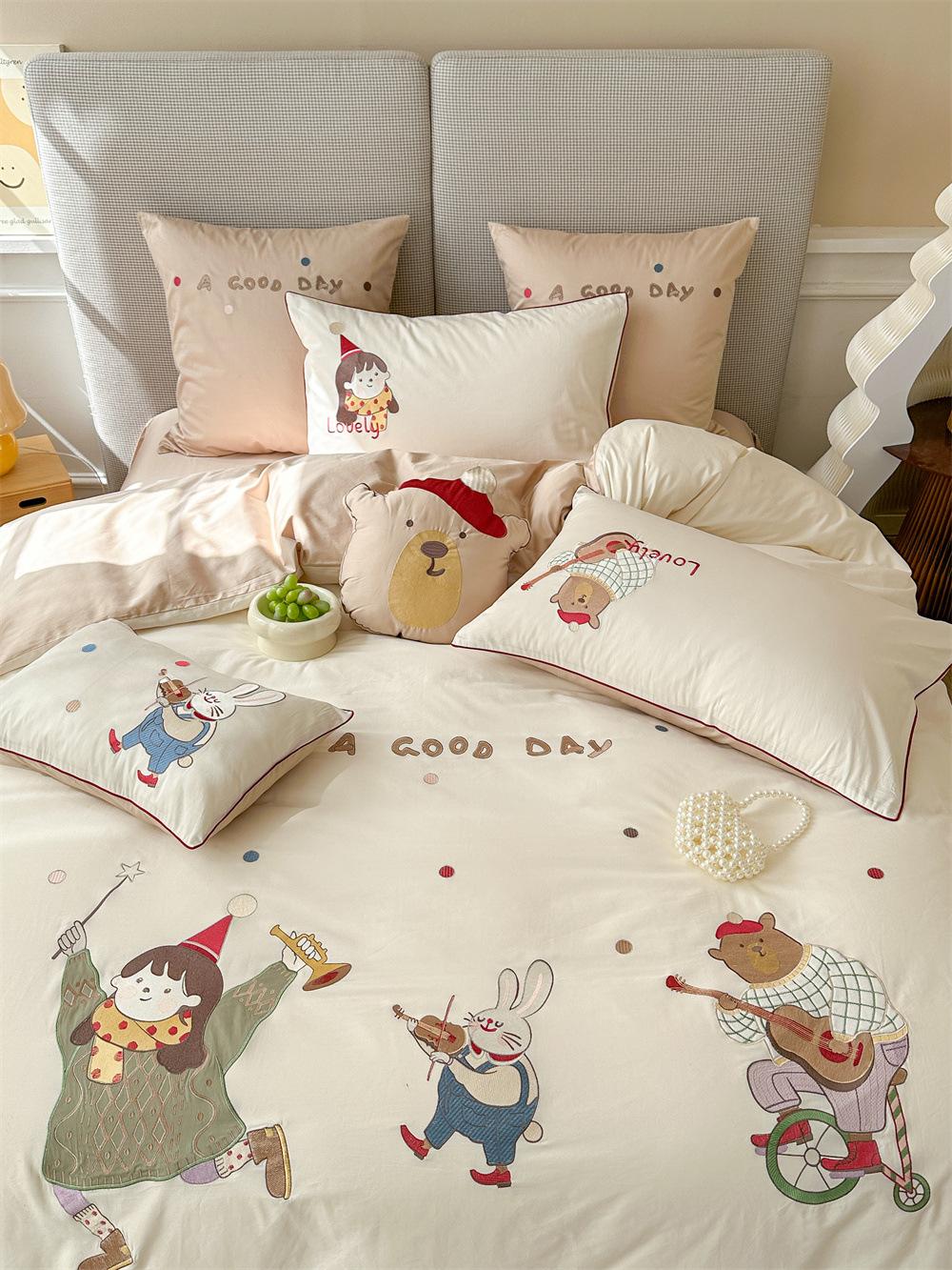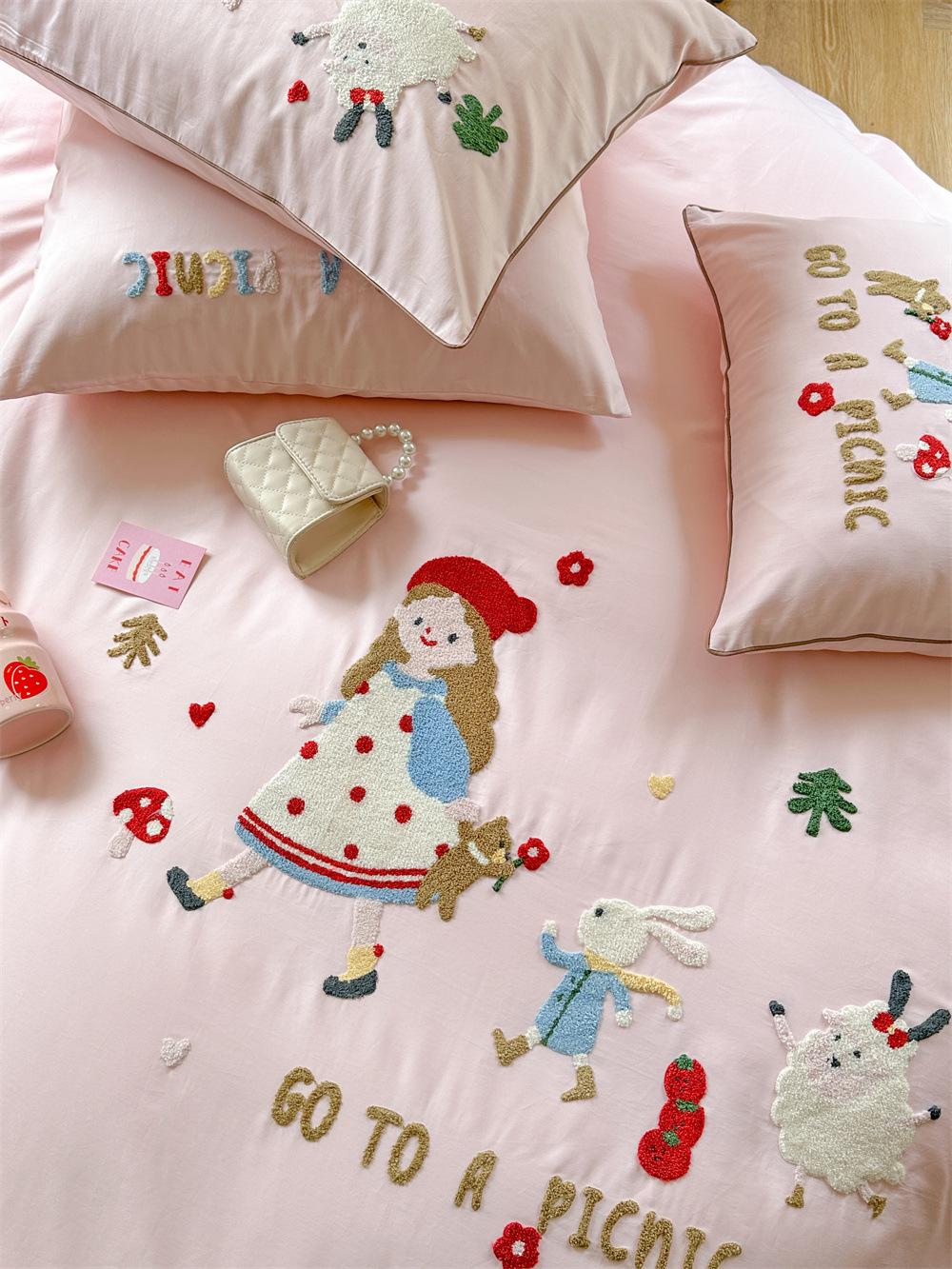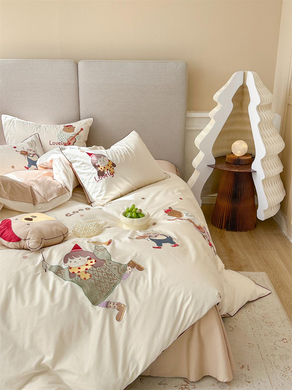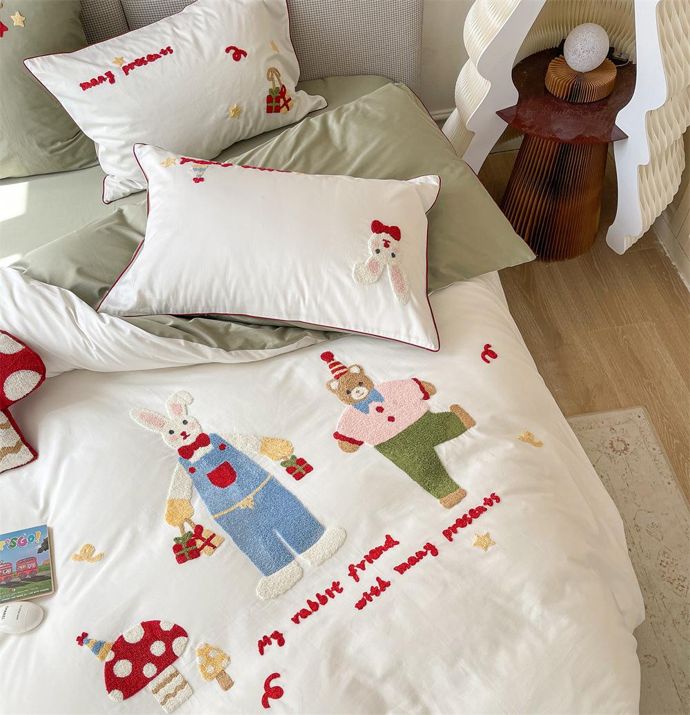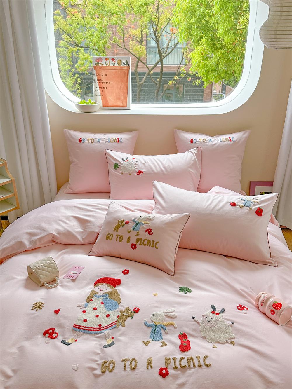 El algodón de fibra larga se utiliza a menudo para tejer hilo de alta densidad. El producto final es transpirable, suave, delicado, liso y con cierto brillo. Por lo tanto, la tela es más suave, delicada y lisa. Por lo tanto, no será demasiado gruesa y puede ser transmisora de luz. Se recomienda usar un núcleo de edredón blanco o liso del mismo color.