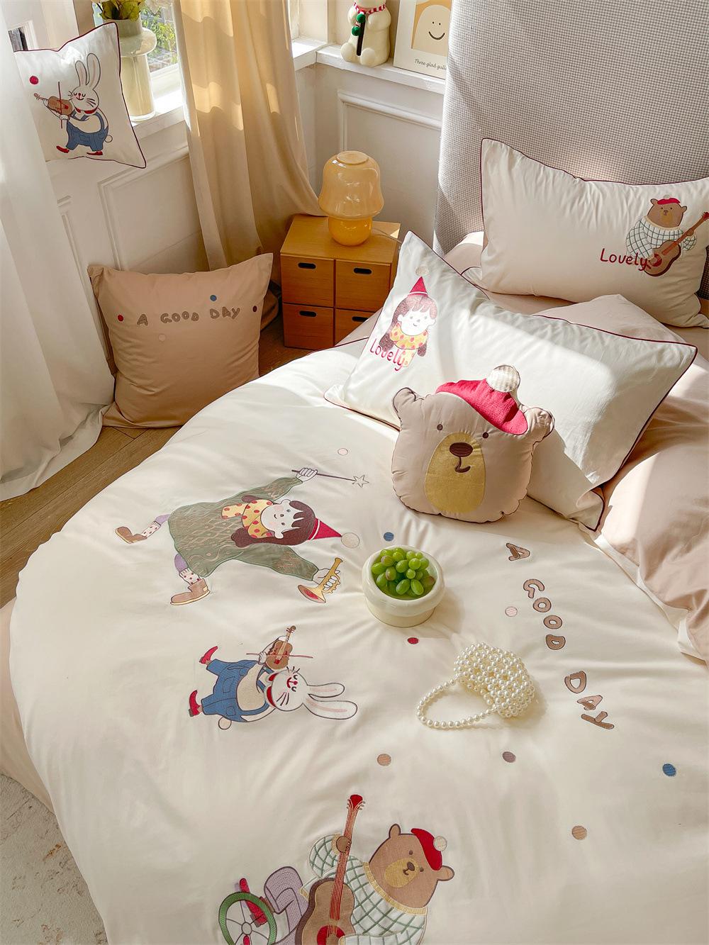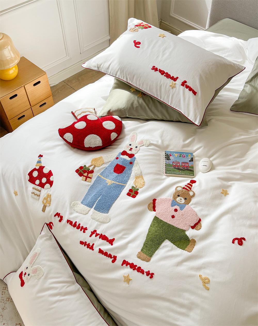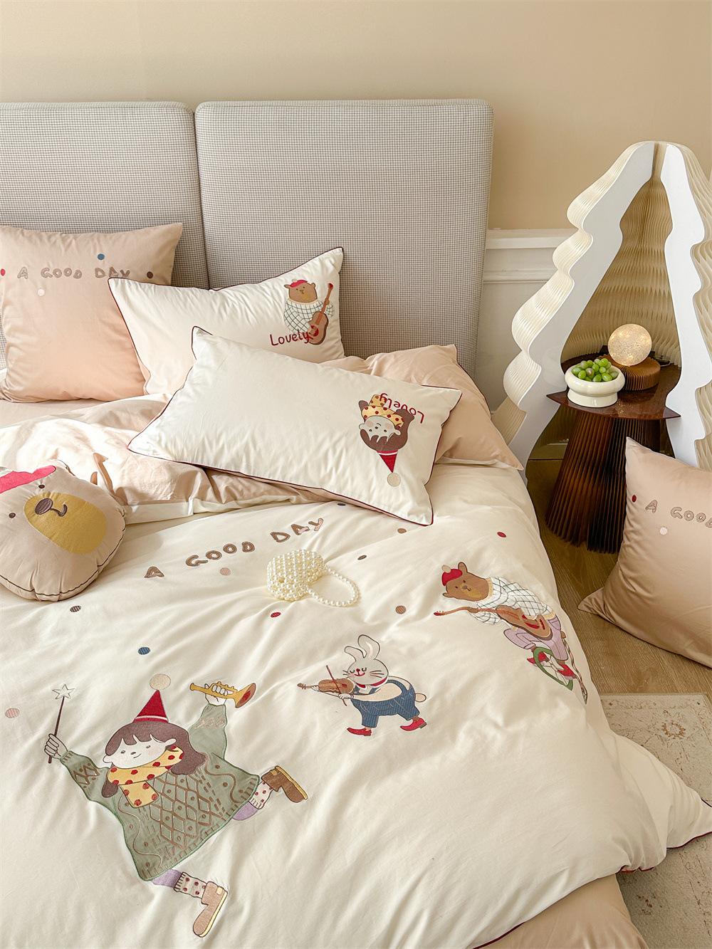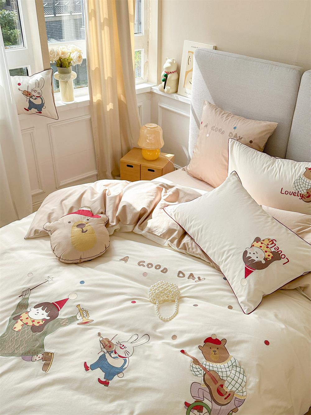 El algodón de fibra larga se utiliza a menudo para tejer hilo de alta densidad. El producto final es transpirable, suave, delicado, liso y con cierto brillo. Por lo tanto, la tela es más suave, delicada y lisa. Por lo tanto, no será demasiado gruesa y puede ser transmisora de luz. Se recomienda usar un núcleo de edredón blanco o liso del mismo color.