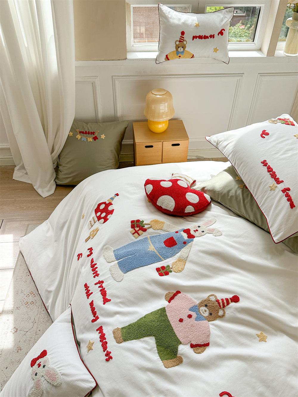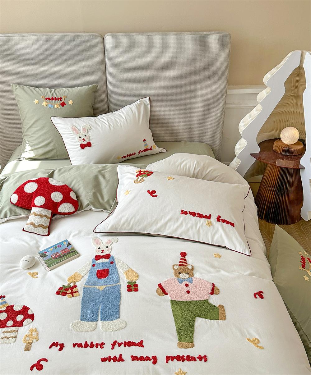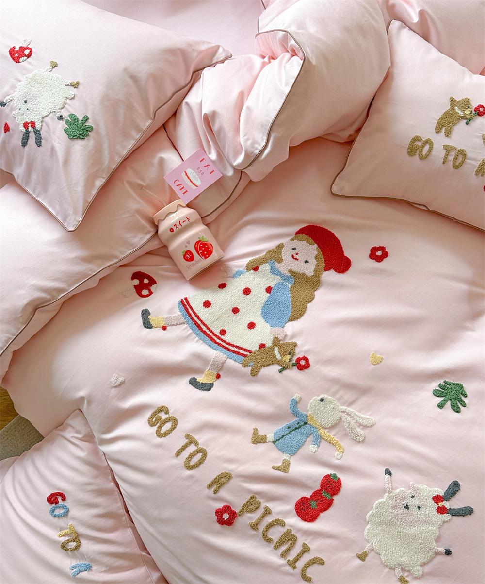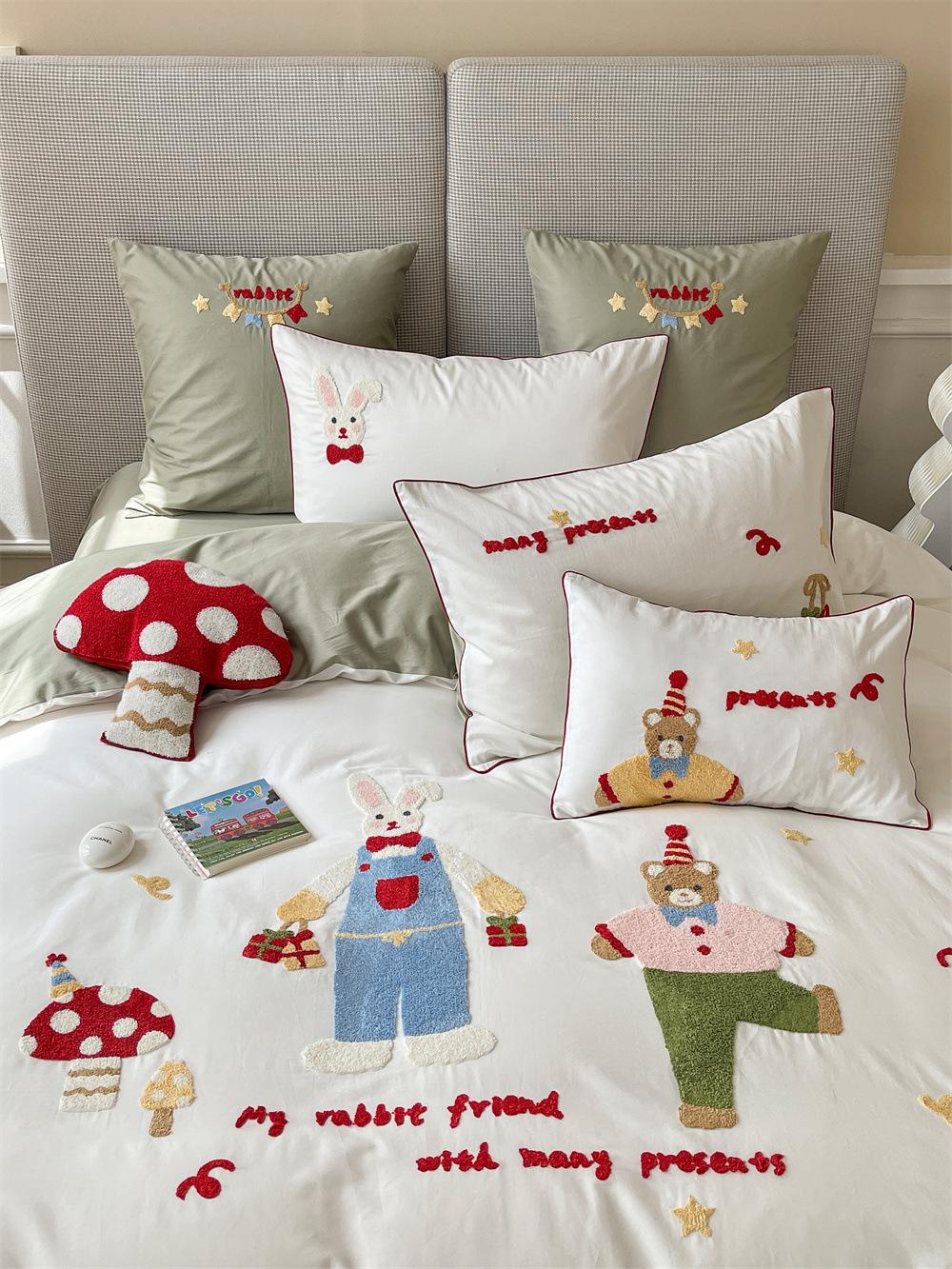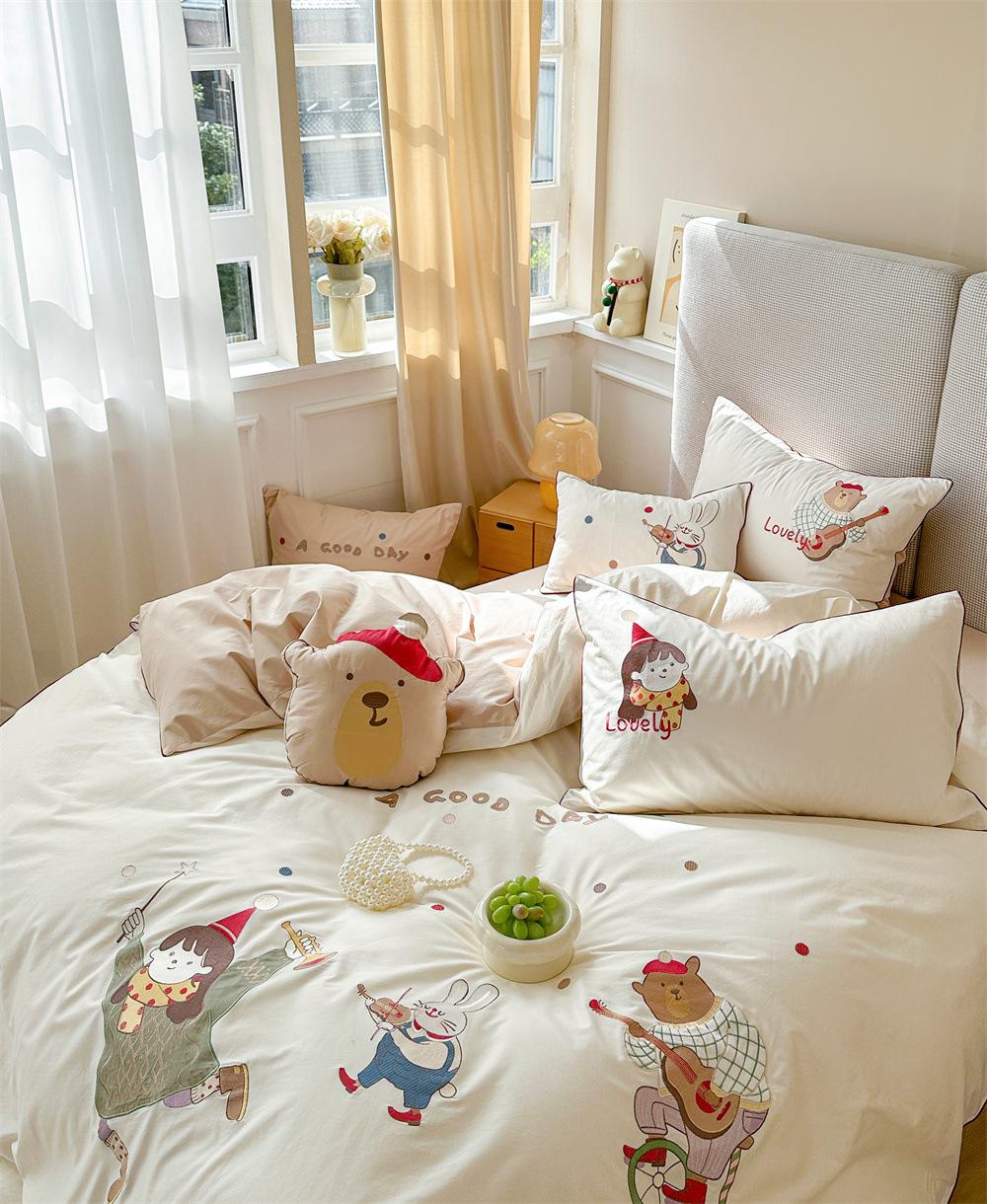 El algodón de fibra larga se utiliza a menudo para tejer hilo de alta densidad. El producto final es transpirable, suave, delicado, liso y con cierto brillo. Por lo tanto, la tela es más suave, delicada y lisa. Por lo tanto, no será demasiado gruesa y puede ser transmisora de luz. Se recomienda usar un núcleo de edredón blanco o liso del mismo color.