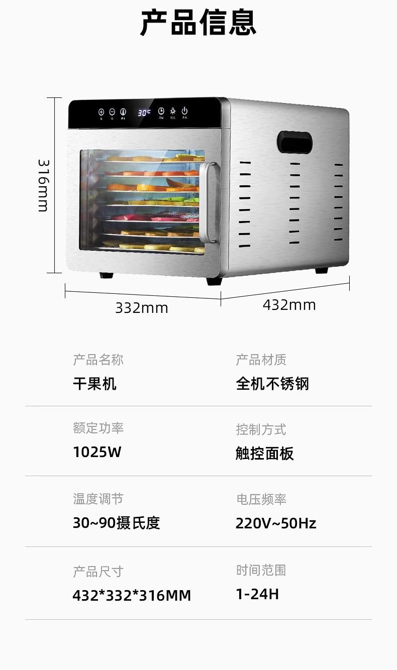 Deshidratador de Frutas Estándar Británico Exportación 110V-240V Deshidratador de Alimentos Doméstico Snacks para Mascotas Fruta Deshidratador de Aire 8 Niveles