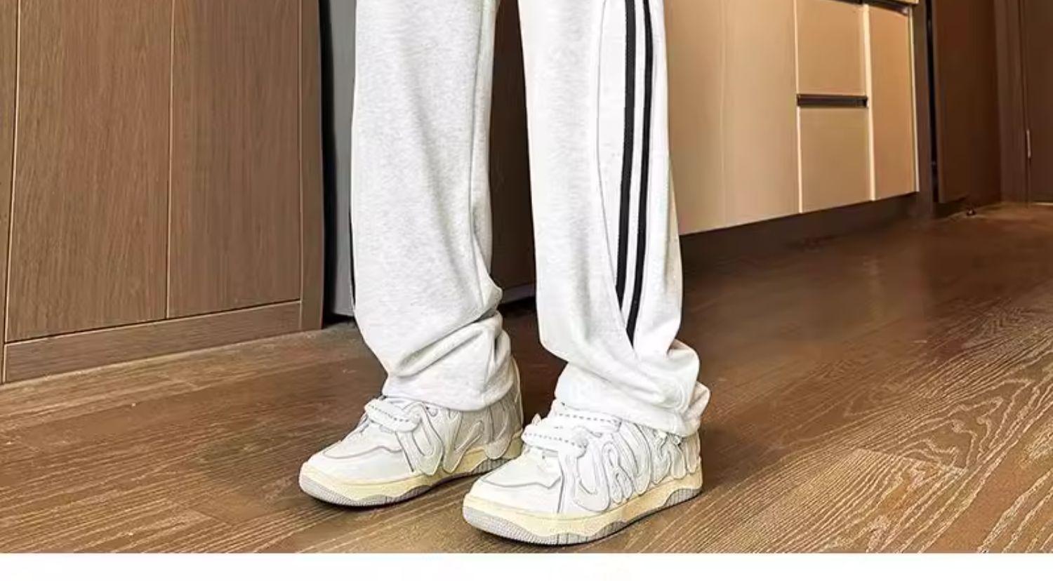 Pantalones deportivos Three Bars Two-Wear para mujer, primavera 2024, nuevos, de cintura alta, adelgazantes, de marca moderna, combinables, informales, con cordón.