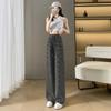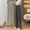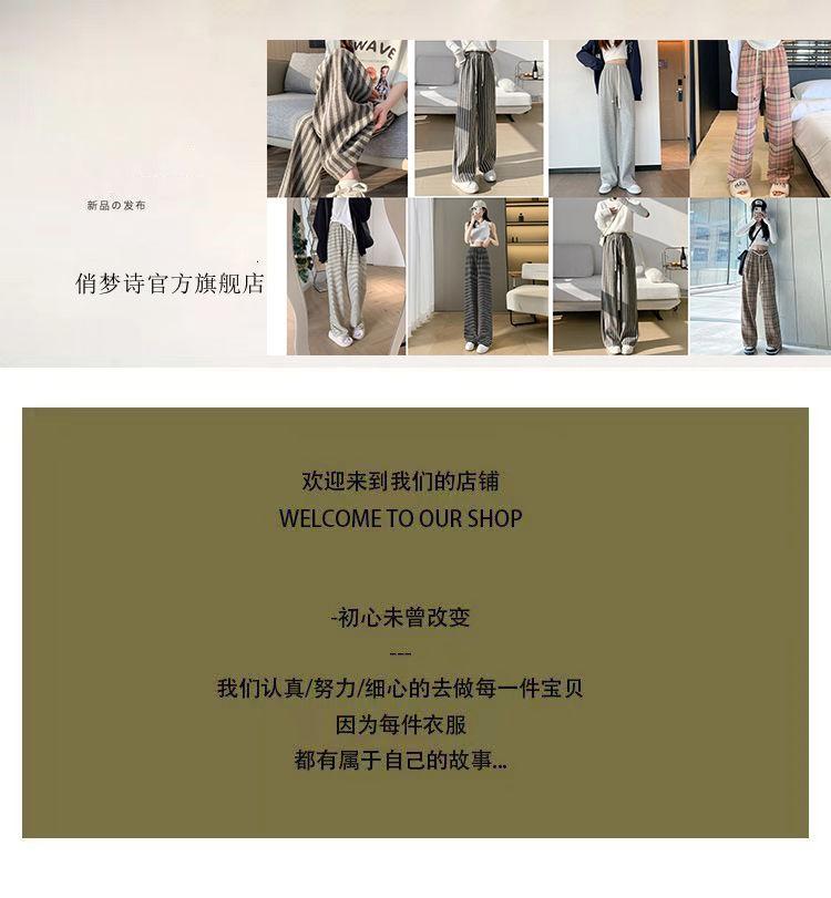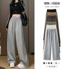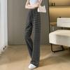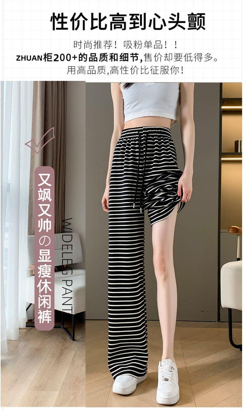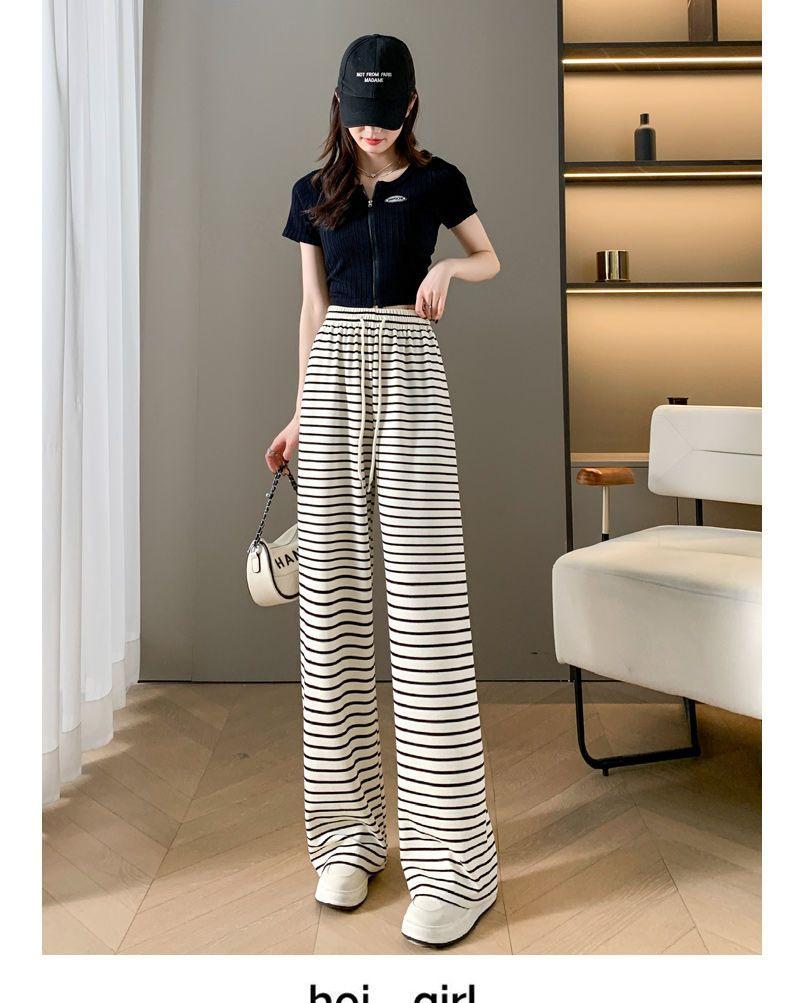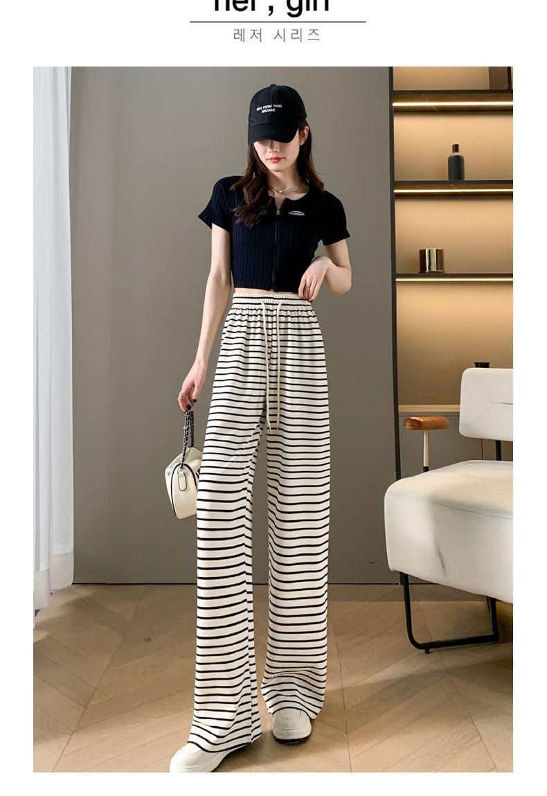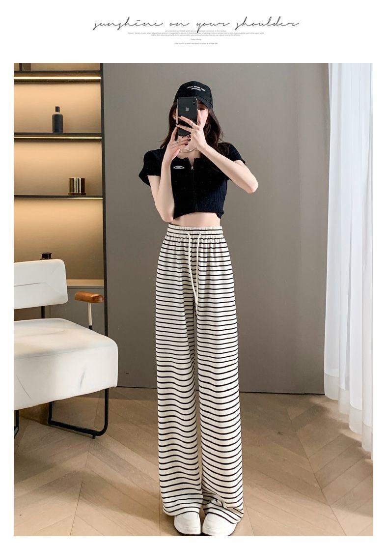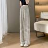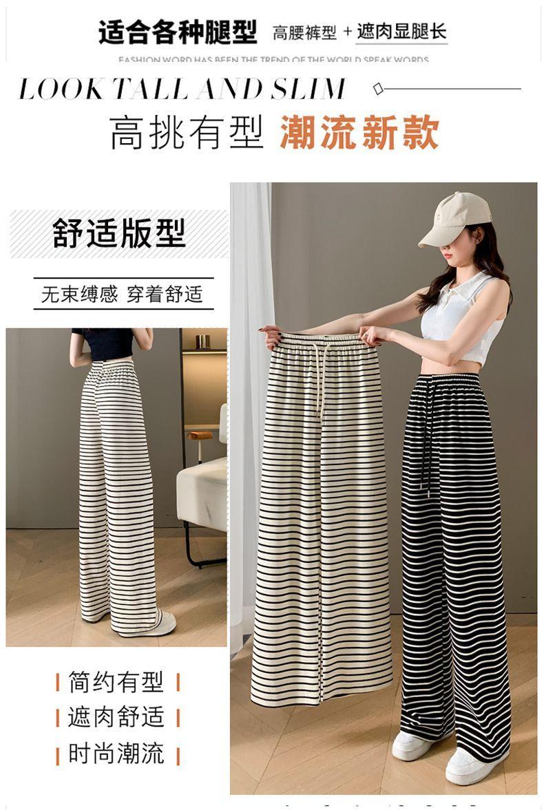 Pantalones de Pierna Ancha a Rayas Bordados para Primavera y Otoño para Mujer, Cintura Floja, Cintura Alta con Cordón Ajustable, Pantalones Deportivos Casuales, Pantalones Largos Holgados