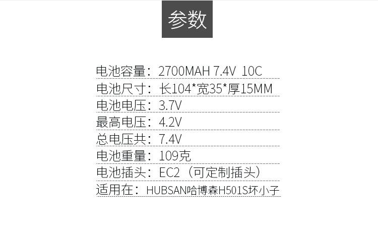 Parámetros de la batería: 2S-7,4 V 2700 mAh 10 C