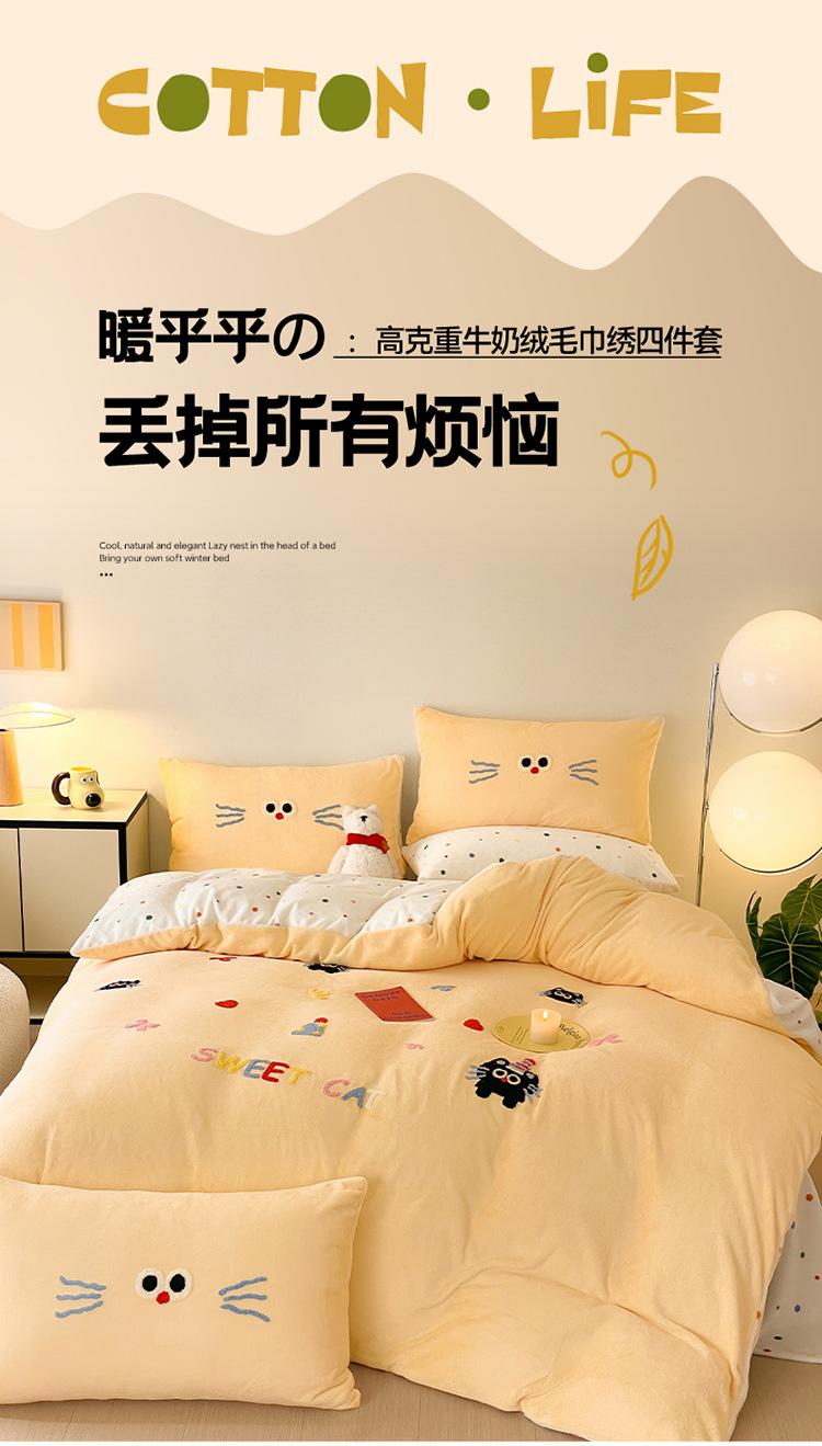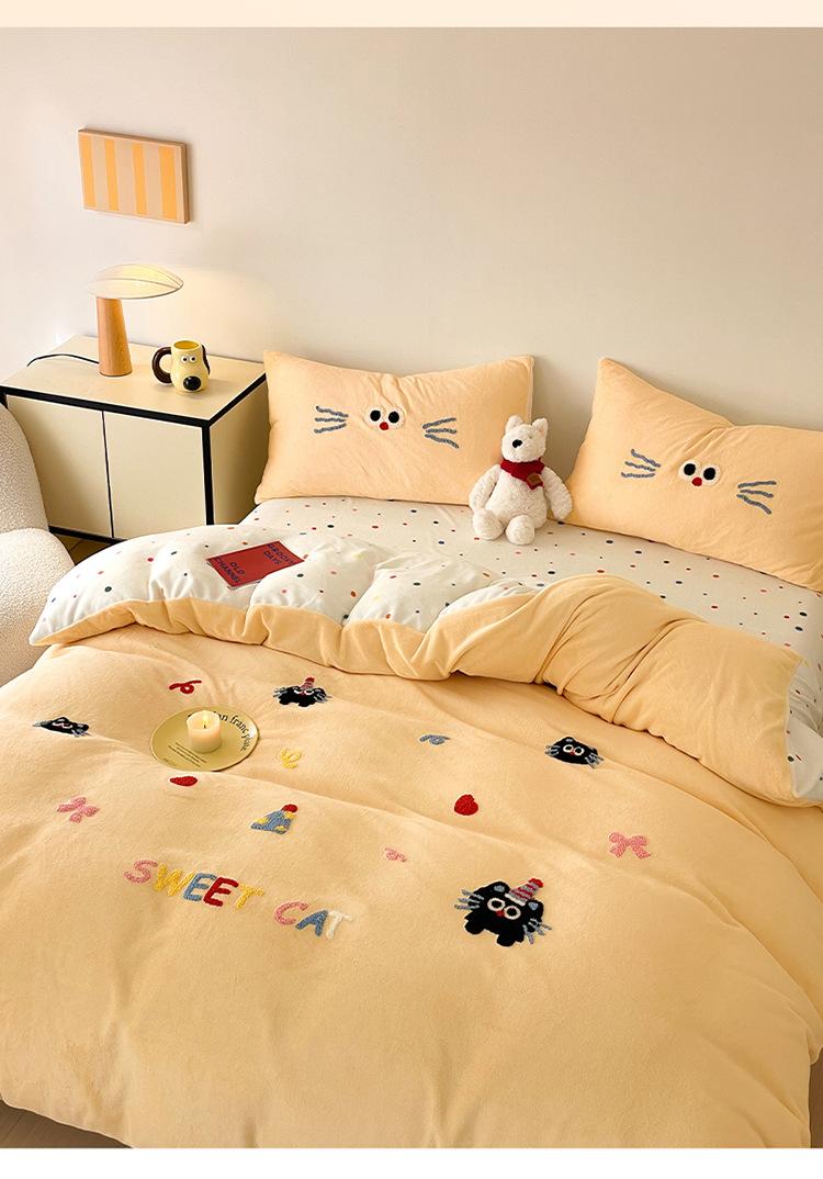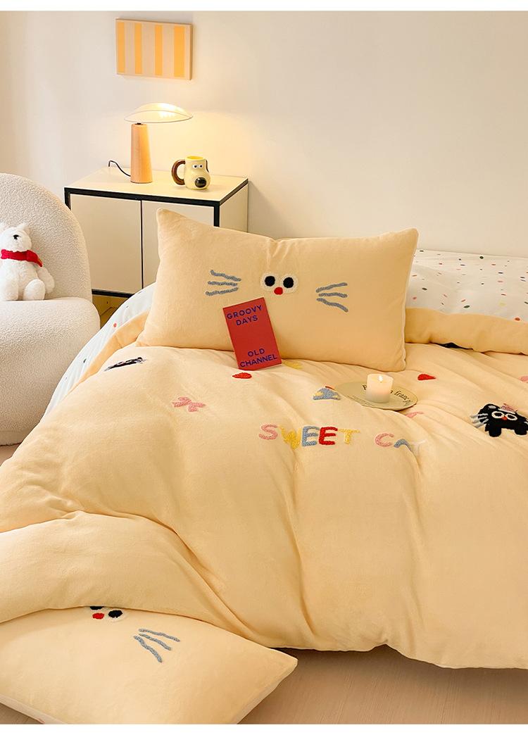 Otoño e invierno grueso terciopelo de leche cama de cuatro piezas funda nórdica de terciopelo coral franela de doble cara forrada de vellón juego de tres piezas