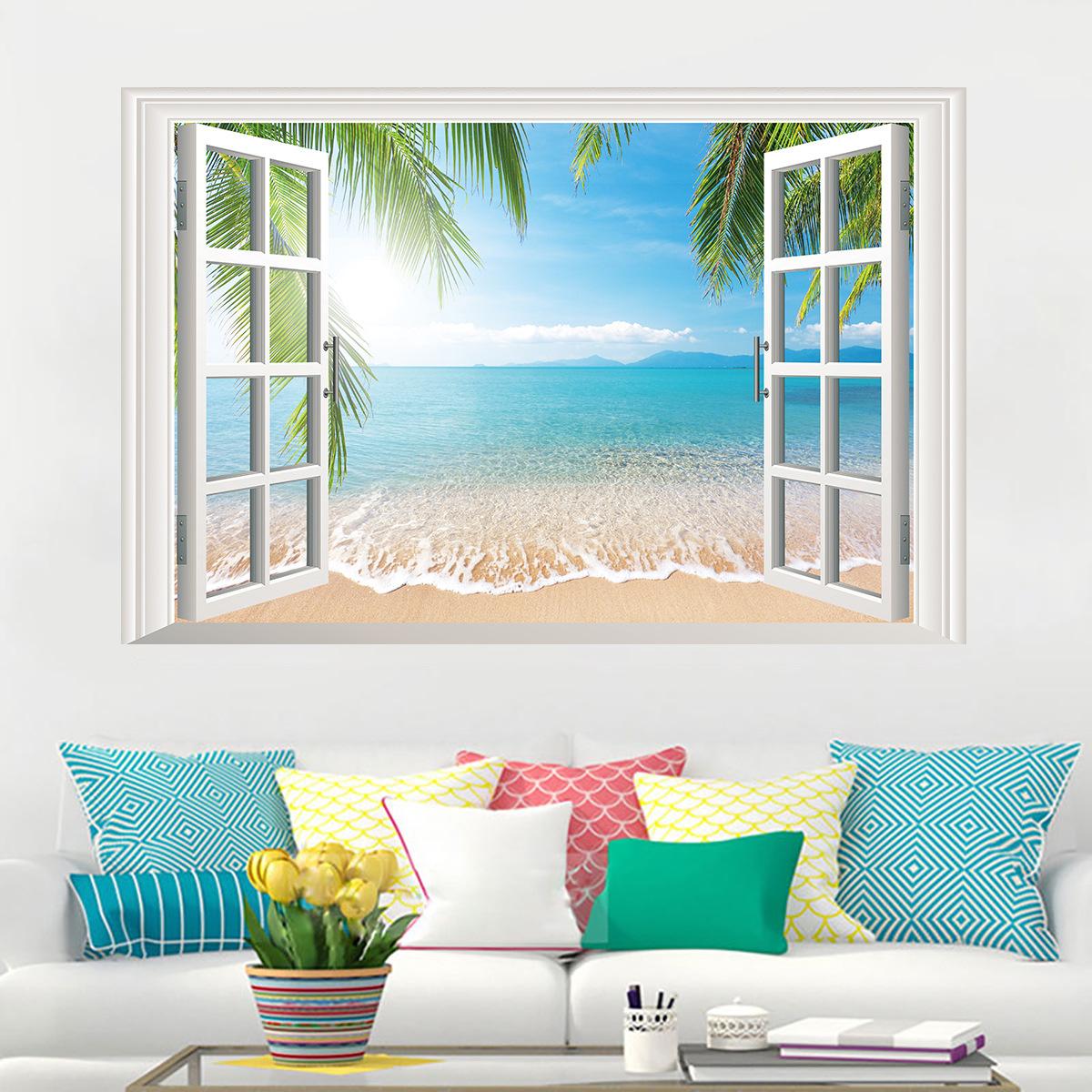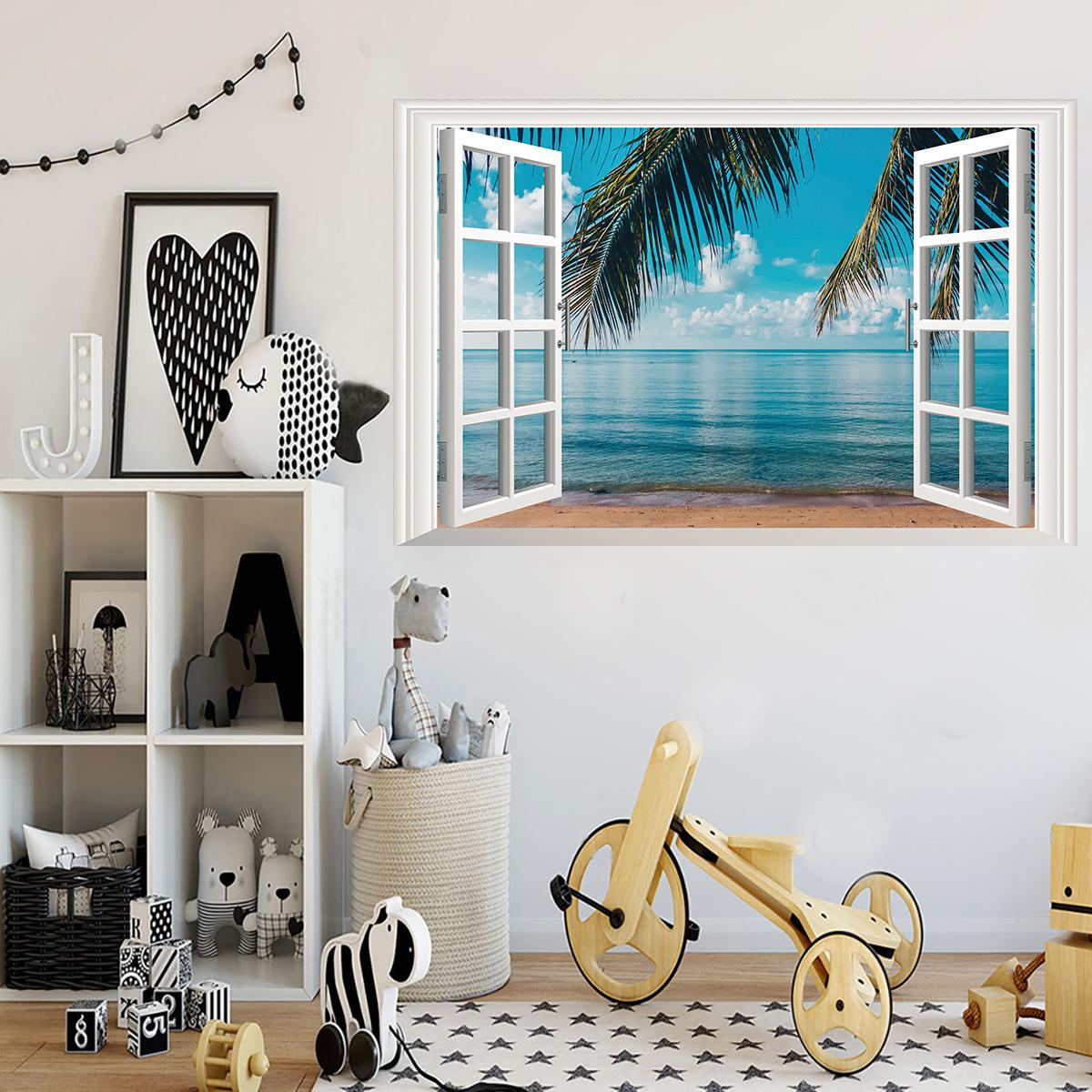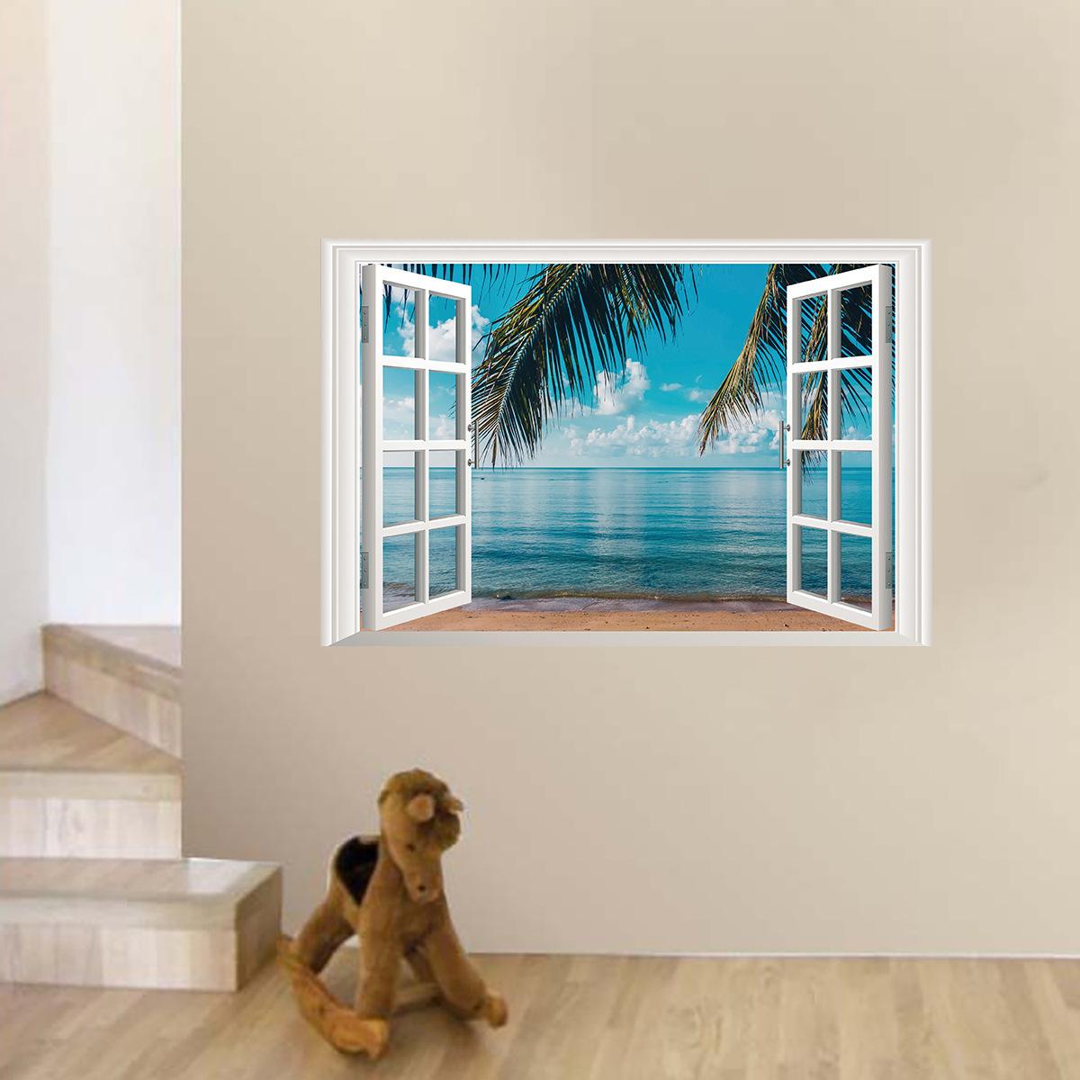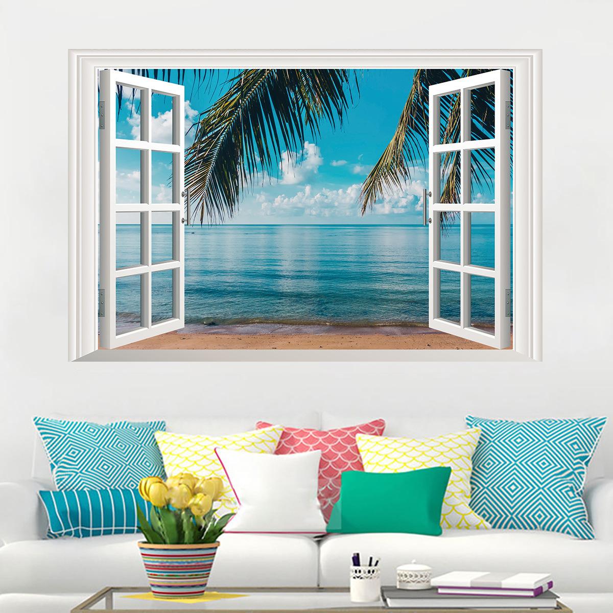 Calcomanías de Pared Calientes Transfronterizas TIMU Calientes Playa Árbol de Coco Nuevo Autoadhesivo 3D Ventana Falsa Dormitorio Restaurante Pegatina Decorativa