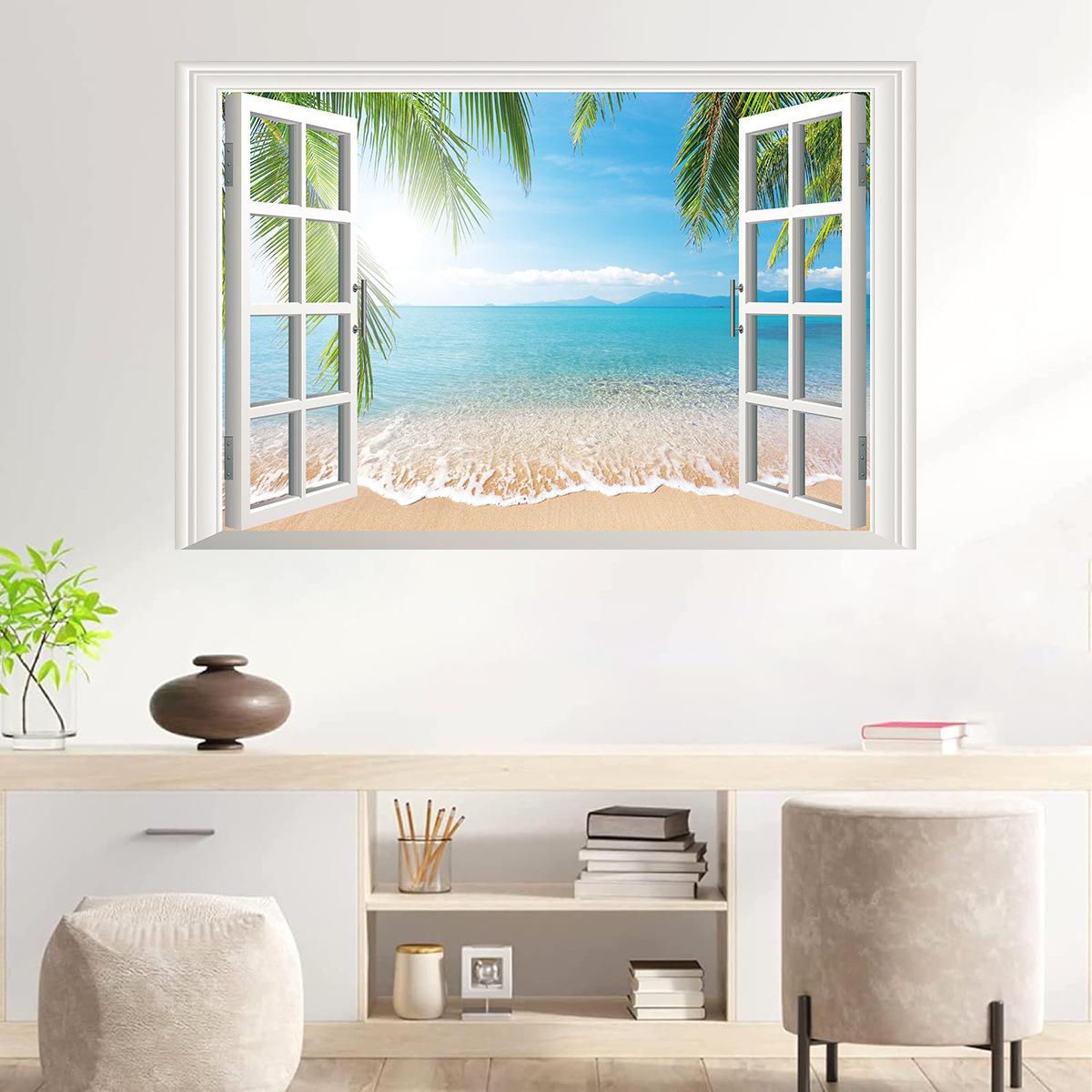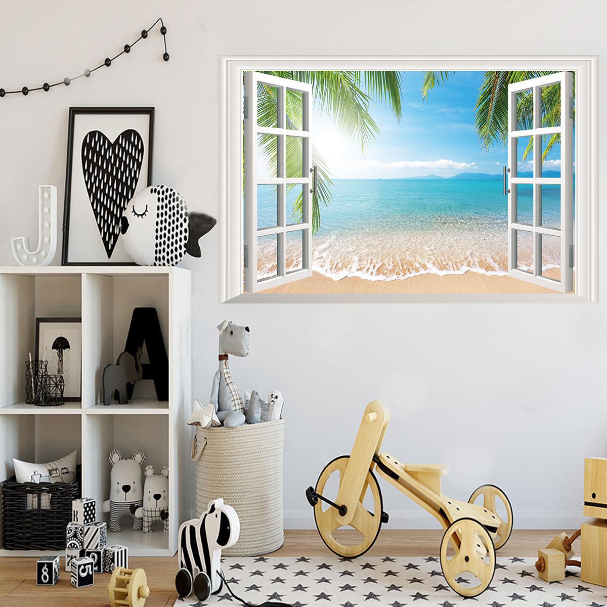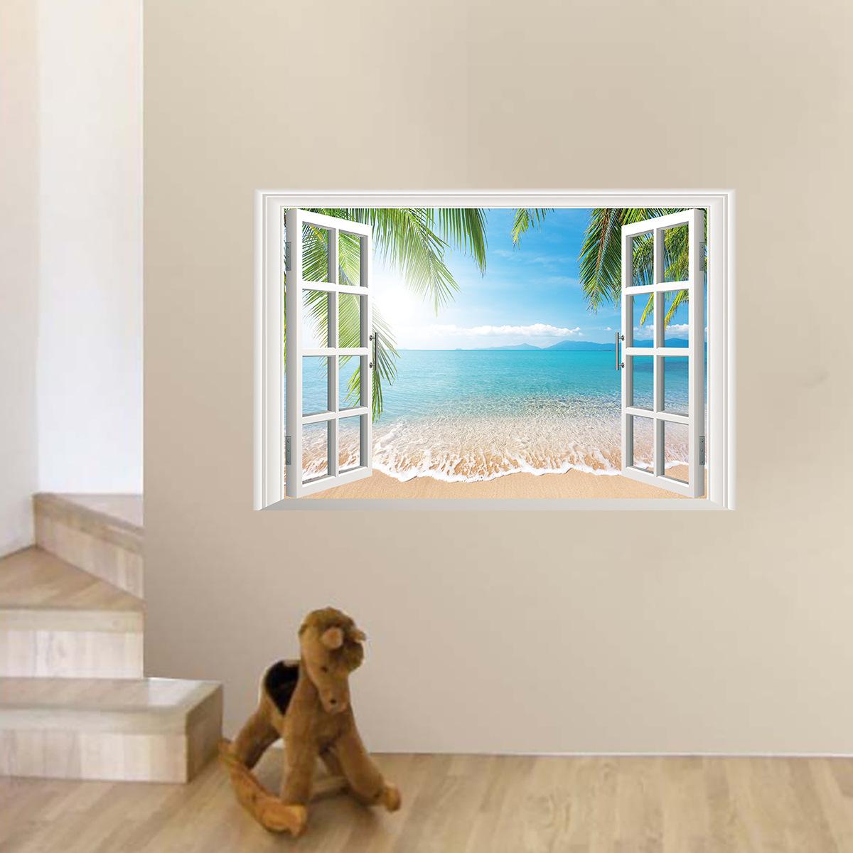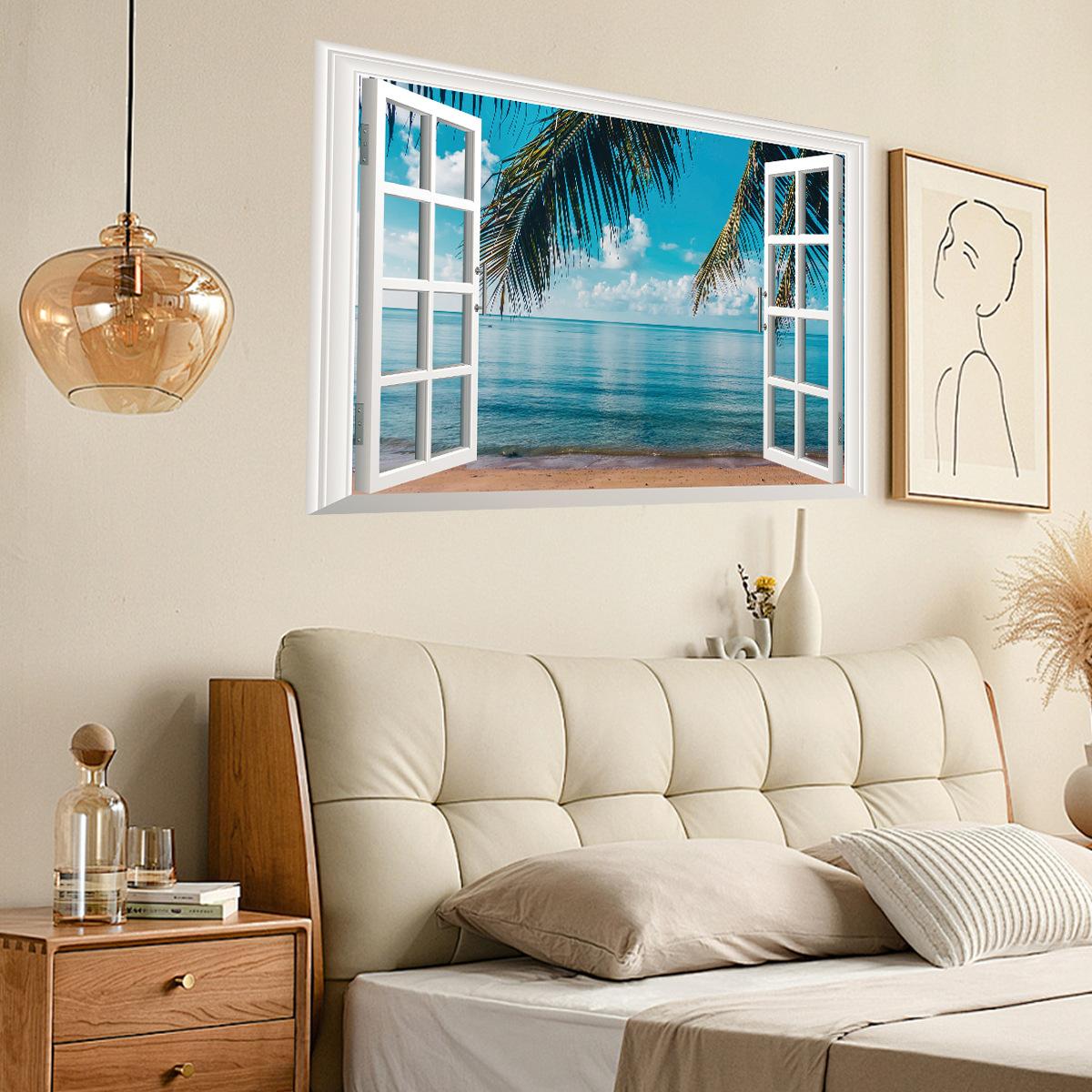 Calcomanías de Pared Calientes Transfronterizas TIMU Calientes Playa Árbol de Coco Nuevo Autoadhesivo 3D Ventana Falsa Dormitorio Restaurante Pegatina Decorativa