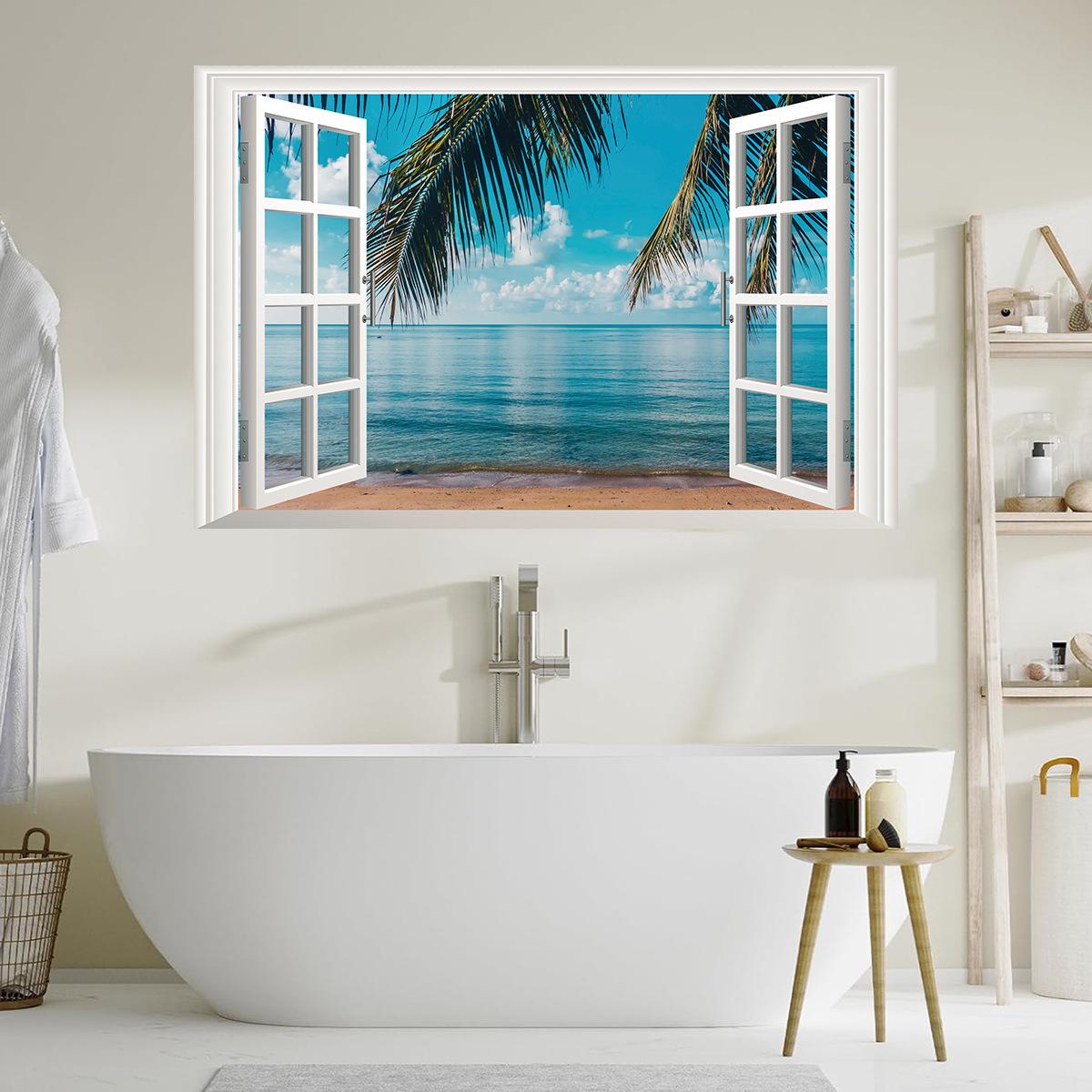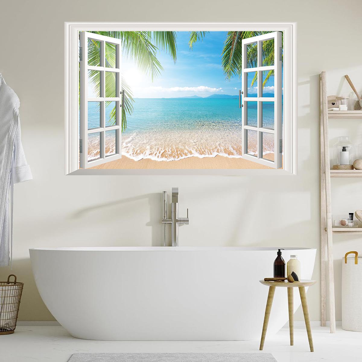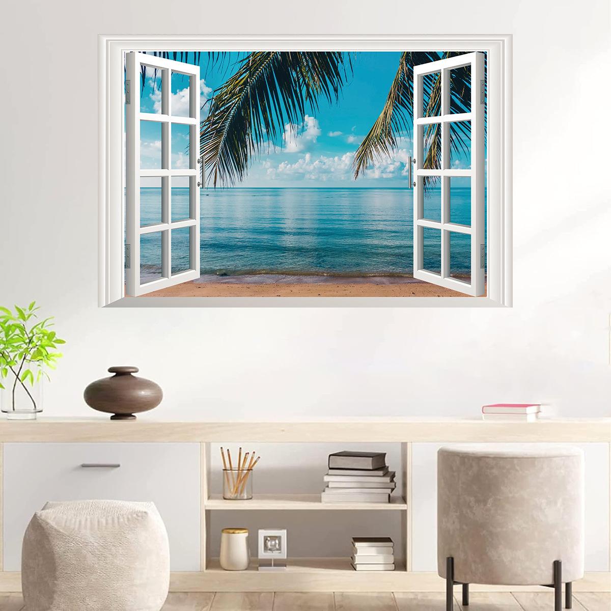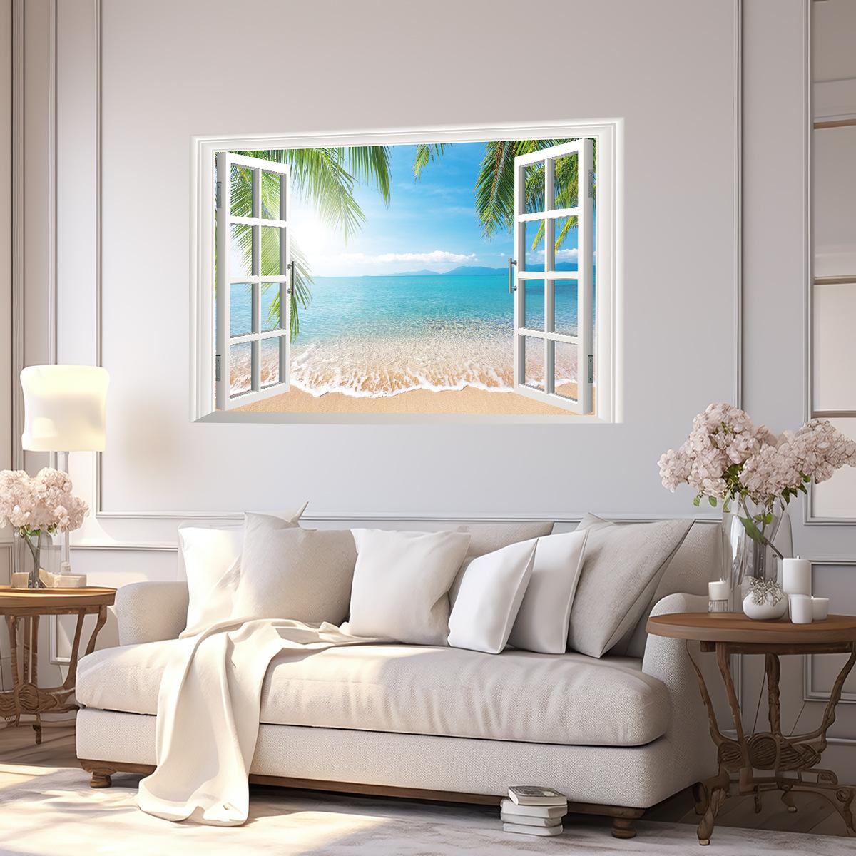 Calcomanías de Pared Calientes Transfronterizas TIMU Calientes Playa Árbol de Coco Nuevo Autoadhesivo 3D Ventana Falsa Dormitorio Restaurante Pegatina Decorativa