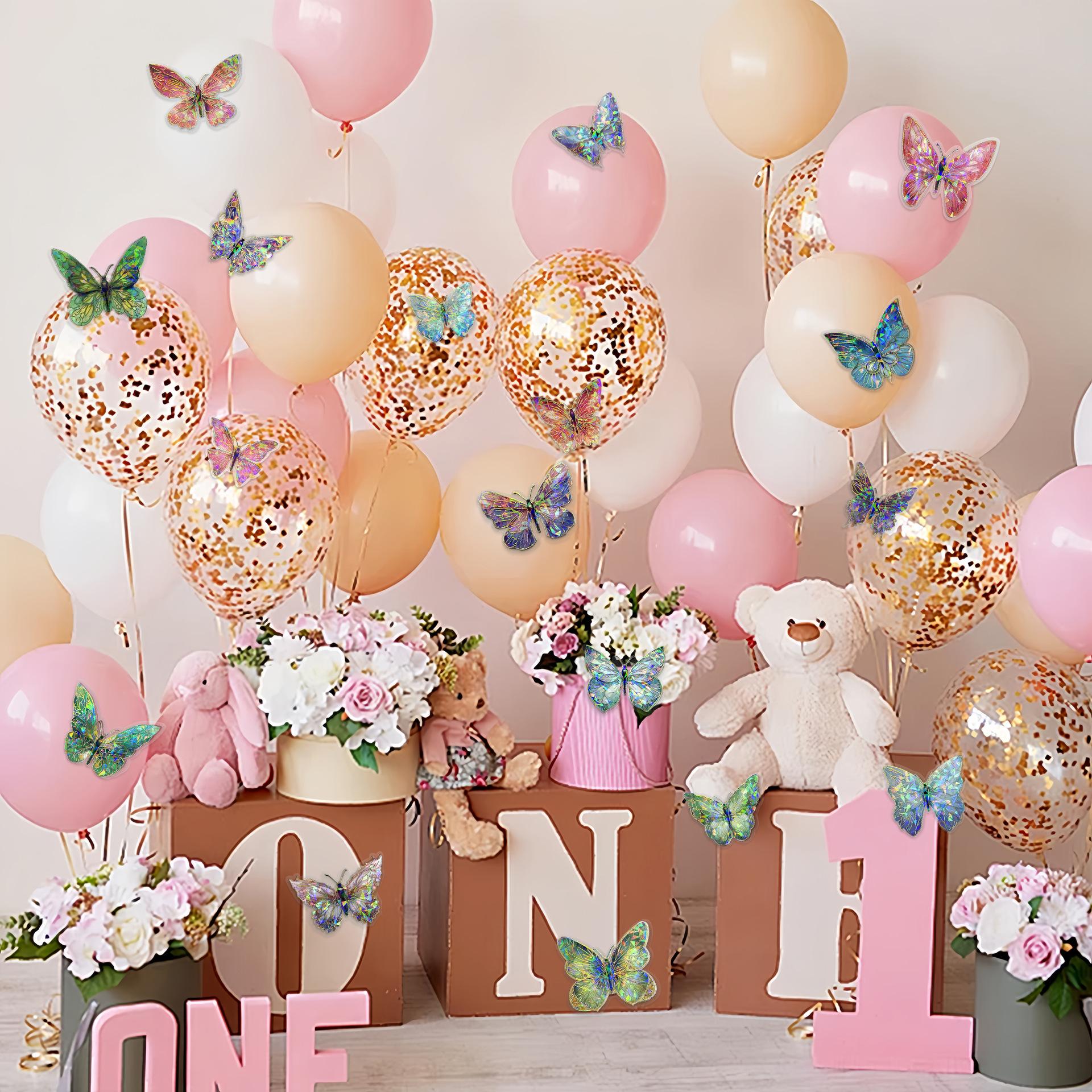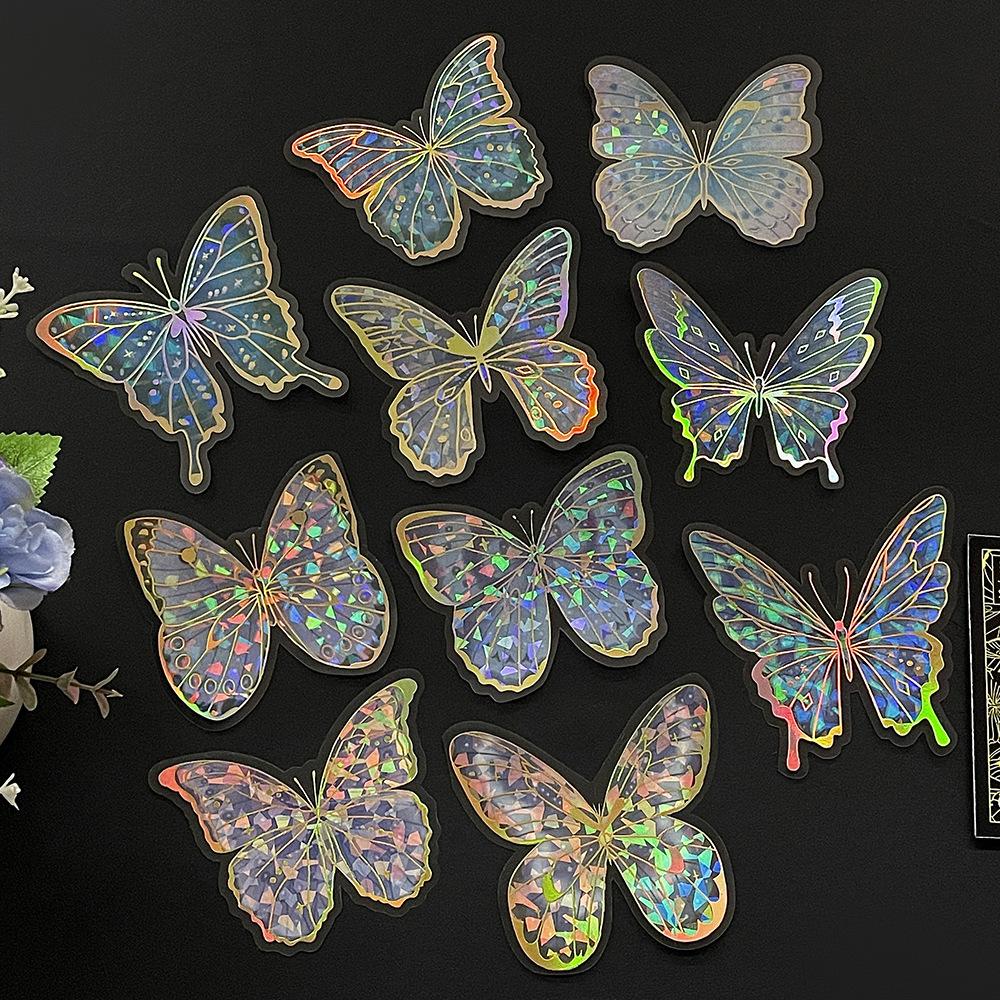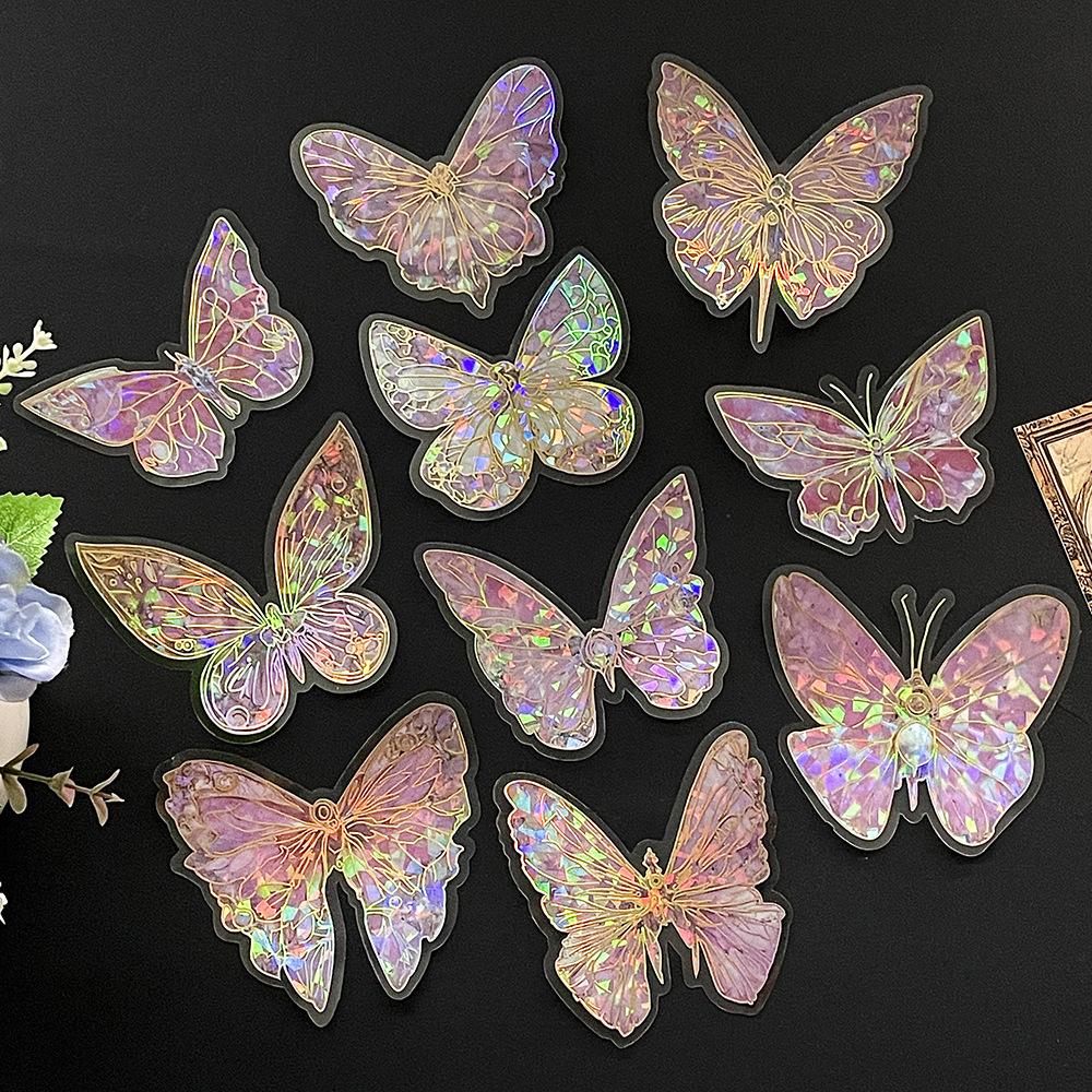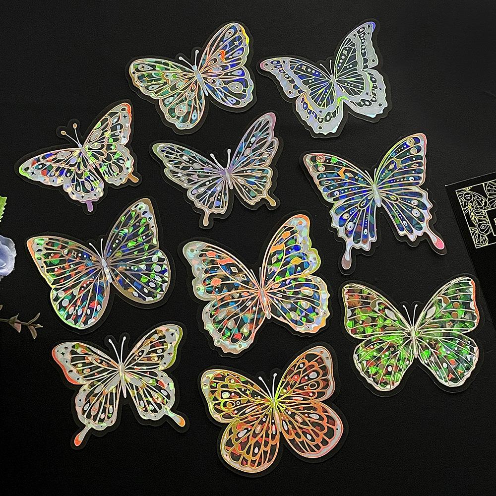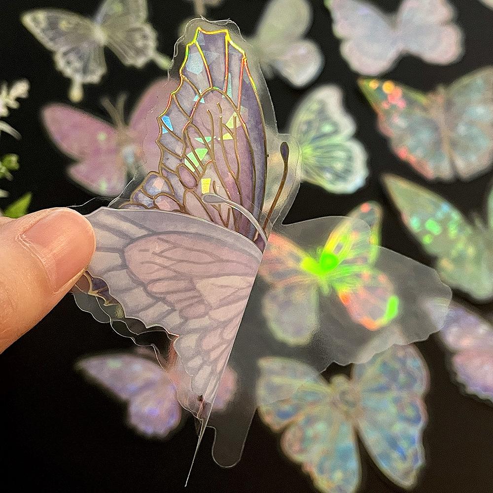 Pegatinas de pared de PET planas con láser, serie creativa de mariposas doradas y coloridas, tarjeta adhesiva, cuenta de mano, pegatinas de material decorativo DIY