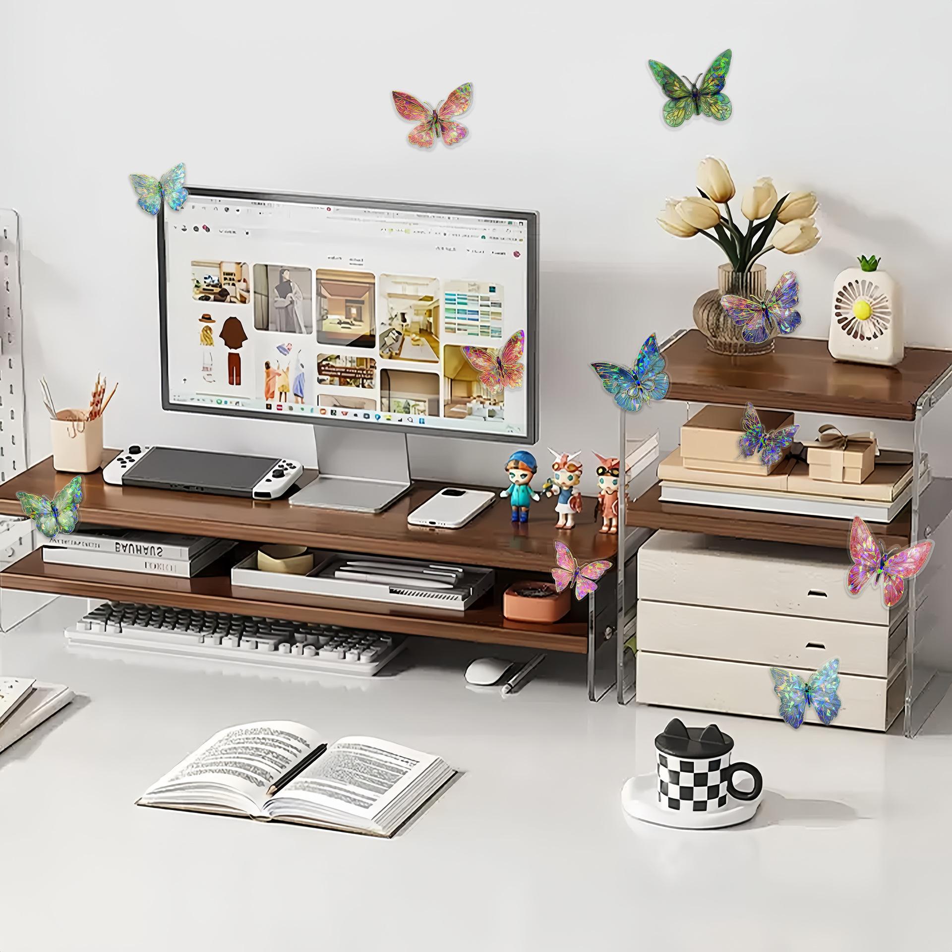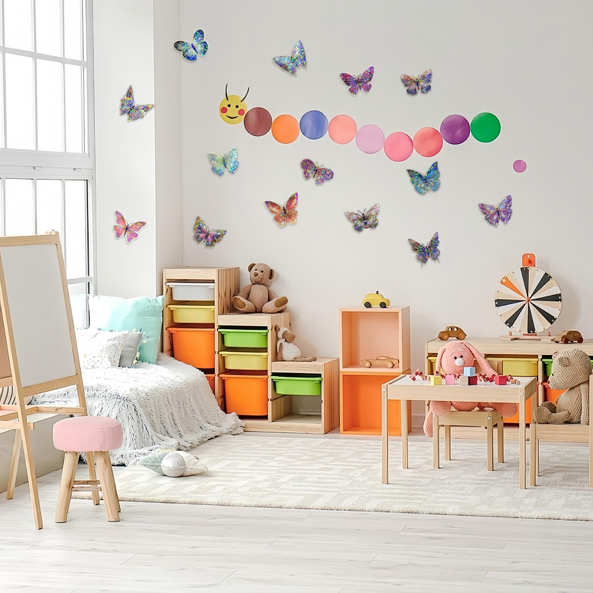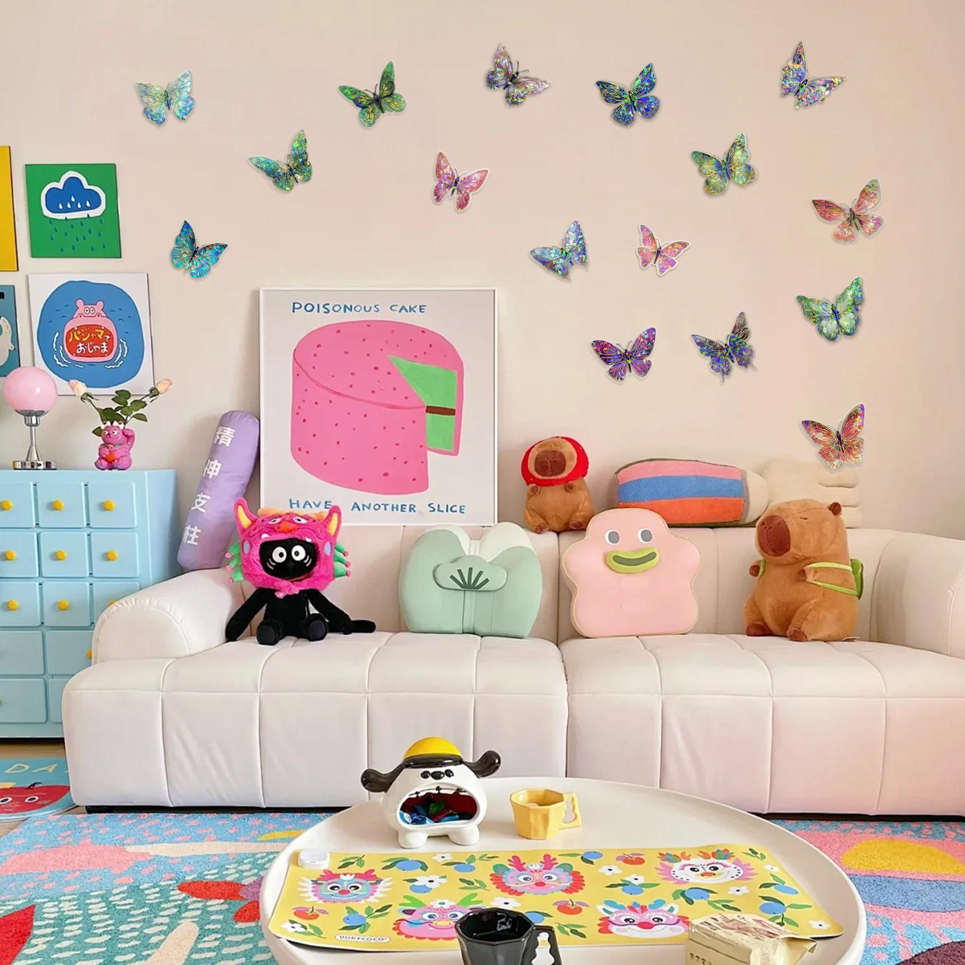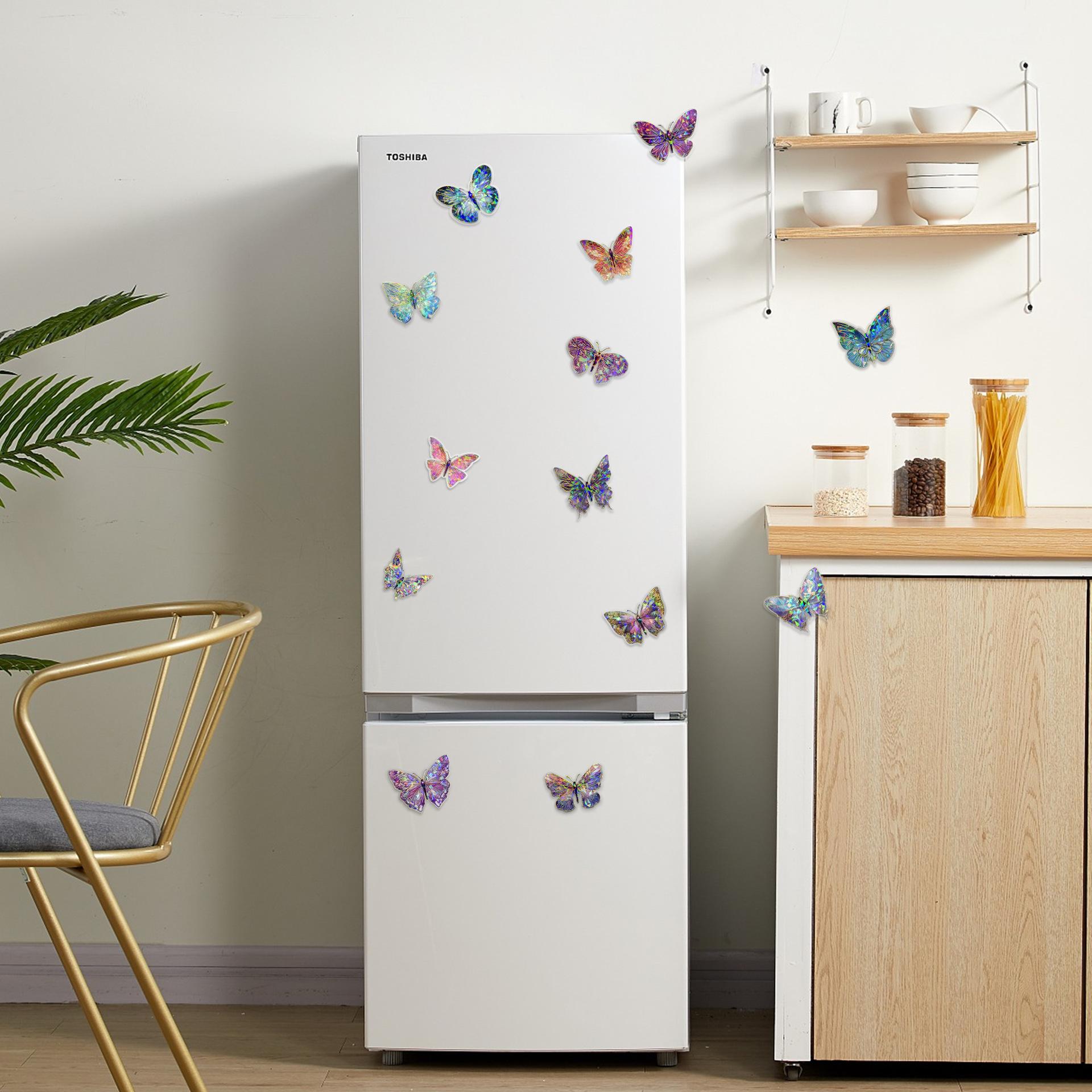 Pegatinas de pared de PET planas con láser, serie creativa de mariposas doradas y coloridas, tarjeta adhesiva, cuenta de mano, pegatinas de material decorativo DIY