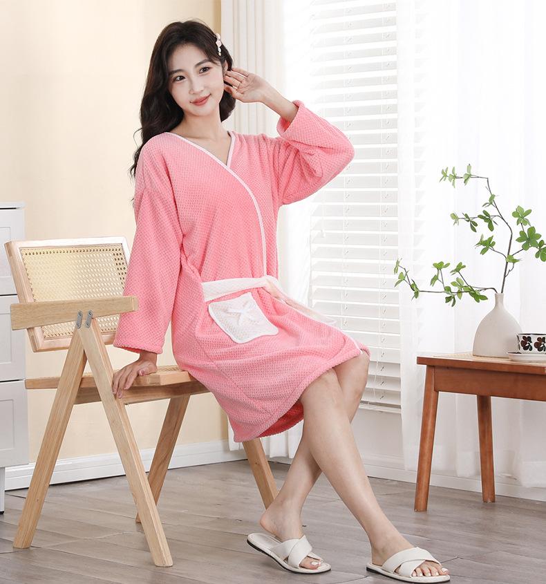 Long-sleeved strappy bath skirt [thickened and enlarged] cherry blossom pink, Long-sleeved strappy bath skirt ...