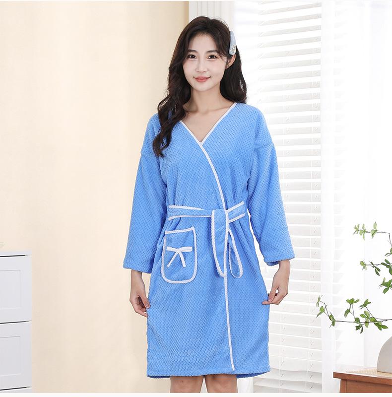 Long-sleeved strappy bath skirt [thickened and enlarged] sky blue