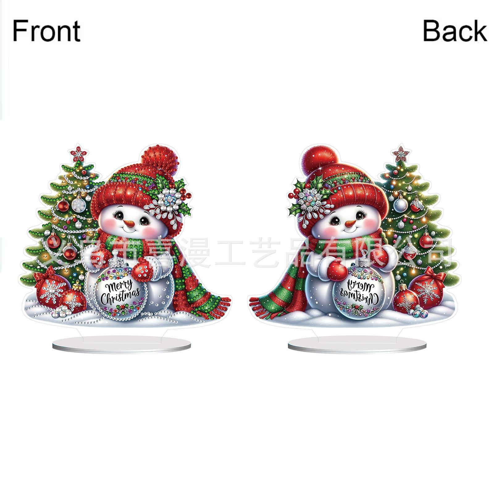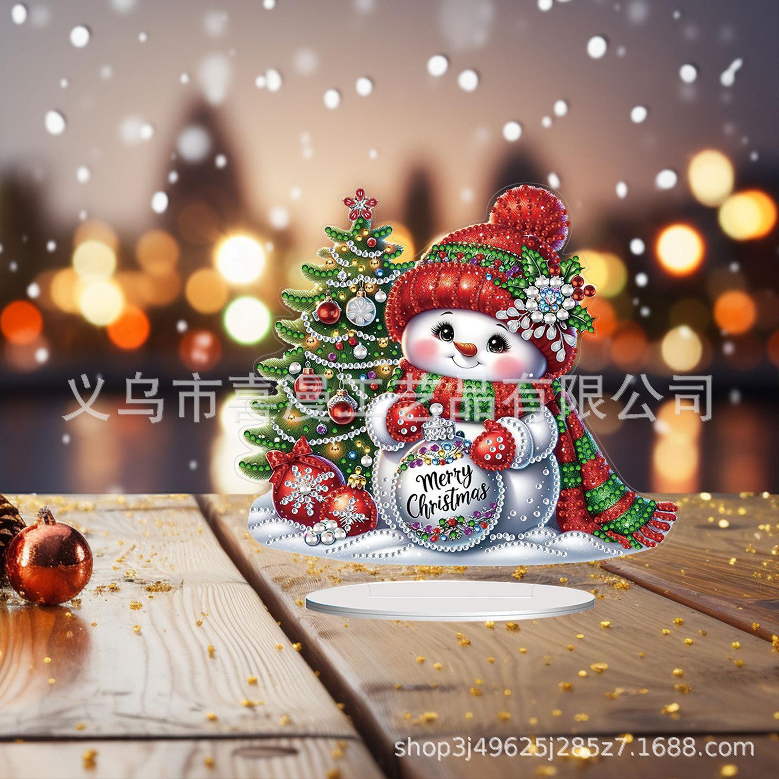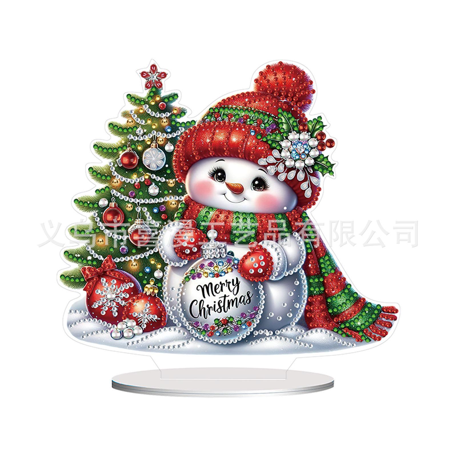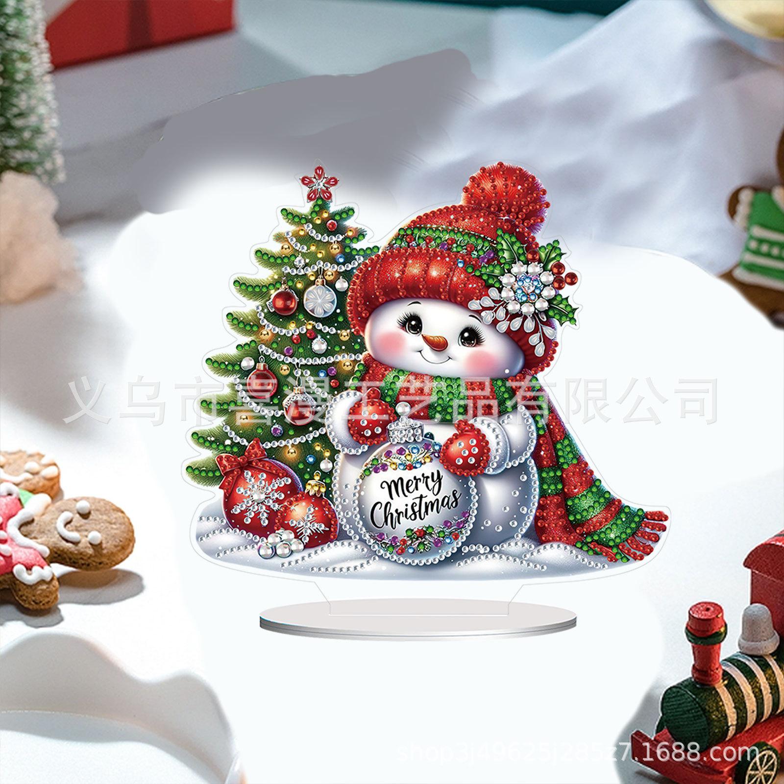 Pintura de diamante 5D creativa con forma de muñeco de nieve y árbol de Navidad, hecha a mano, adornos acrílicos para el hogar, con borde cruzado